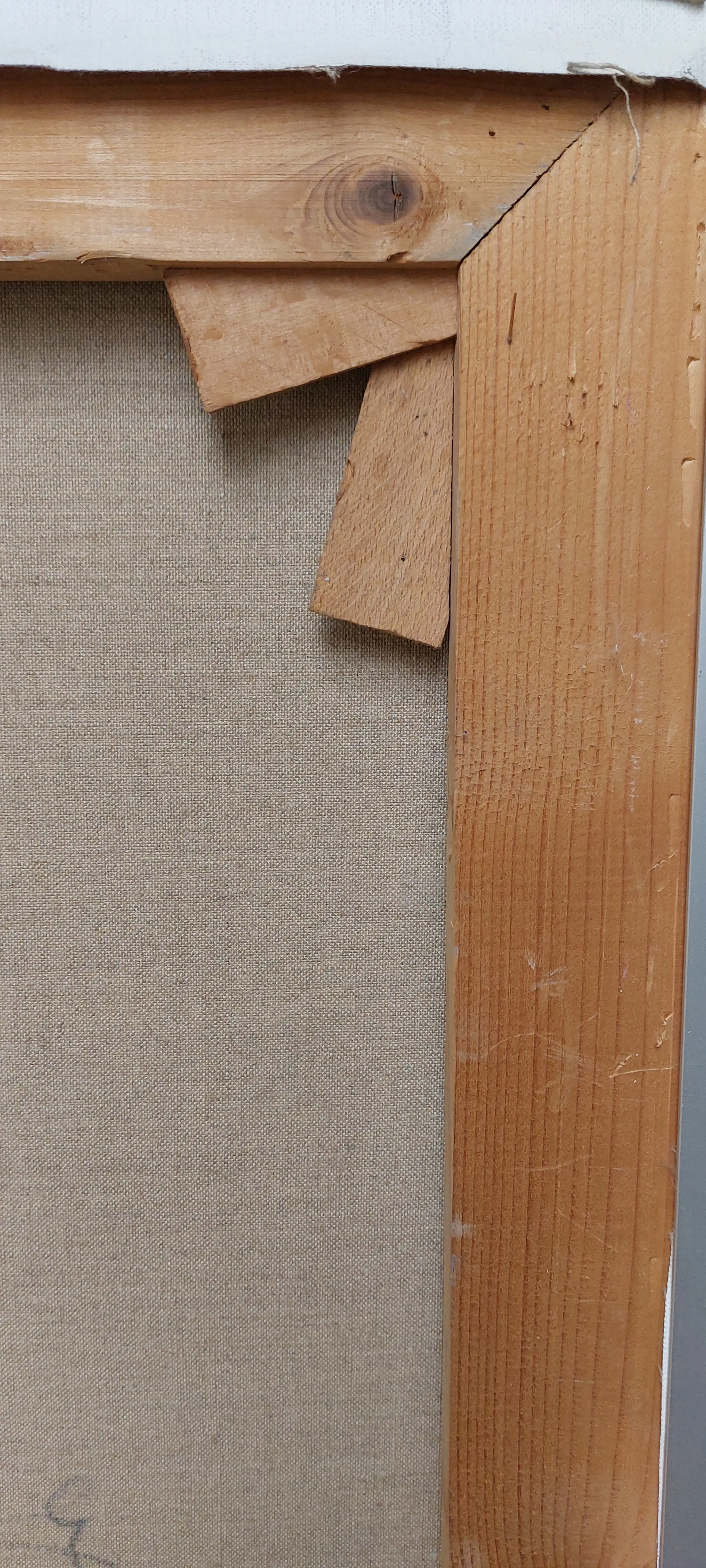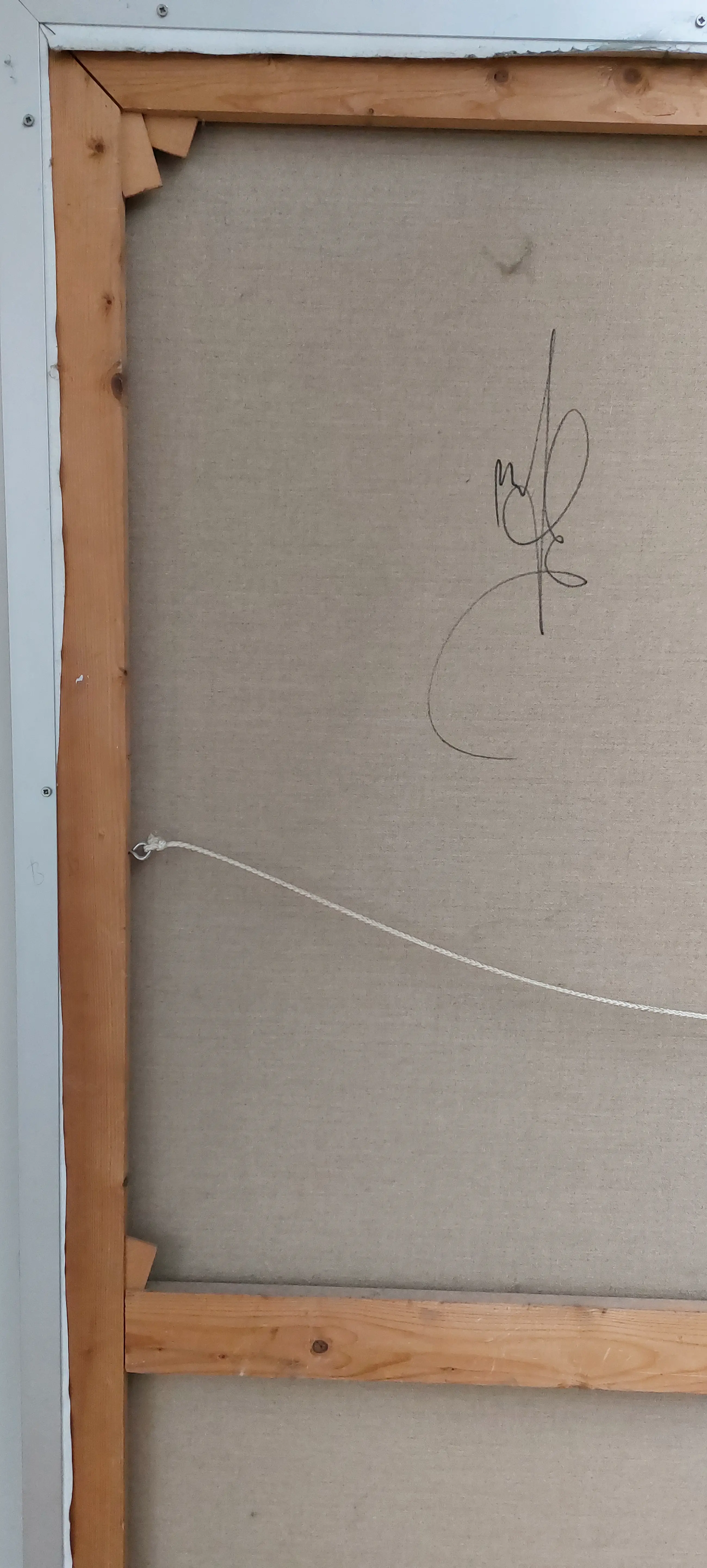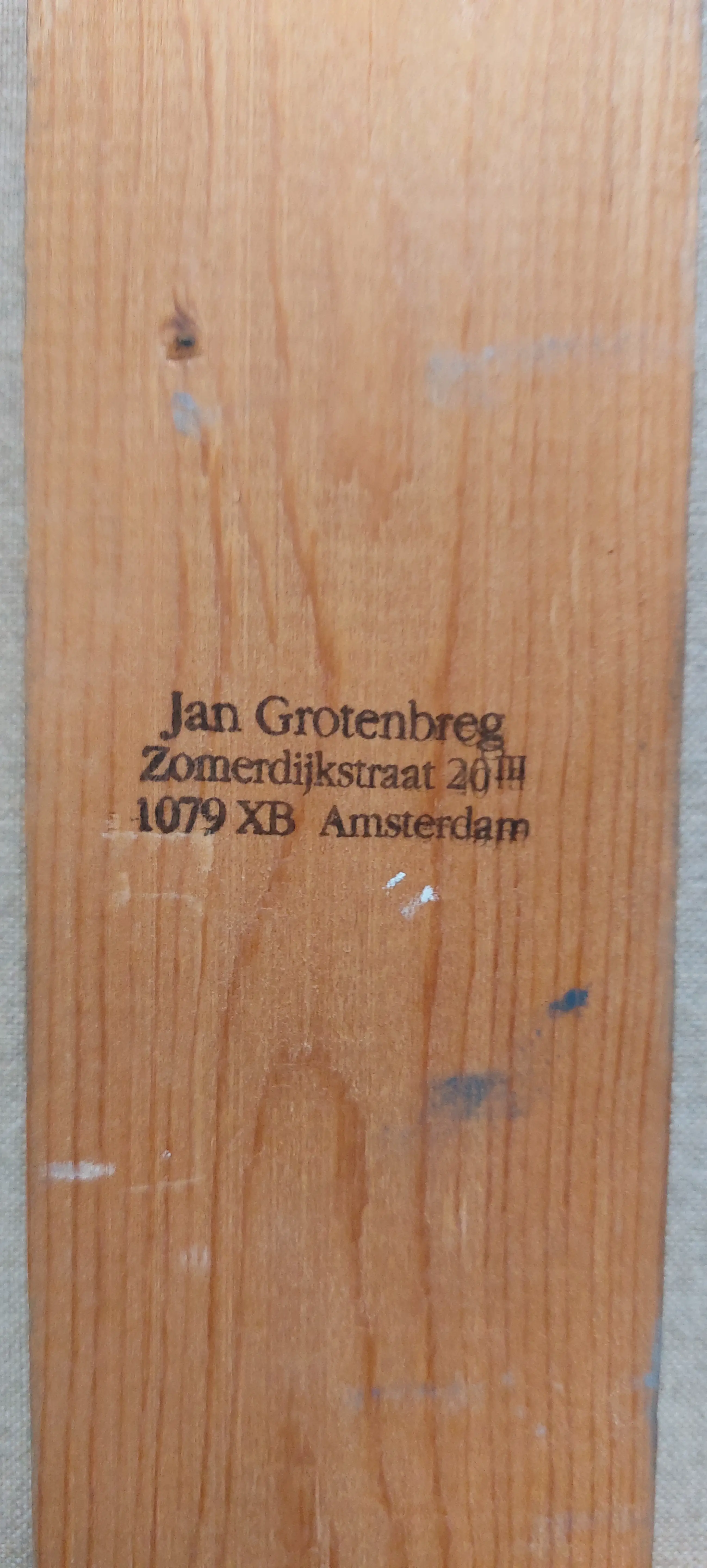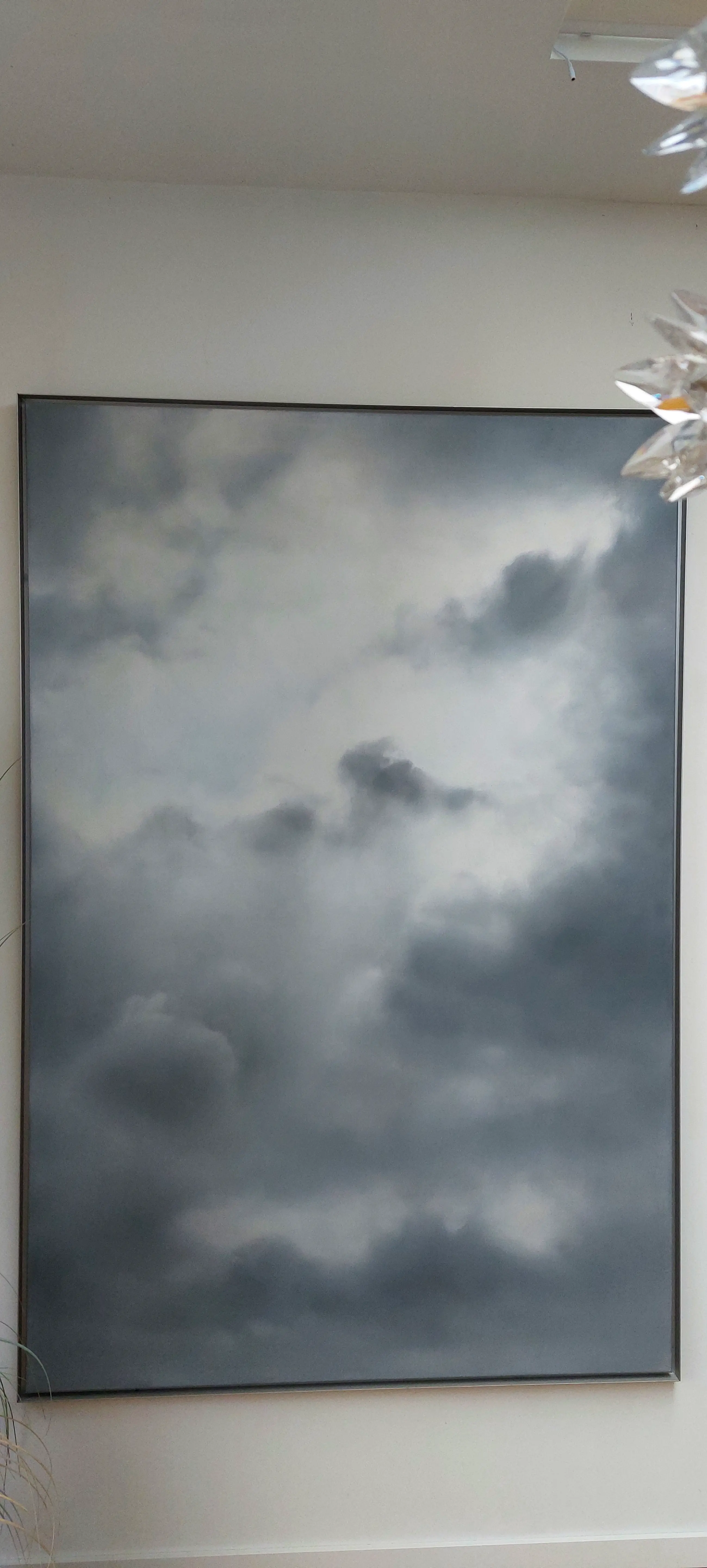 Onder de indruk van het werk van Jan Grotenbreg kocht ik in of rond 2005 deze krachtige Wolkenlucht rechtstreeks van hem tijdens een bezoek aan zijn atelier aan de Zomerdijkstraat in Amsterdam. Sinds die tijd neemt het een prominente plek in in de woonkamer. In mijn volgende woning die wat minder ruimte biedt kan ik het werk (182x123) helaas niet meer plaatsen.