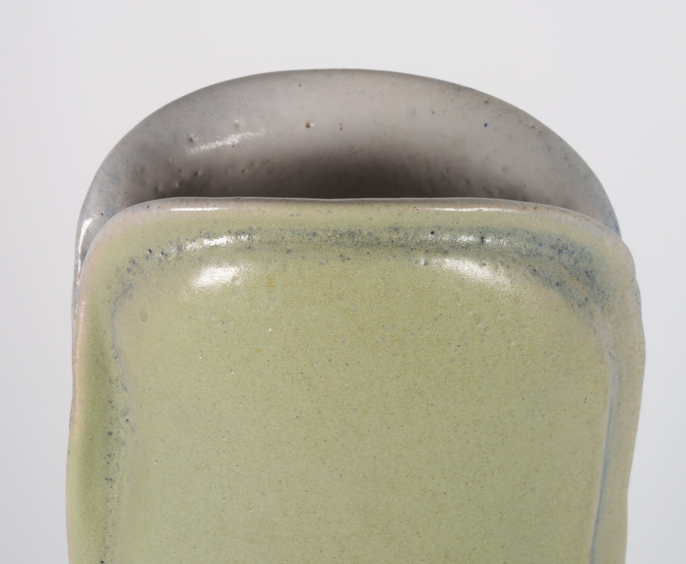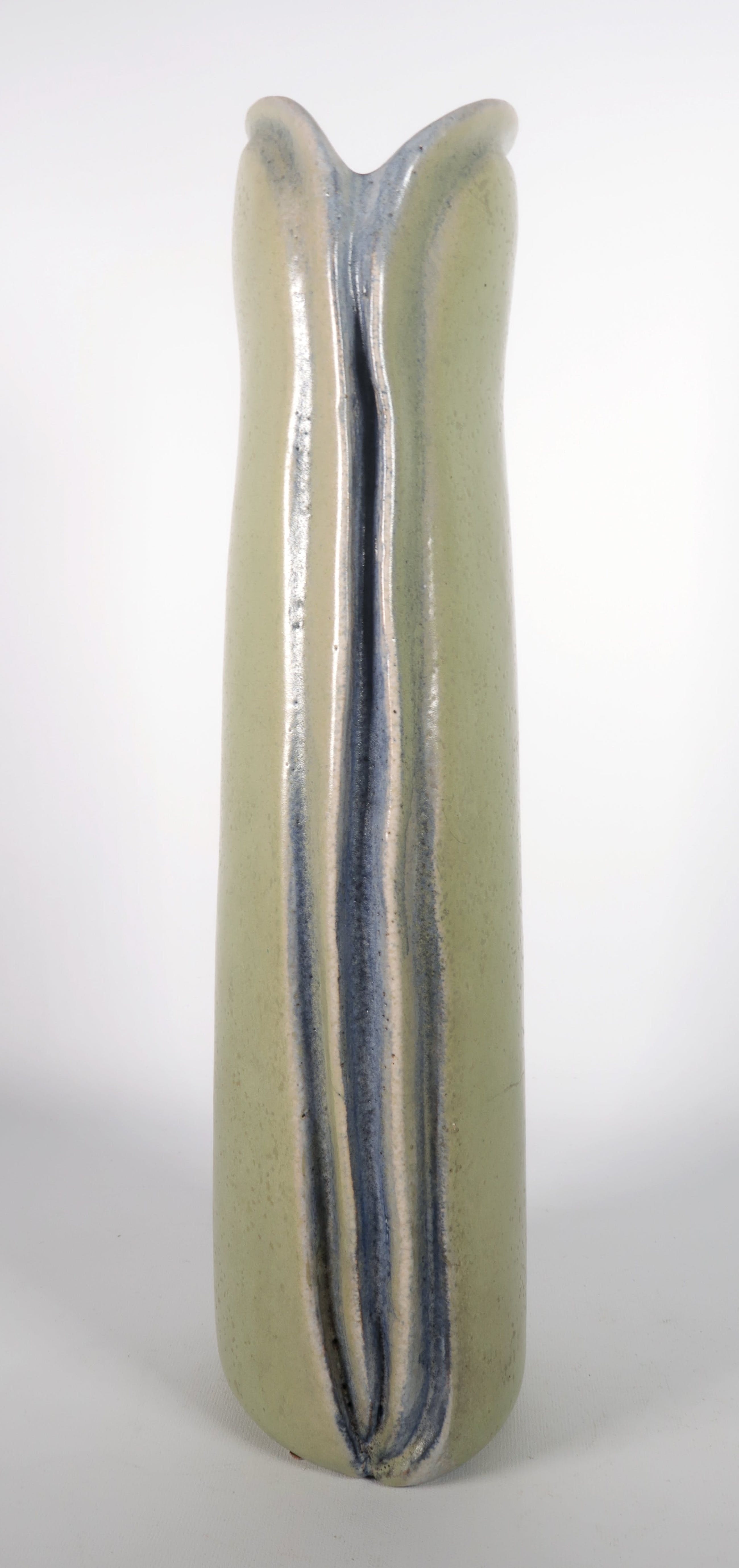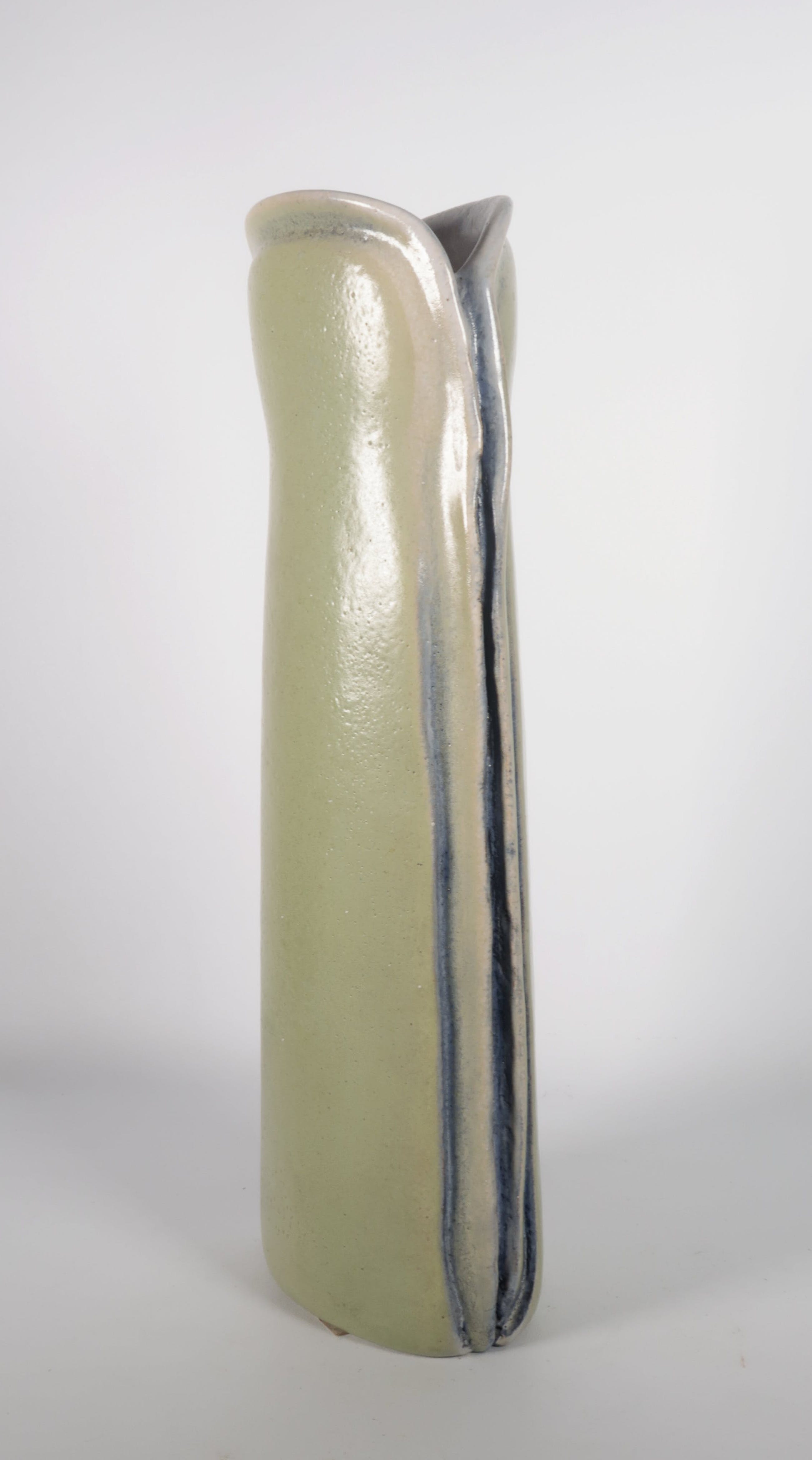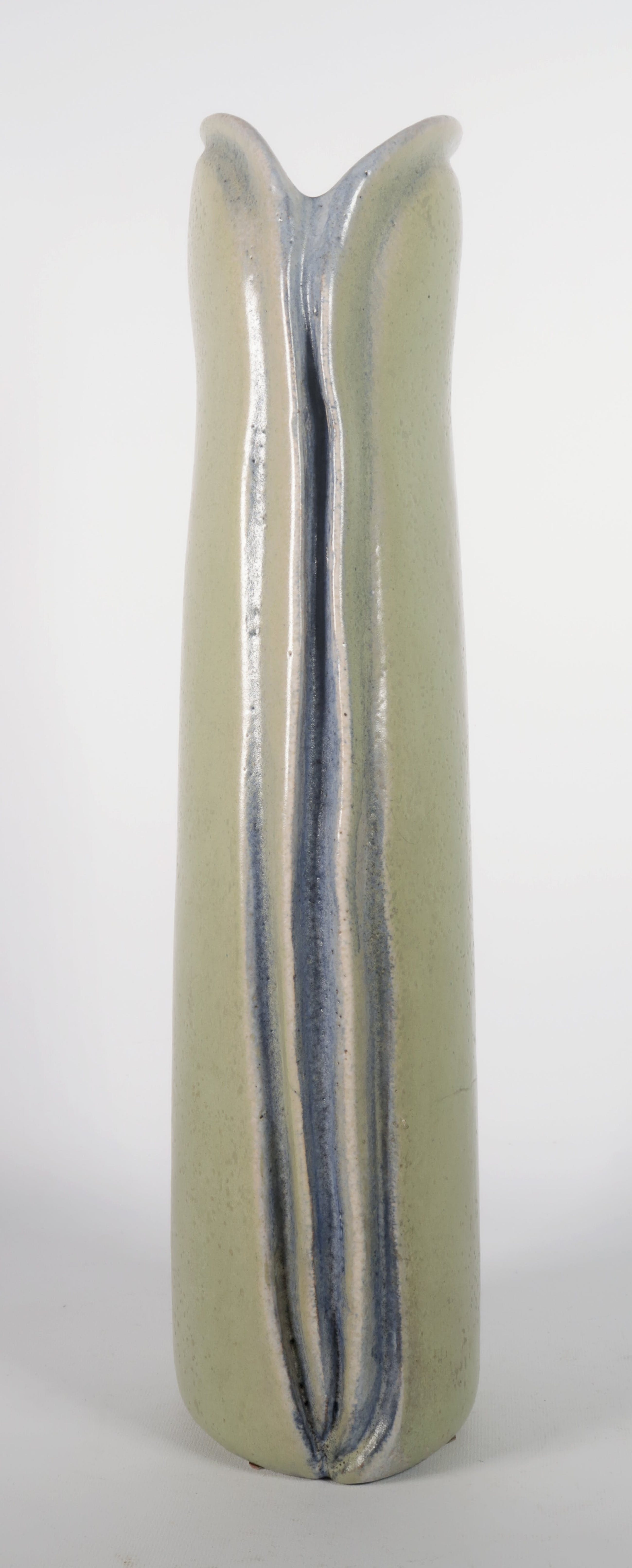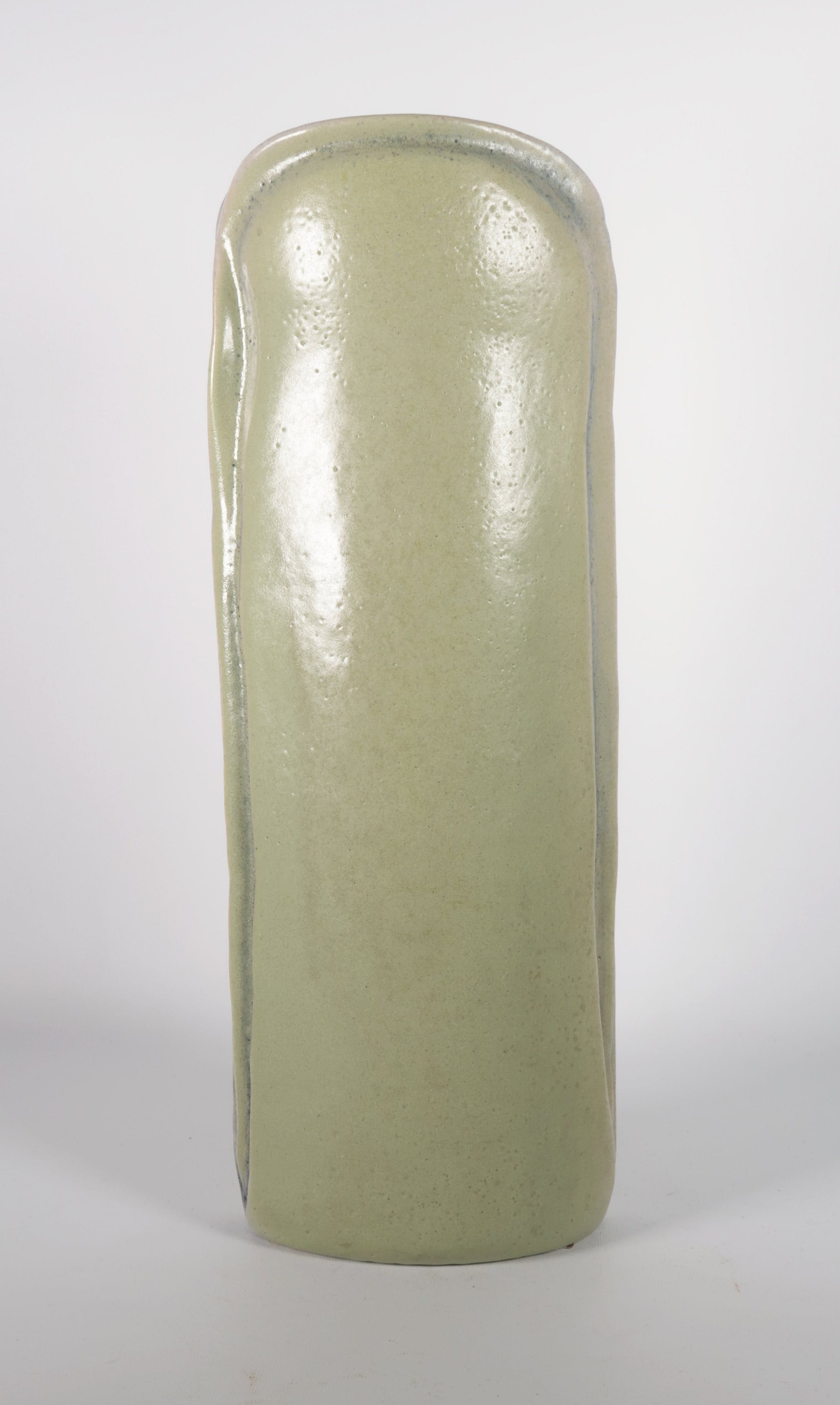 Groen geglazuurde vaas van keramist Jan Haans. Het werk is aan de onderzijde gesigneerd (initialen).