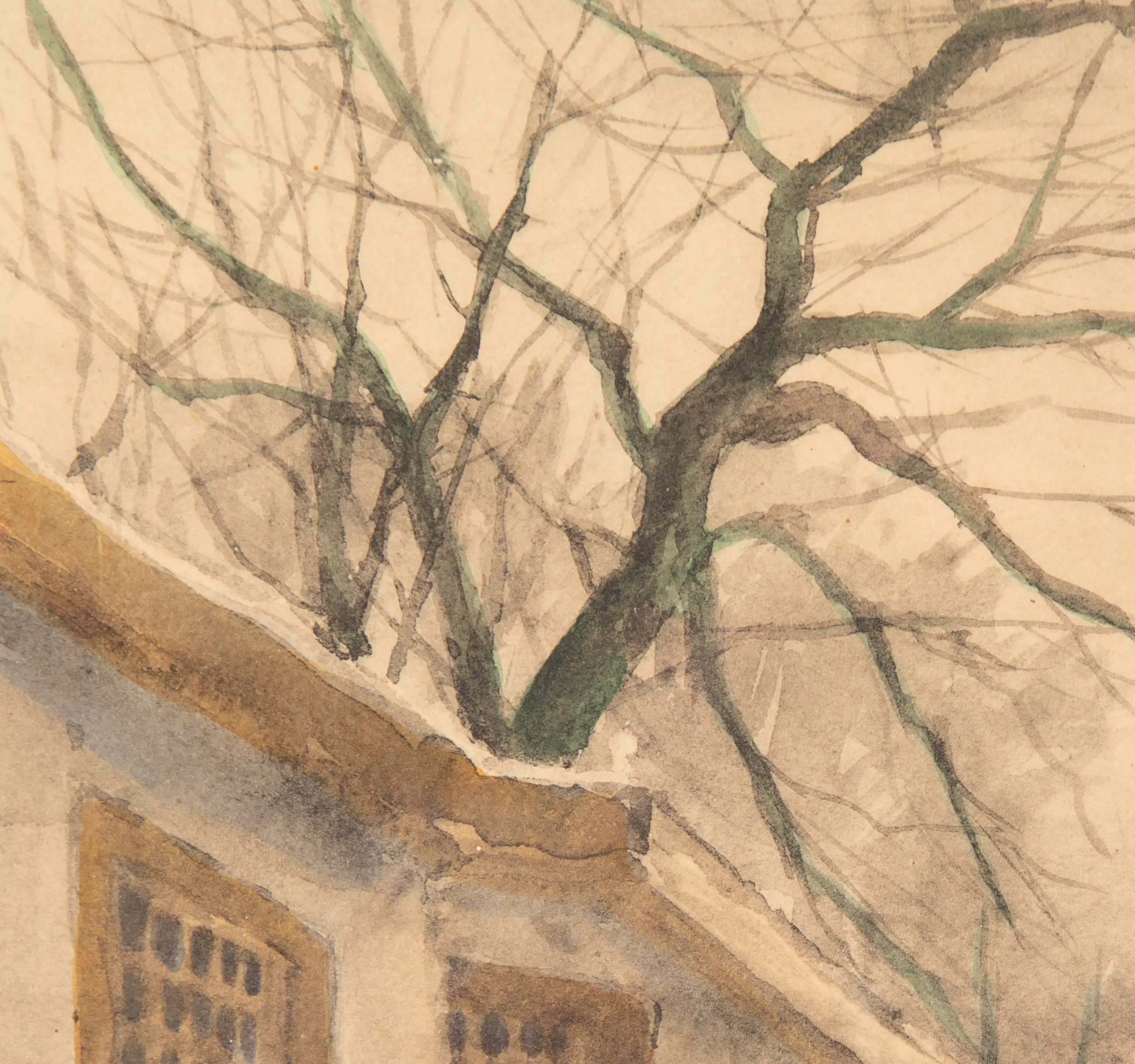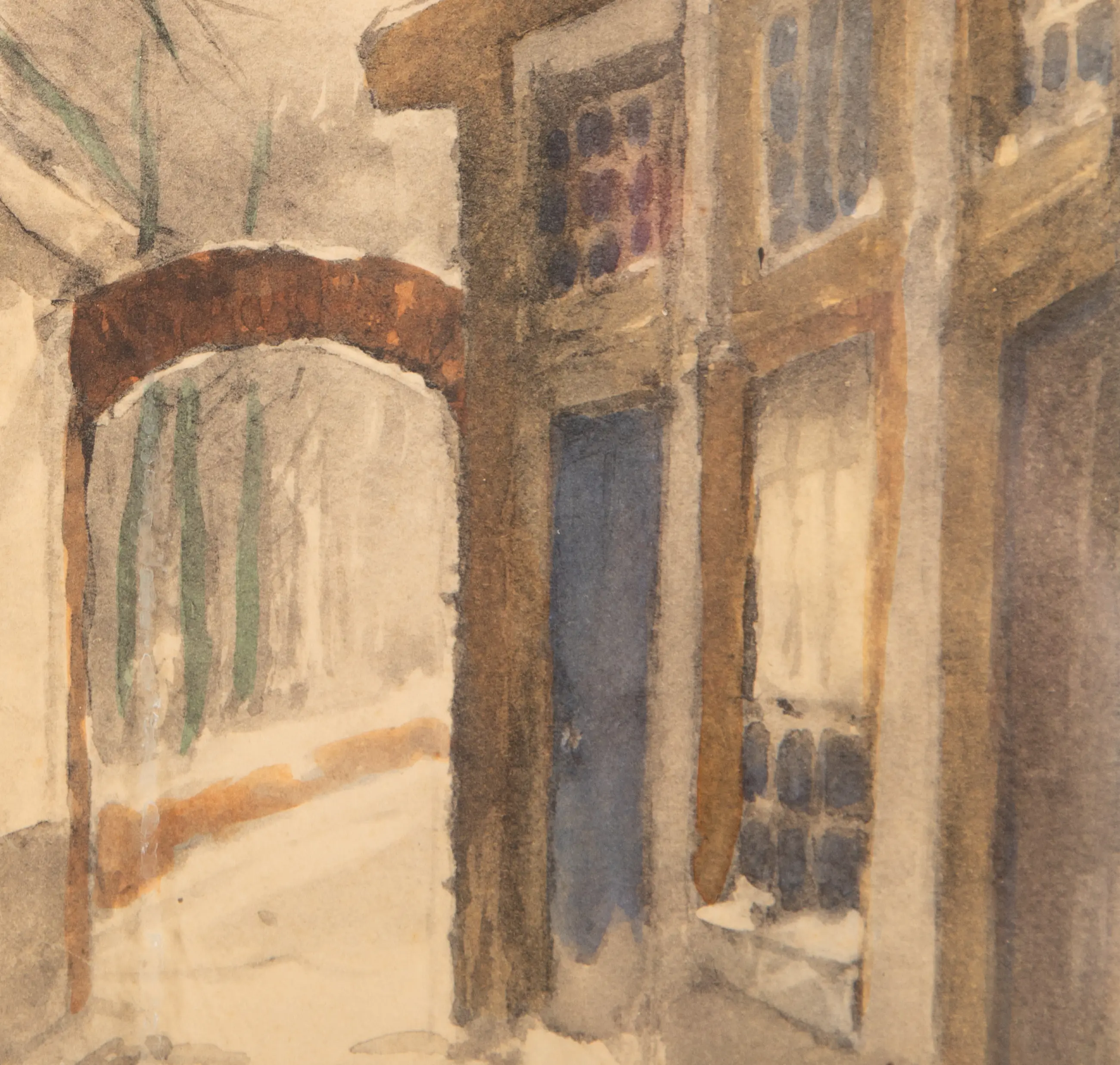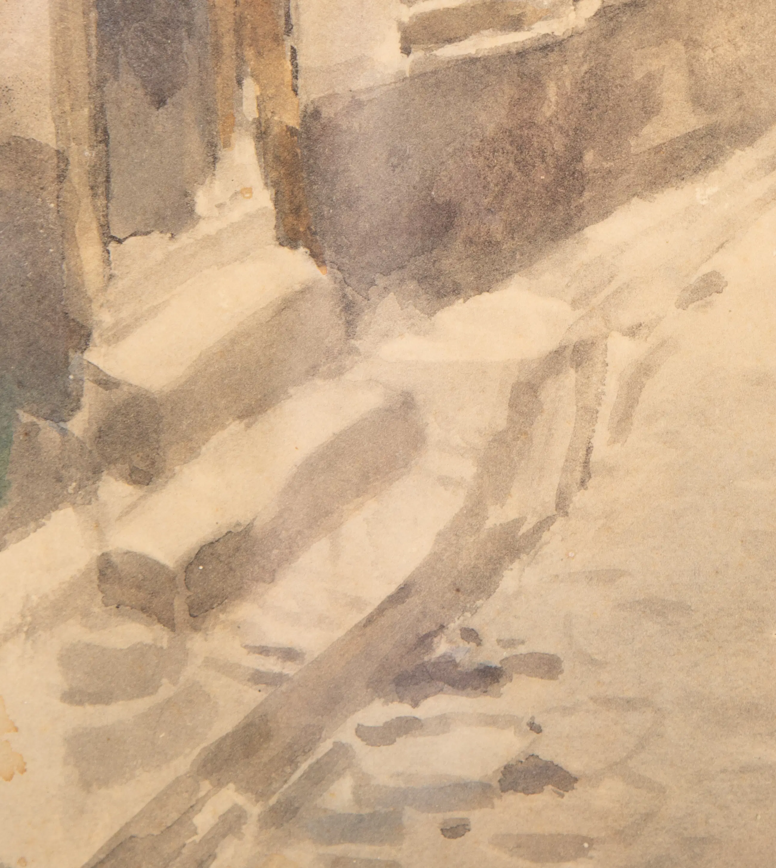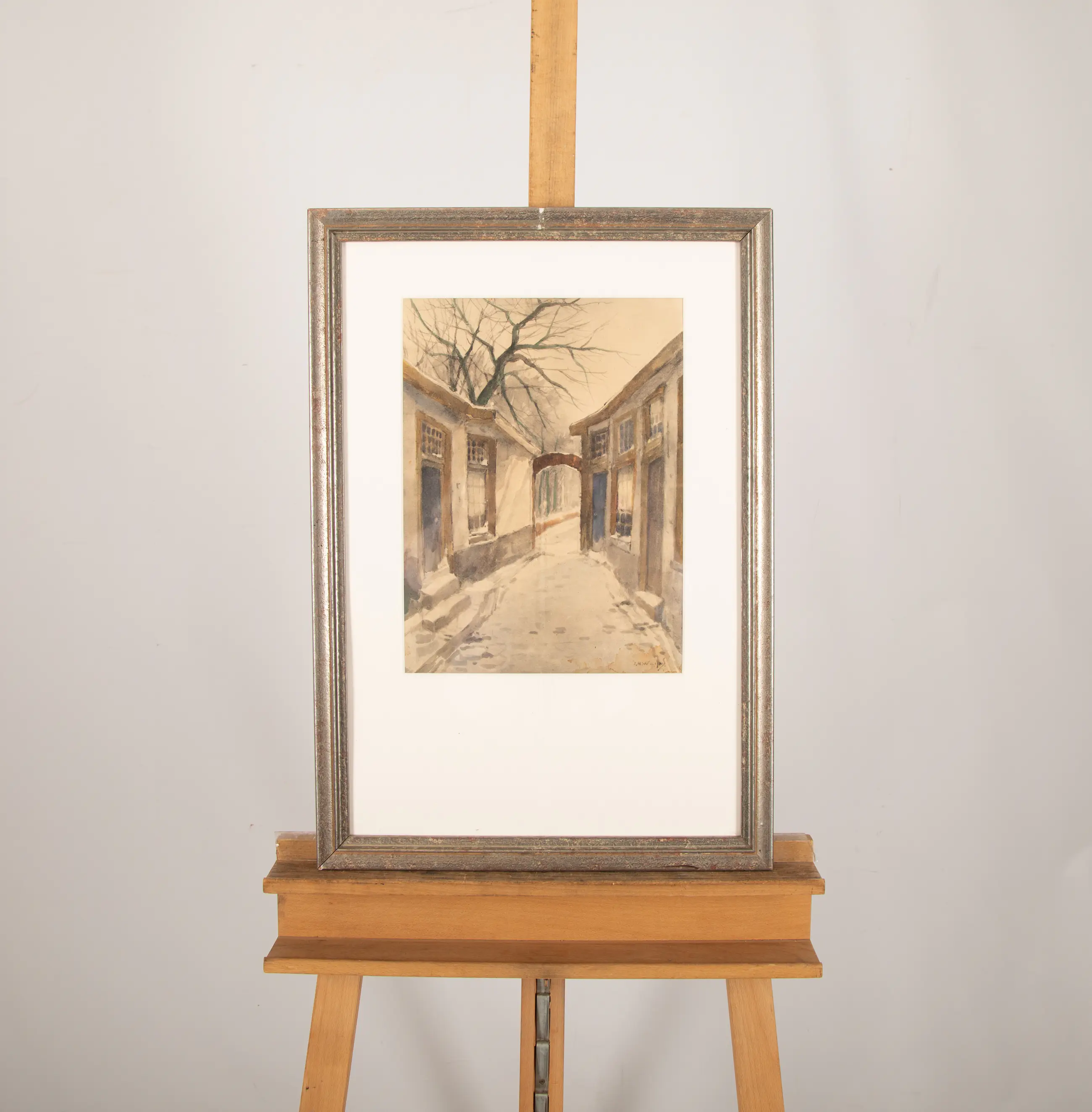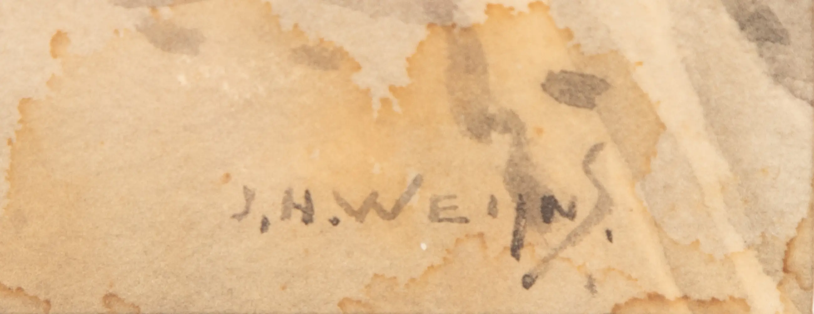 Deze aquarel van Jan Harm Weijns (1864-1945) is rechtsonder gesigneerd. De lijst heeft een beschadiging aan de bovenkant.