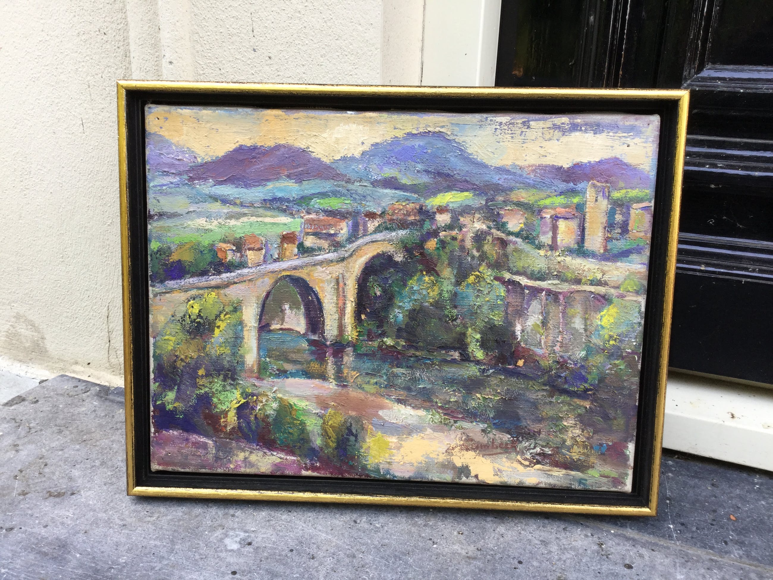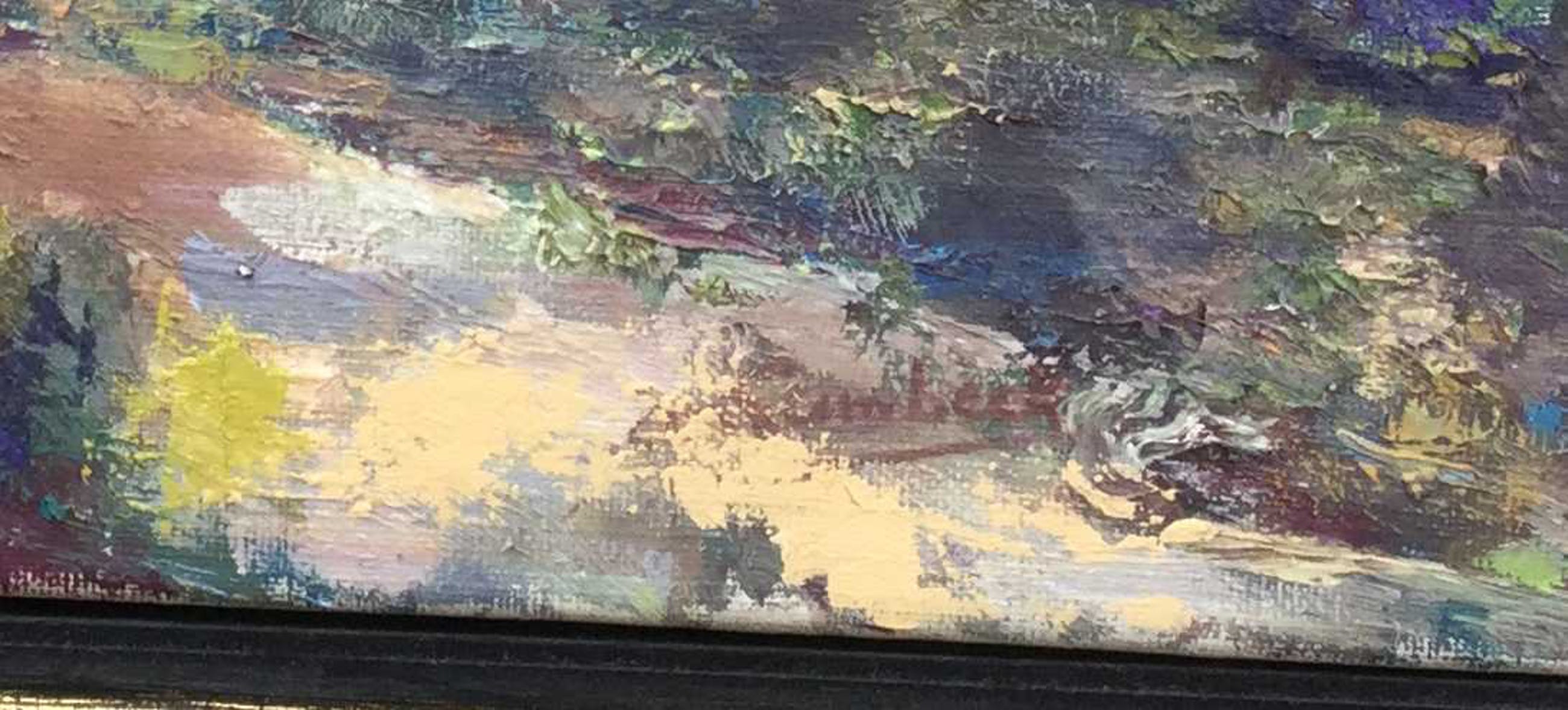| Doek bevat oppervlakevuil en verkleurde vernis door de tijd, punaisegaatjes in de hoeken omdat het doek later door de kunstenaar is opgespannen. Netjes gelijst, de lijst bevat licht oppervlaktevuil door de tijd. | |