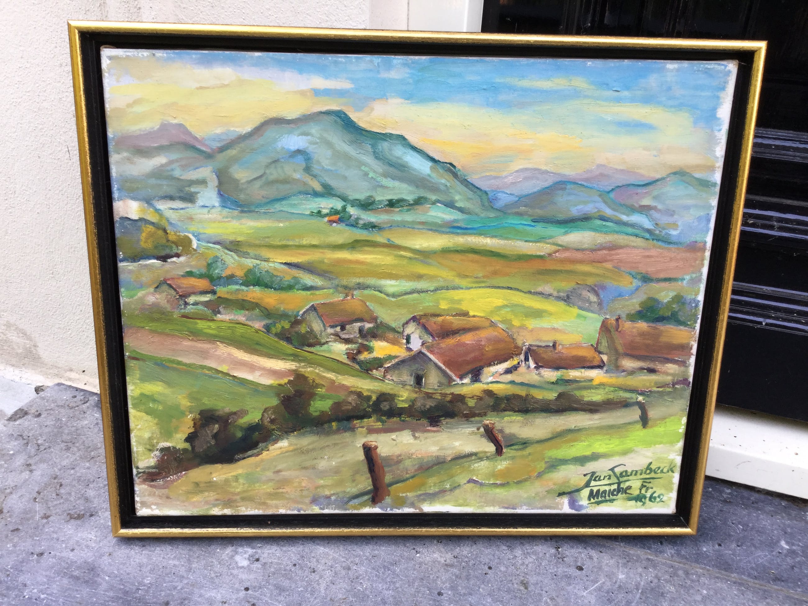 Doek bevat oppervlaktevuil en verkleurde vernis door de tijd. Netjes gelijst, de lijst bevat licht oppervlaktevuil door de tijd. | |