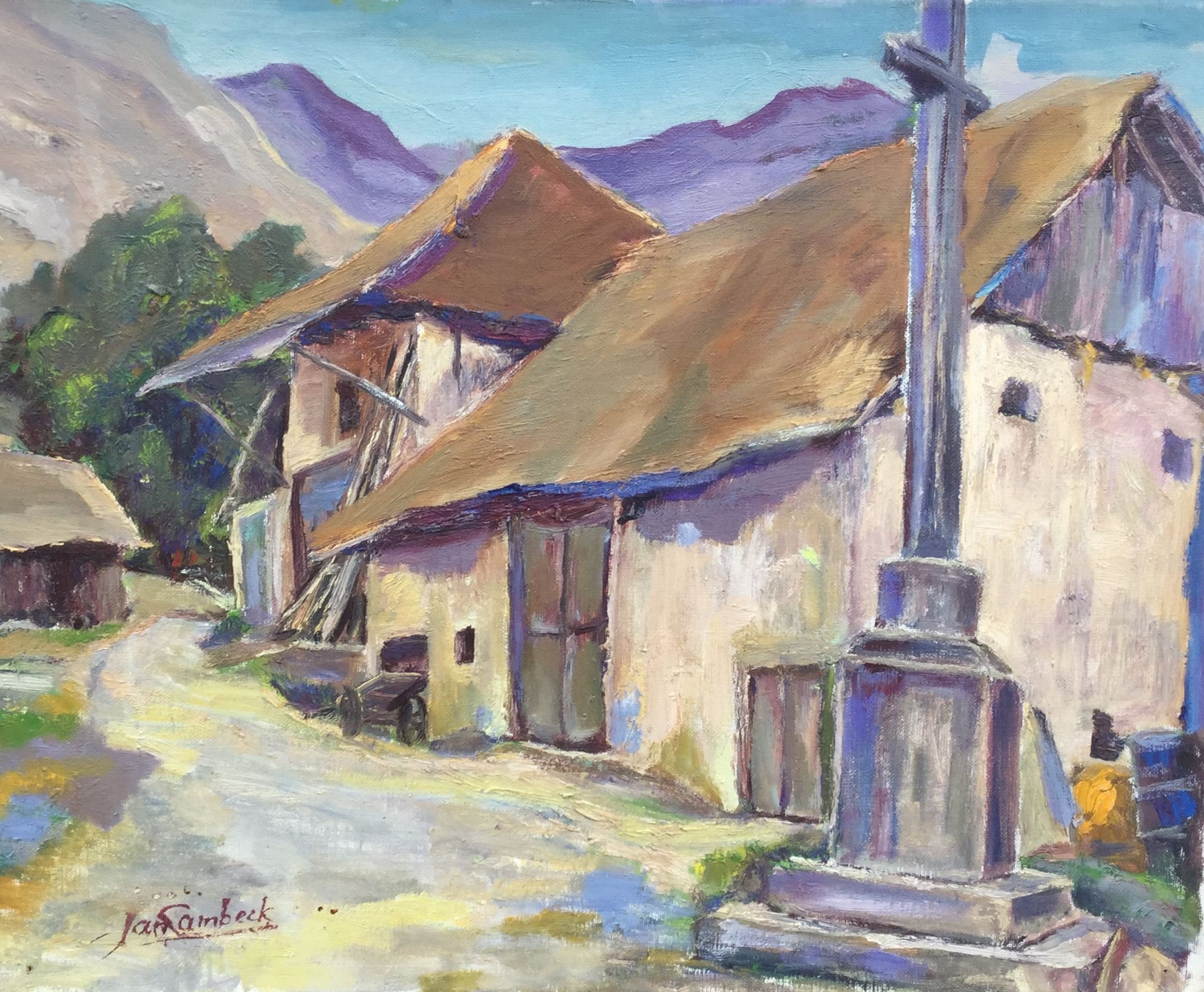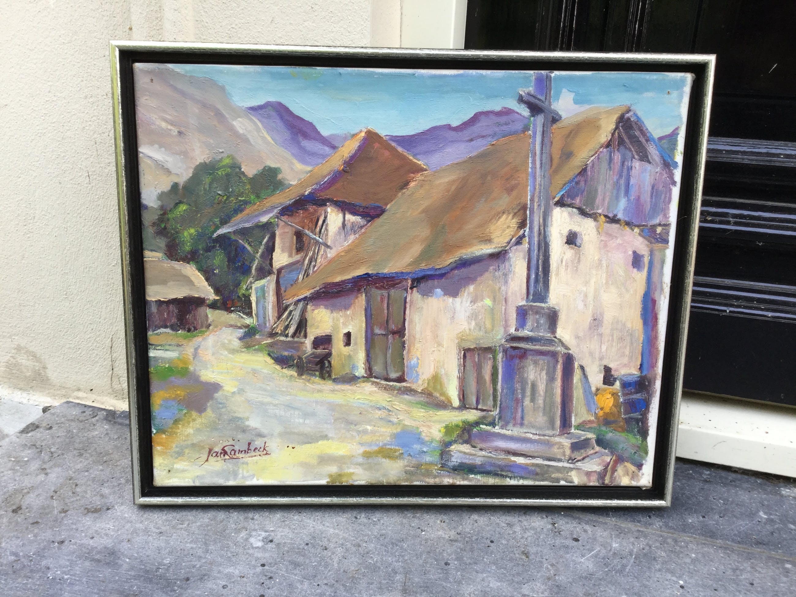 | Doek bevat oppervlaktevuil en verkleurde vernis door de tijd, punaisegaatjes in de hoeken. Netjes gelijst, de lijst bevat licht oppervlaktevuil door de tijd. | |