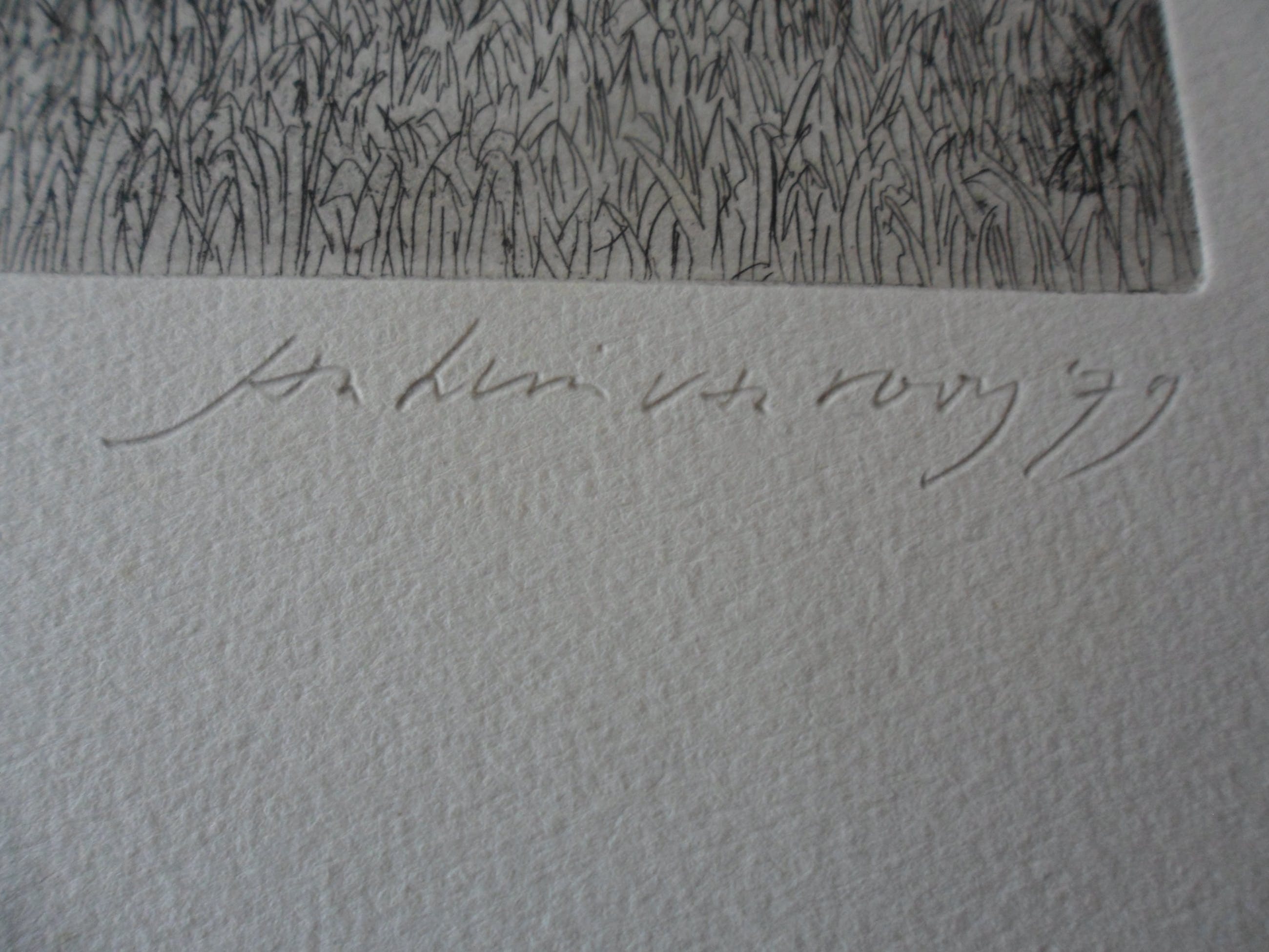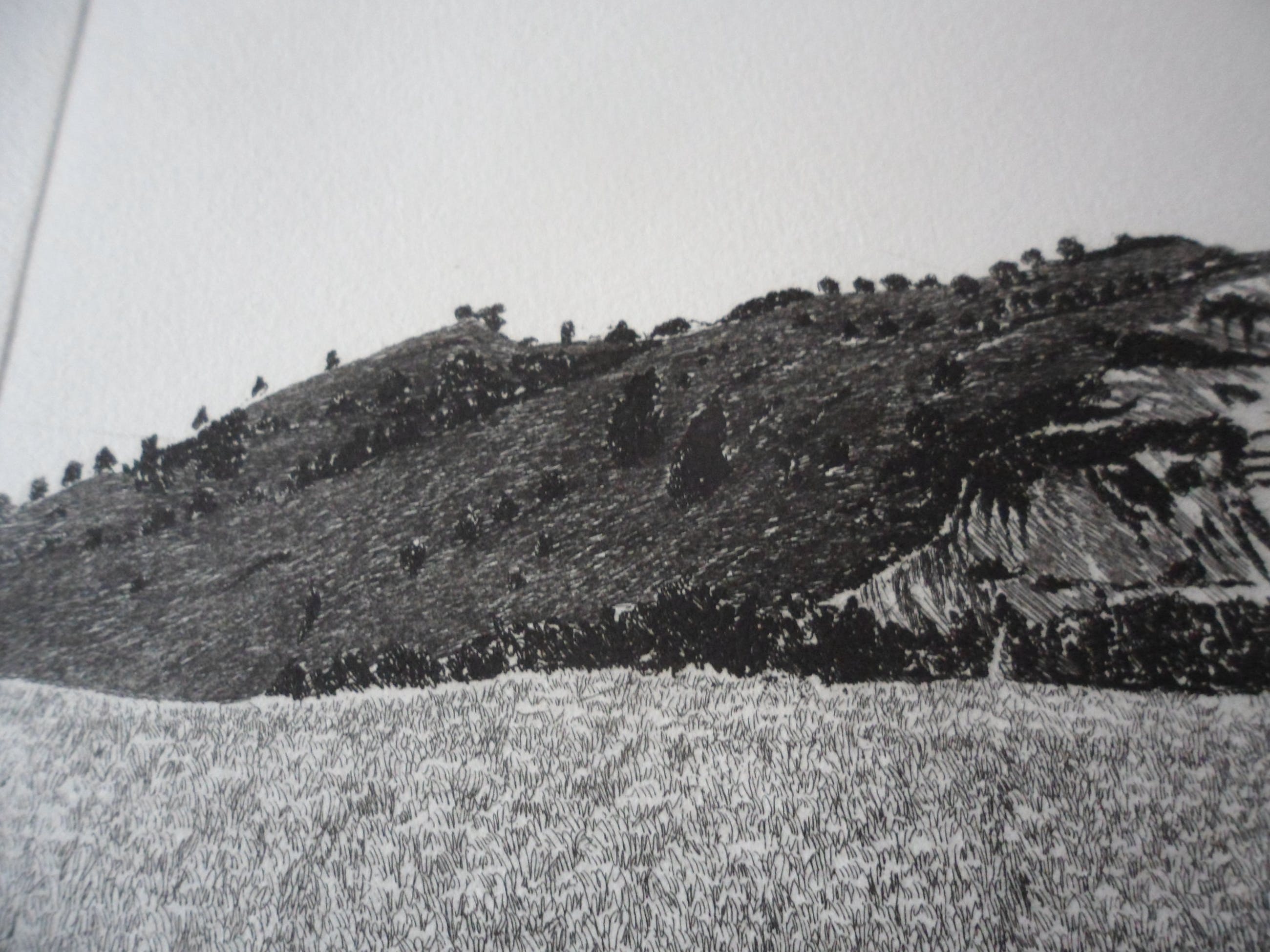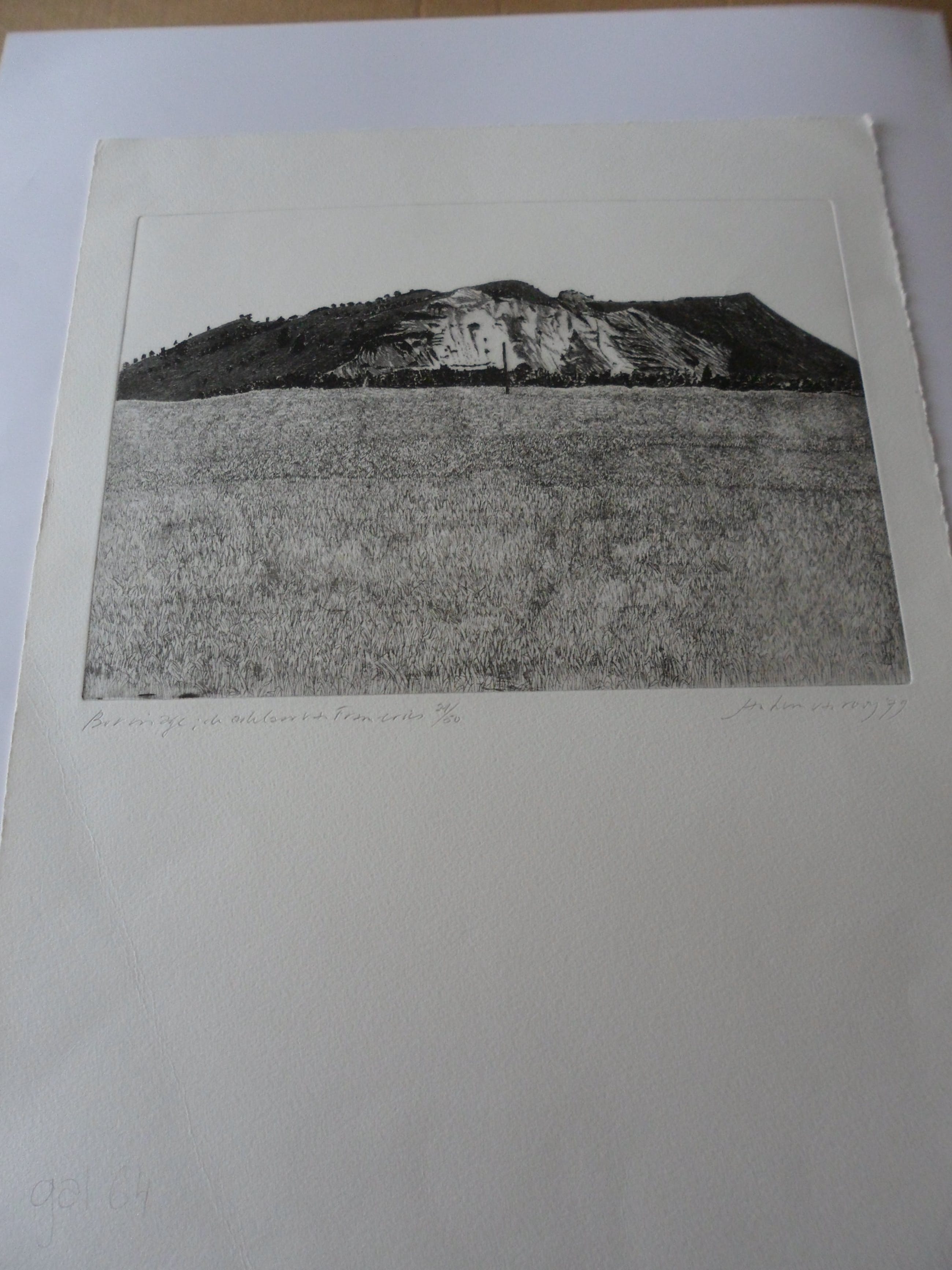 Jan Hein van Rooy (1940). Steendrukken en etsen van lokale en verre landschappen, ter plekke of later vastgelegd, ergens tussen het Land van Maas en Waal, de Borinage en de ruige bergen en hoogvlakten van Spanje. Een zekere verlatenheid en onherbergzaamheid, of onweerstaanbaarheid verbindt deze landschappen.