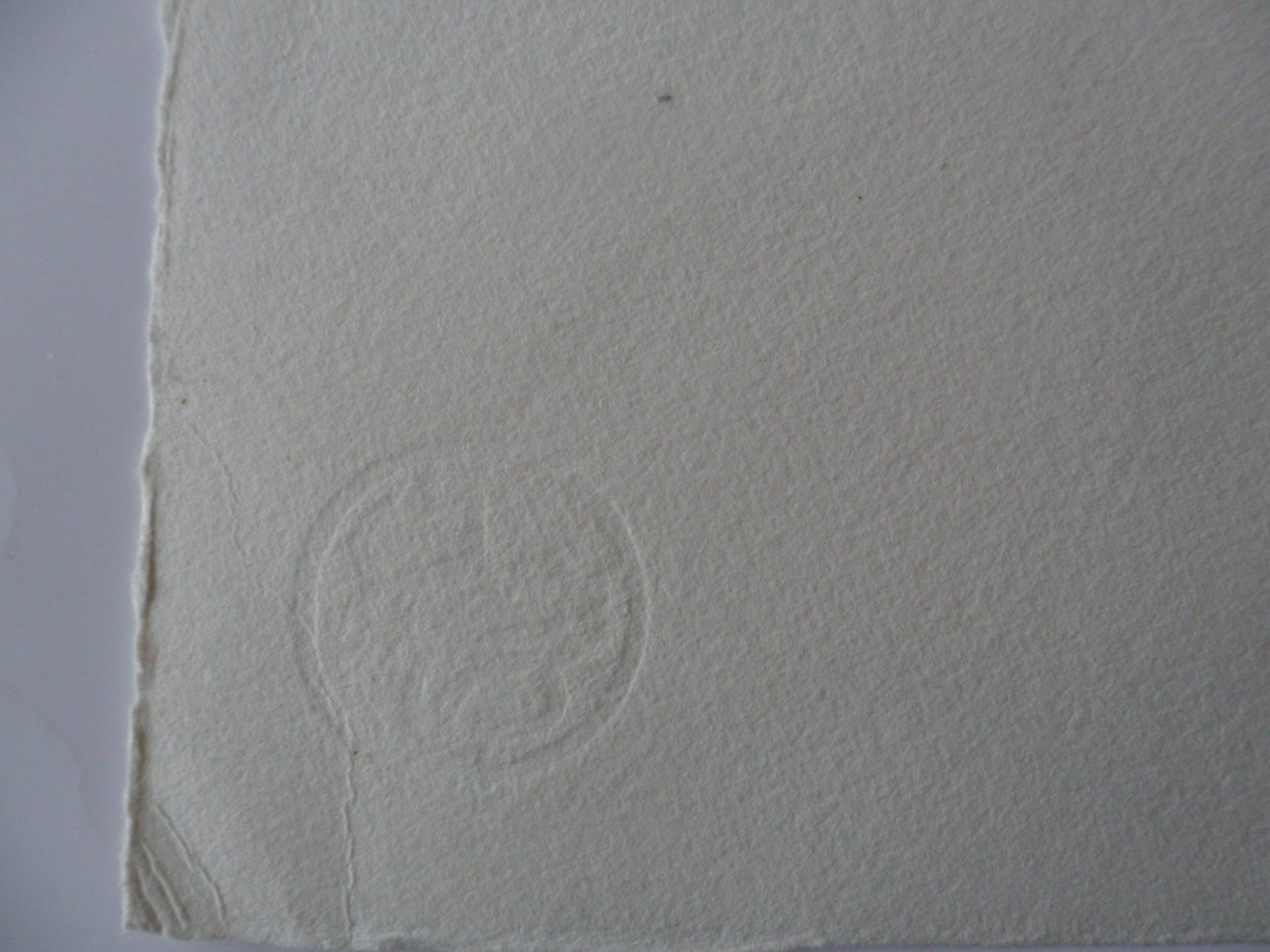 Afgedrukt op een blad van geschept papier in het formaat 53 x 39 cm.