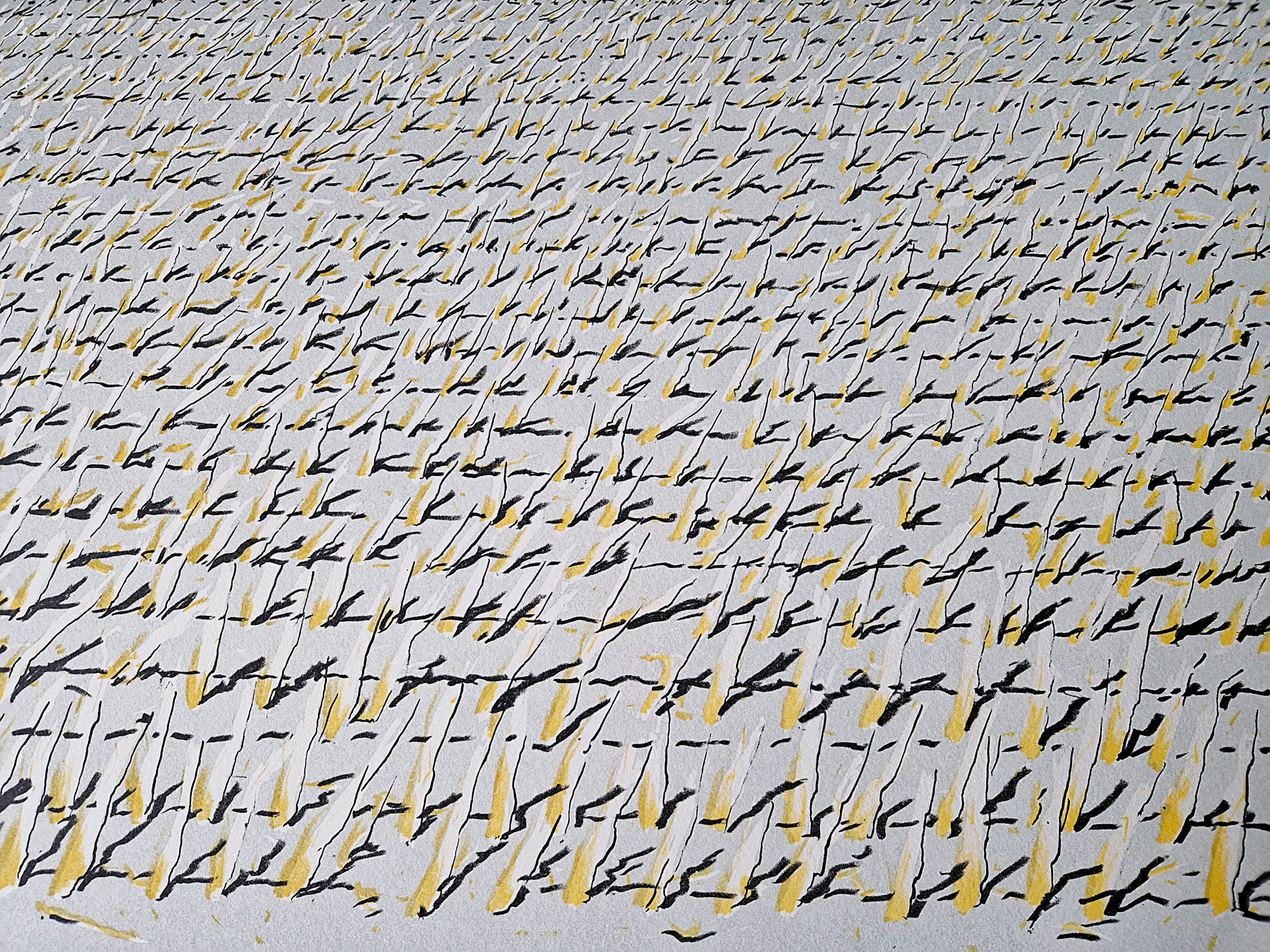 Thuis in Beuningen, aan de Waal, doet Van Rooy hetzelfde. Zijn schilderijen van de uiterwaarden bestaan uit houtskool en caseïneverf met rivierklei. Weer is het echte landschap in het geschilderde verwerkt. Op zijn dagelijkse ‘omweg naar het atelier’ – hij wandelt elke ochtend een uur of anderhalf langs de rivier voordat hij aan het werk gaat – verzamelt Van Rooy bovendien stukjes hout, die de grondvorm worden voor kleine sculptuurtjes.