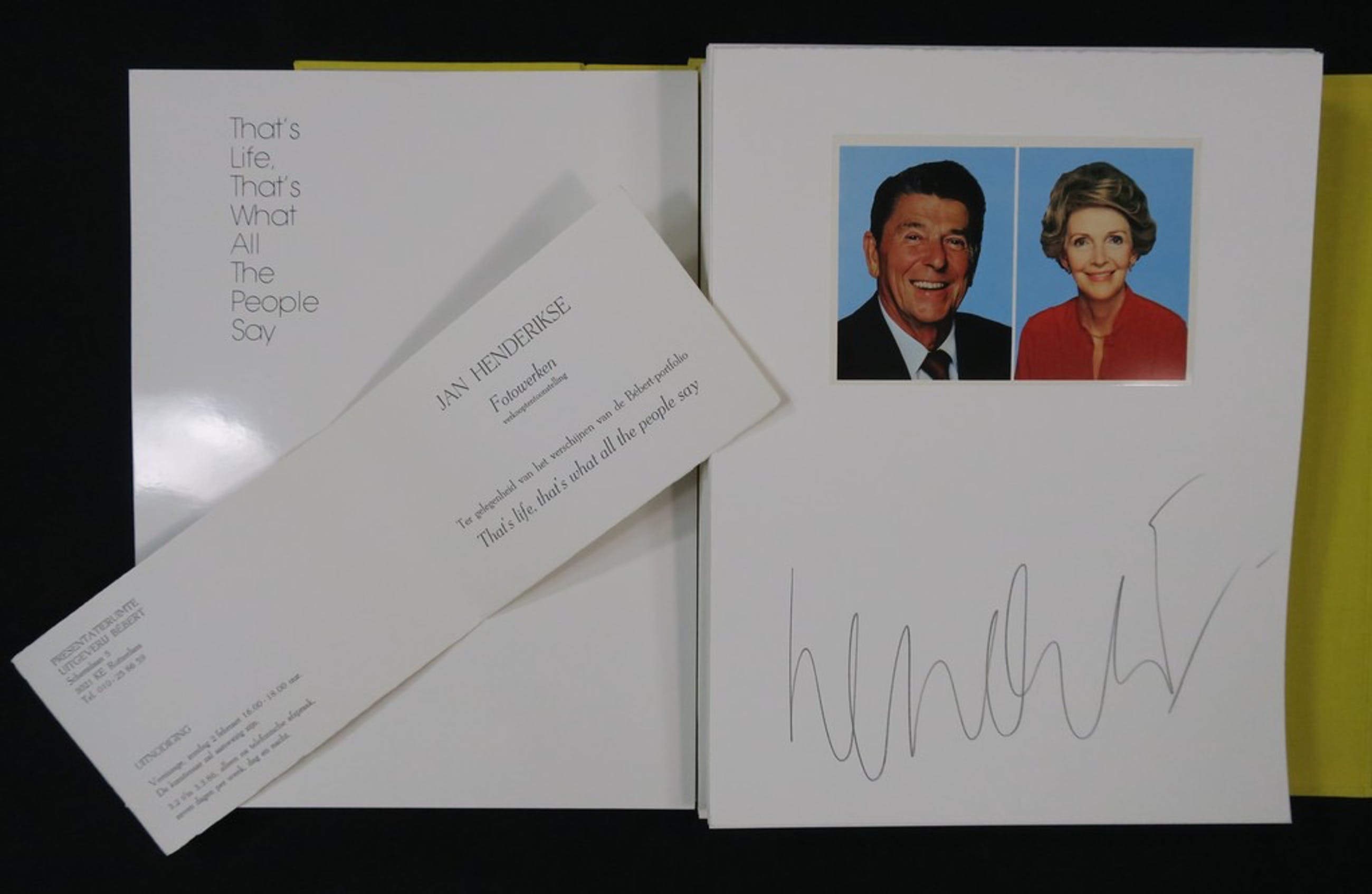 Gesigneerd: Ja, handgeschreven met potlood op het voorblad met foto van Ronald en Nancy Reagan, op het laatste blad en onder elke foto van de serie New York Architecture
