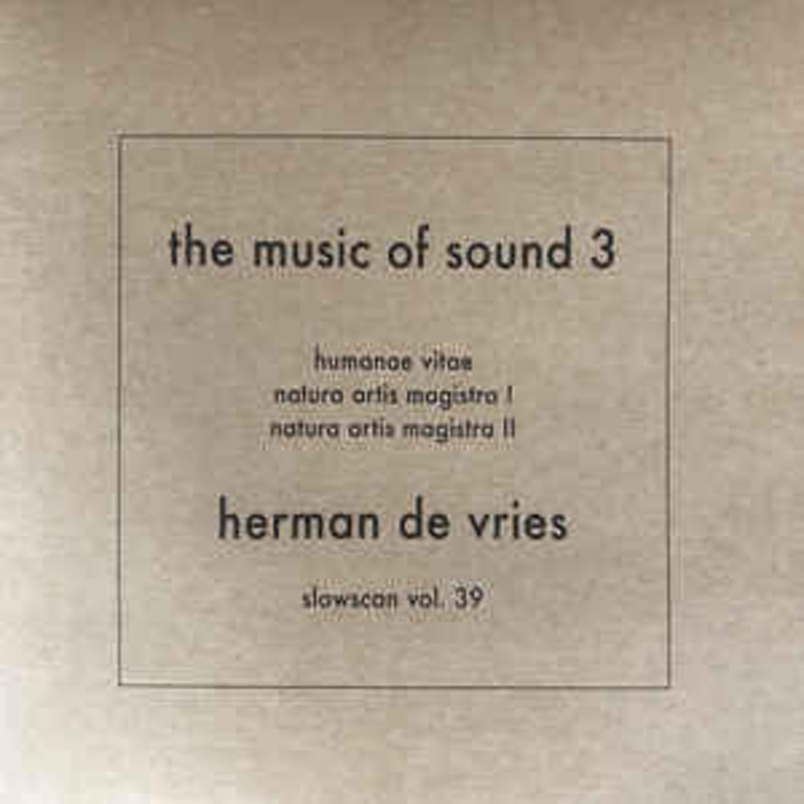 Herman de Vries The music of Sound 3 Slowscan vol. 39 in plastic hoes met een banderol met afbeeldingen van Herman de Vries
