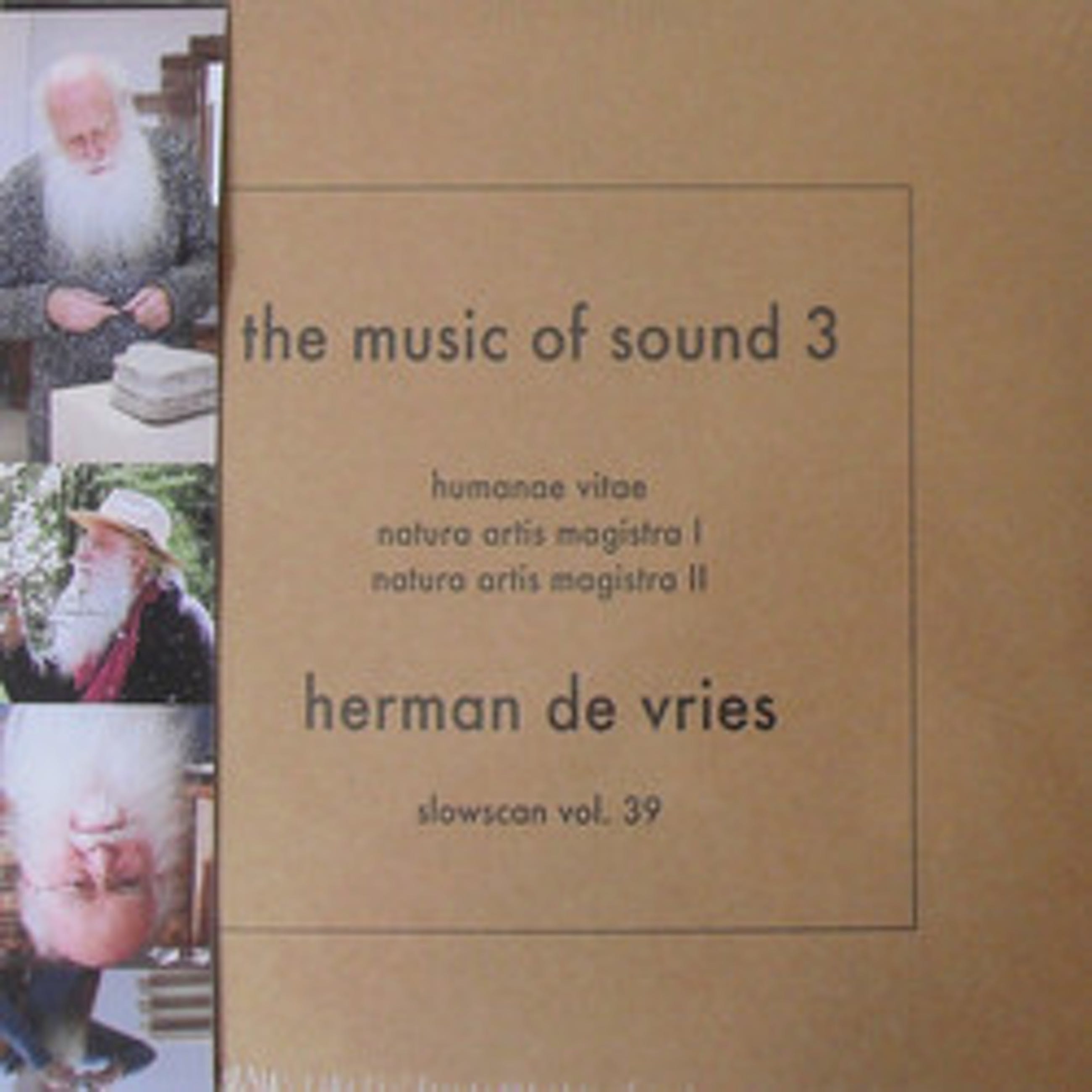 Herman de Vries The music of Sound 3 Slowscan vol. 39 in plastic hoes met een banderol met afbeeldingen van Herman de Vries