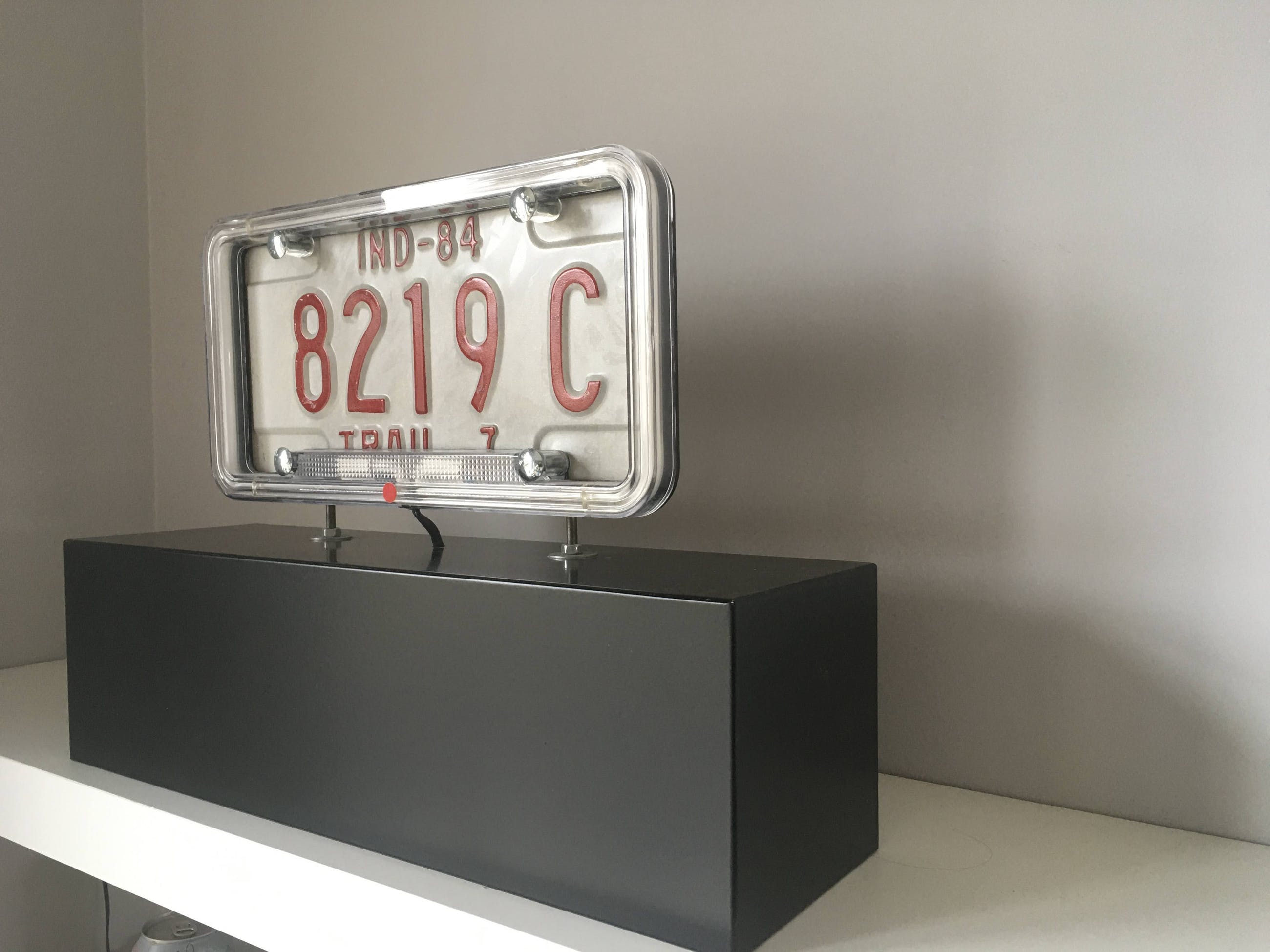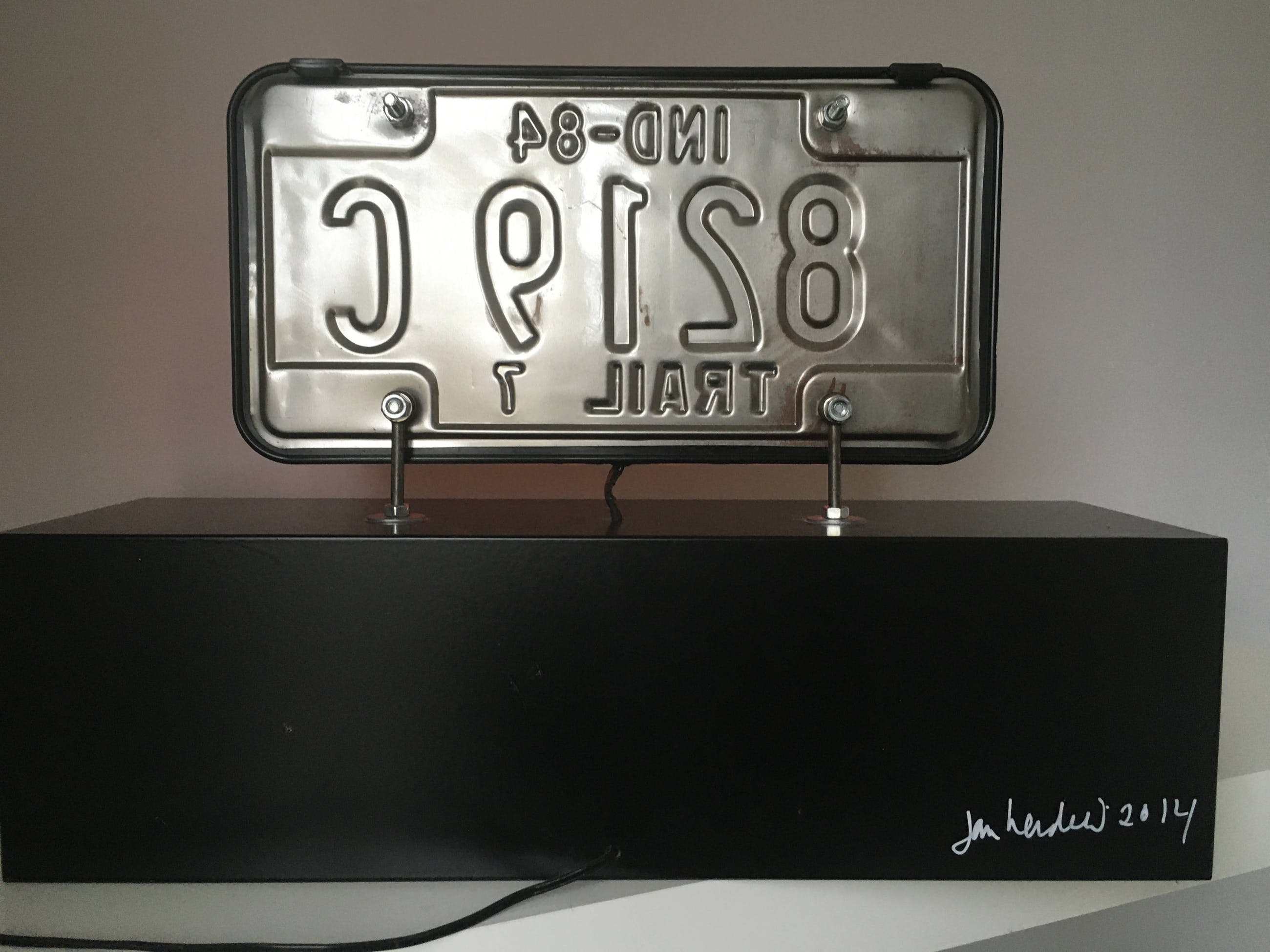 Jan Henderikse - Neon license plate Gemengde techniek - Gesigneerd - uniek - 2014 Prachtig uniek origineel kunstwerk van Jan Henderikse (lid van de ZERO groep) - genaamd Neon License plate. Het werk is een originele nummerplaat uit 1992 omgeven door een neon licht, gemonteerd op een houten kist. Het werk is met de hand gesigneerd en gedateerd 2014 door de kunstenaar. De verlichting/neon werkt. Afmetingen 45cm x 32cm x 13cm. Het stuk is in zeer goede staat.