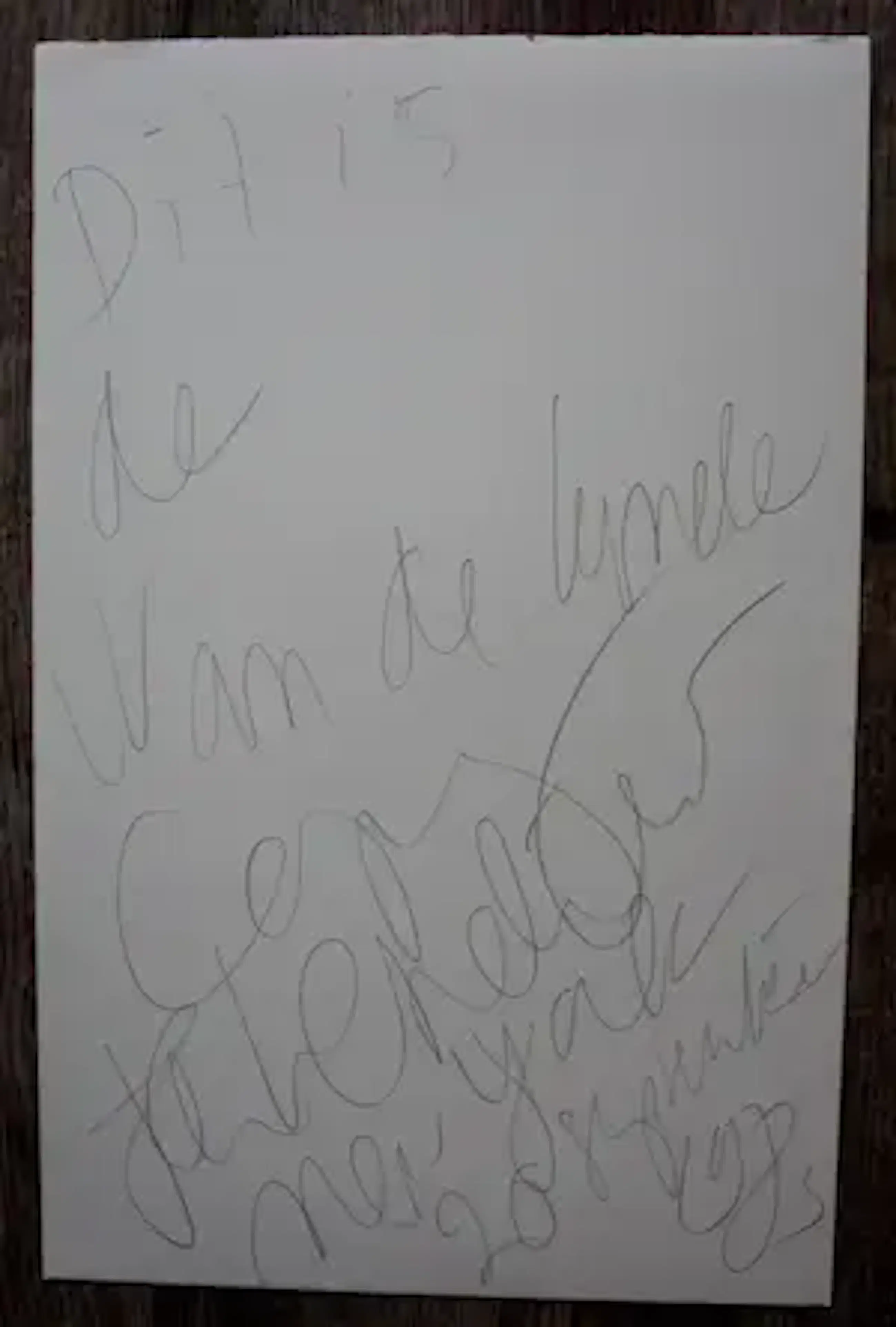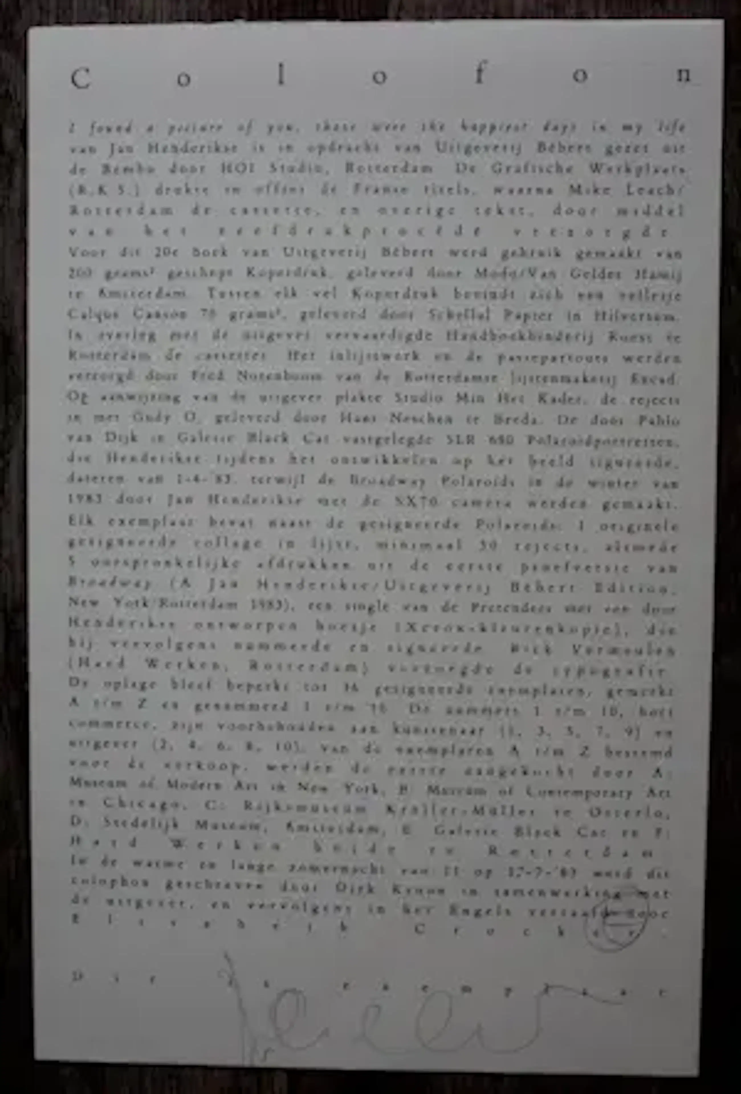 - 9 tekstpagina's in het Engels en Nederlands met een gesigneerd polaroidportret