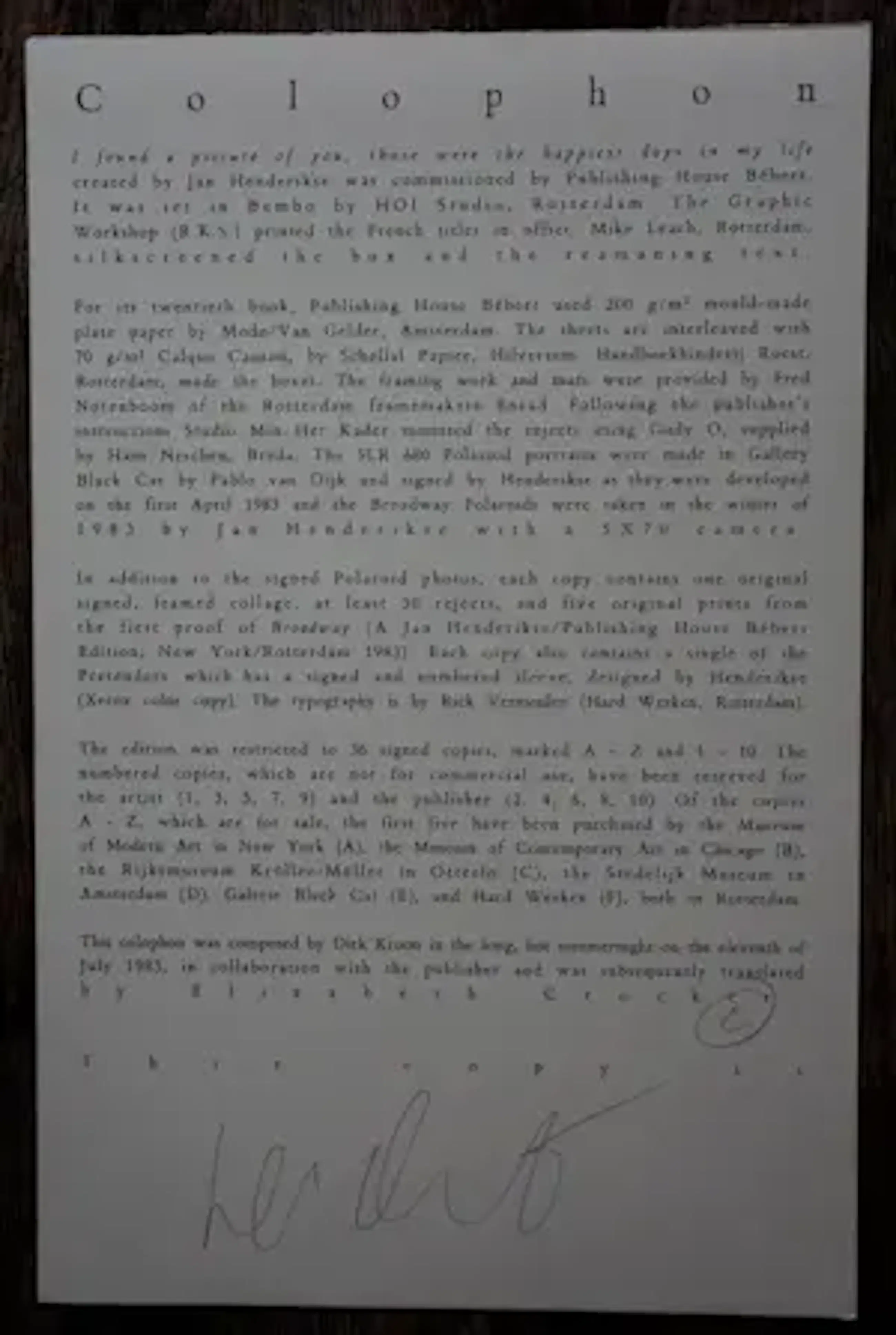 - Editie; 36 gesigneerde exemplaren.
