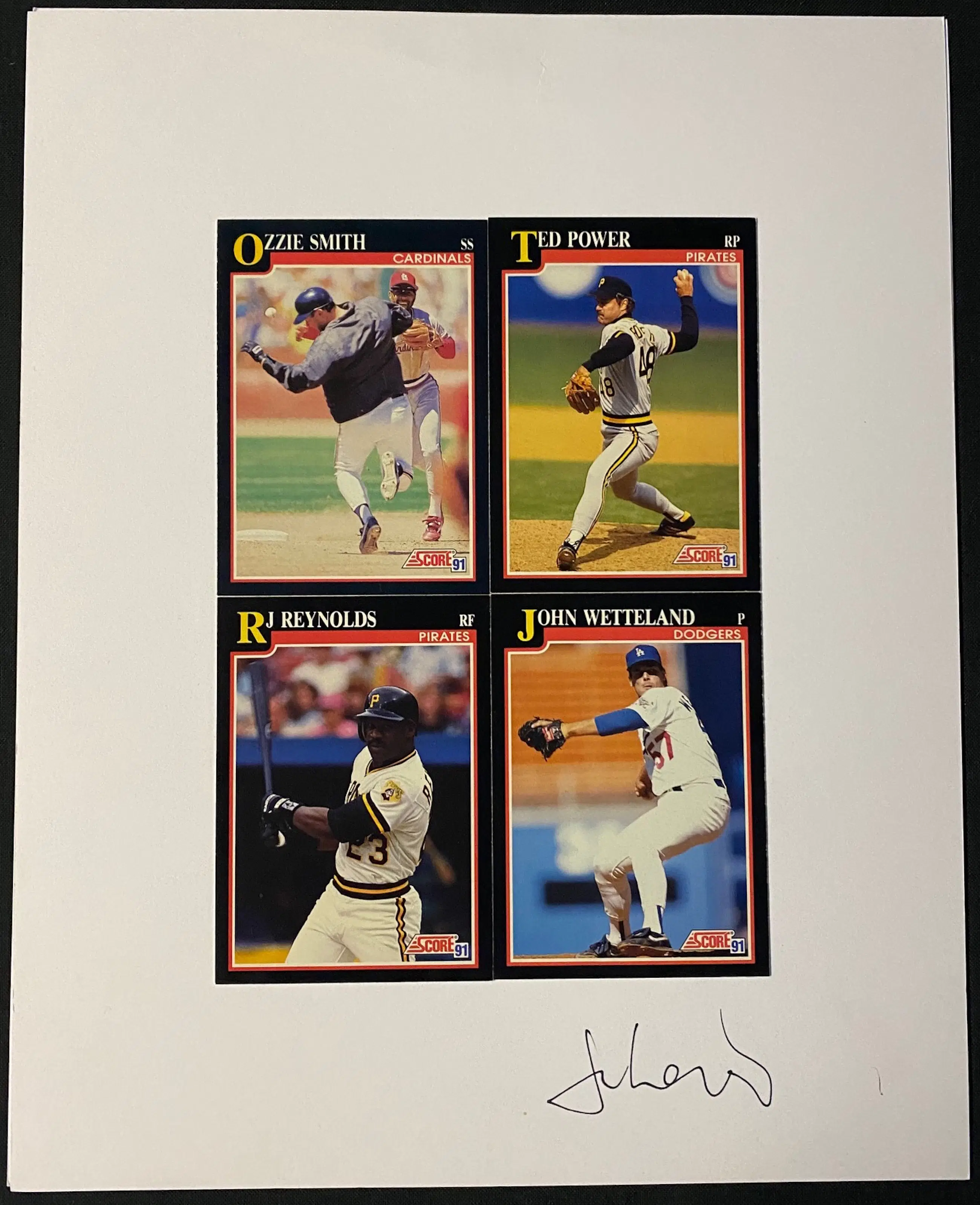 Vier baseball kaartjes op papier