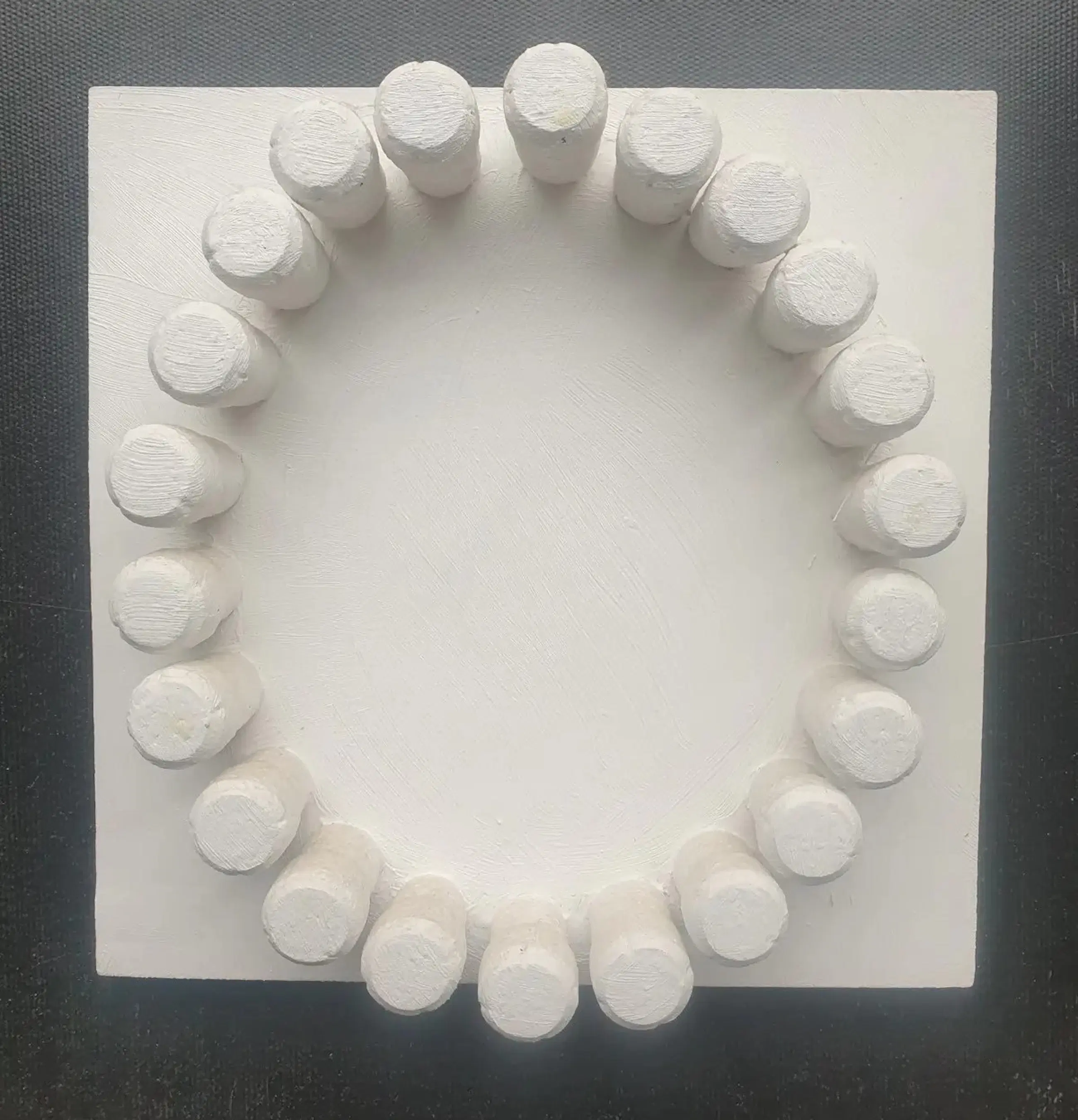 Een uniek witgeschilderd paneel van 30 x 30 cm met wit geschilderde champagnekurken van Zero kunstenaar Jan Henderikse. Herkomst atelier Henderikse via galerie Schoots van Duyse. Rond 2015. Het werk is typisch een ZERO werk en is op de achterzijde gesigneerd. Wordt aangetekend verstuurd of kan opgehaald worden.