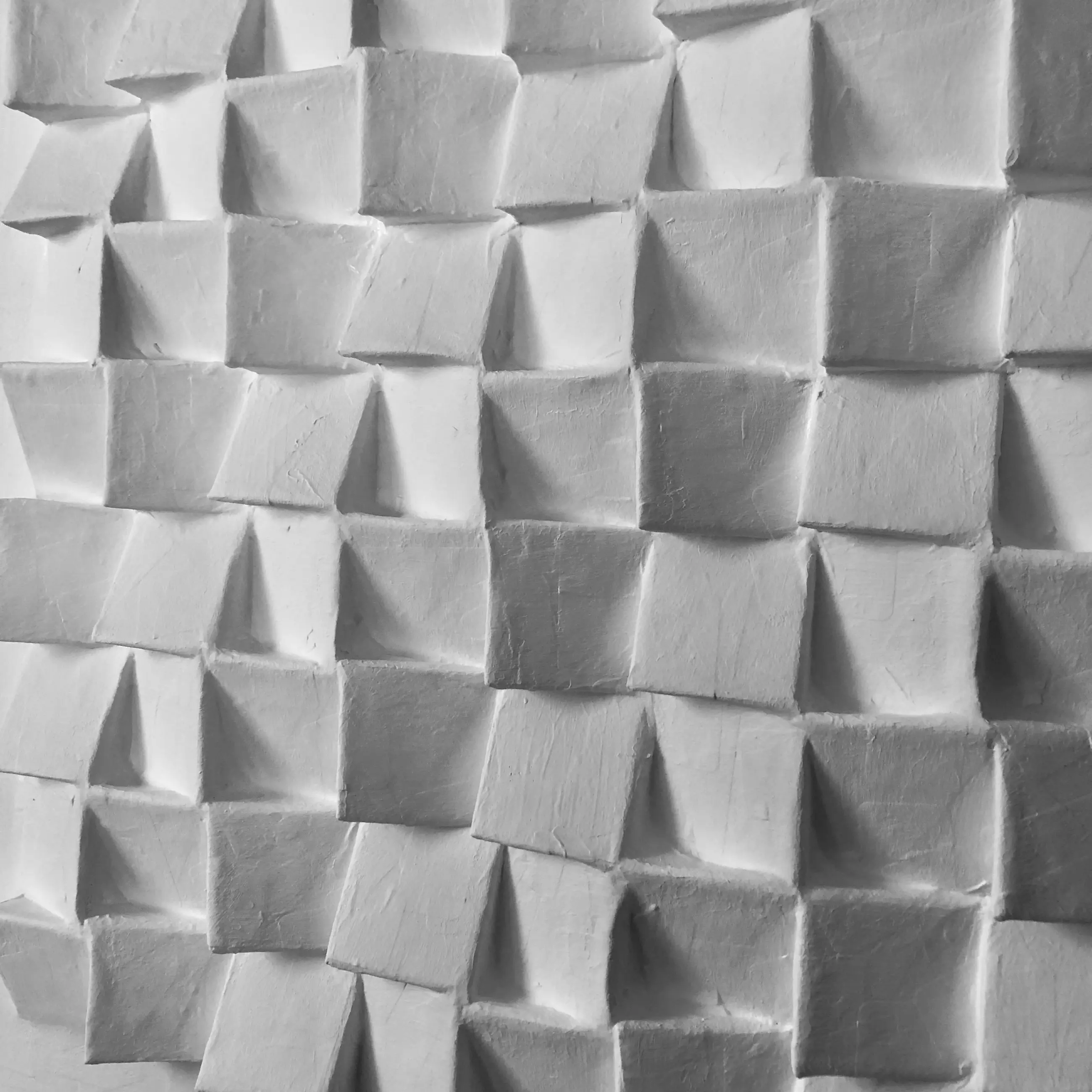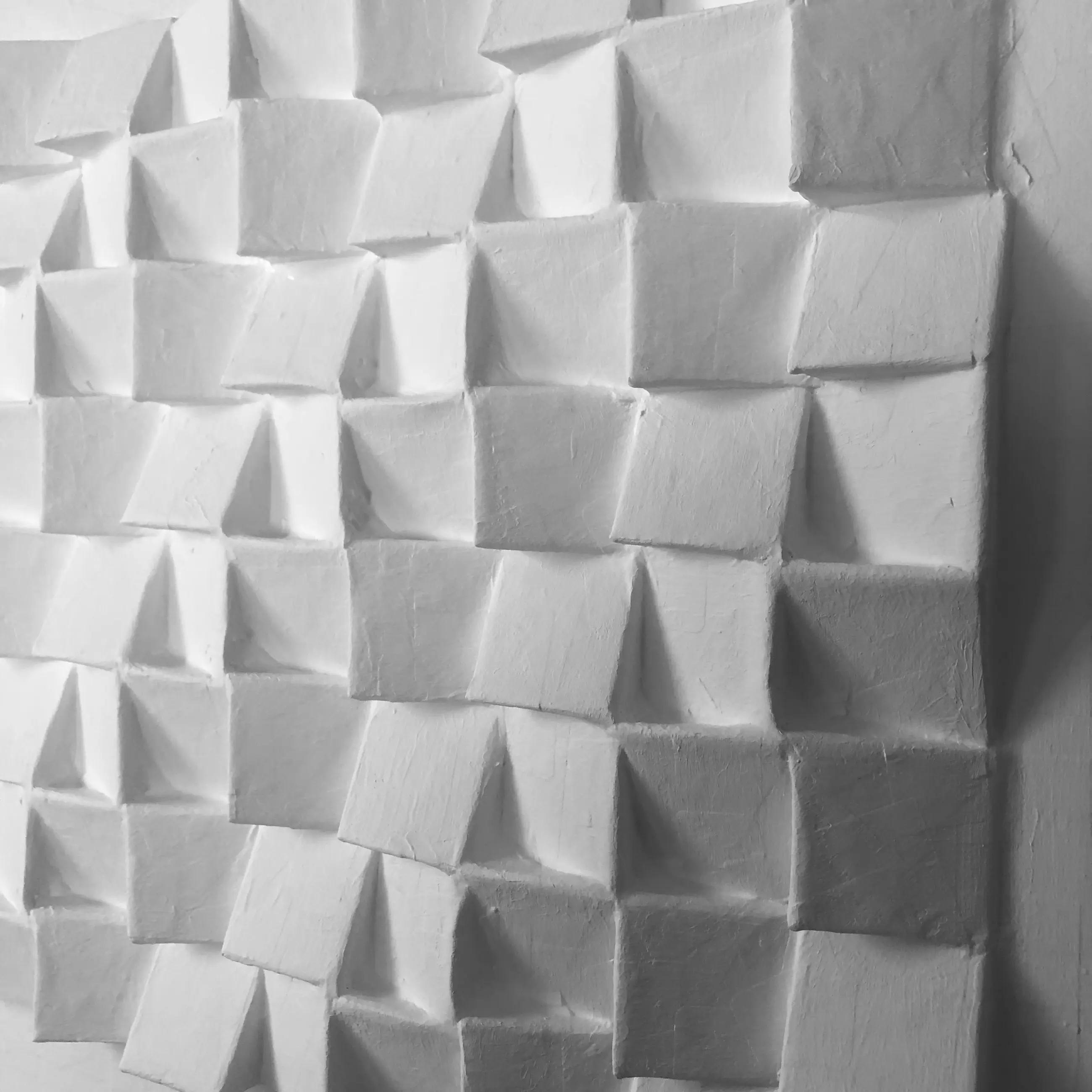 geometrisch-abstract reliëf, herinnert aan De Stijl en Zero, spiritueel en meditatief, zorgvuldig gecomponeerd en geconstrueerd uit karton en papieren elementen, vangt het licht vanuit verschillende standpunten en gedurende verschillende momenten van de dag.