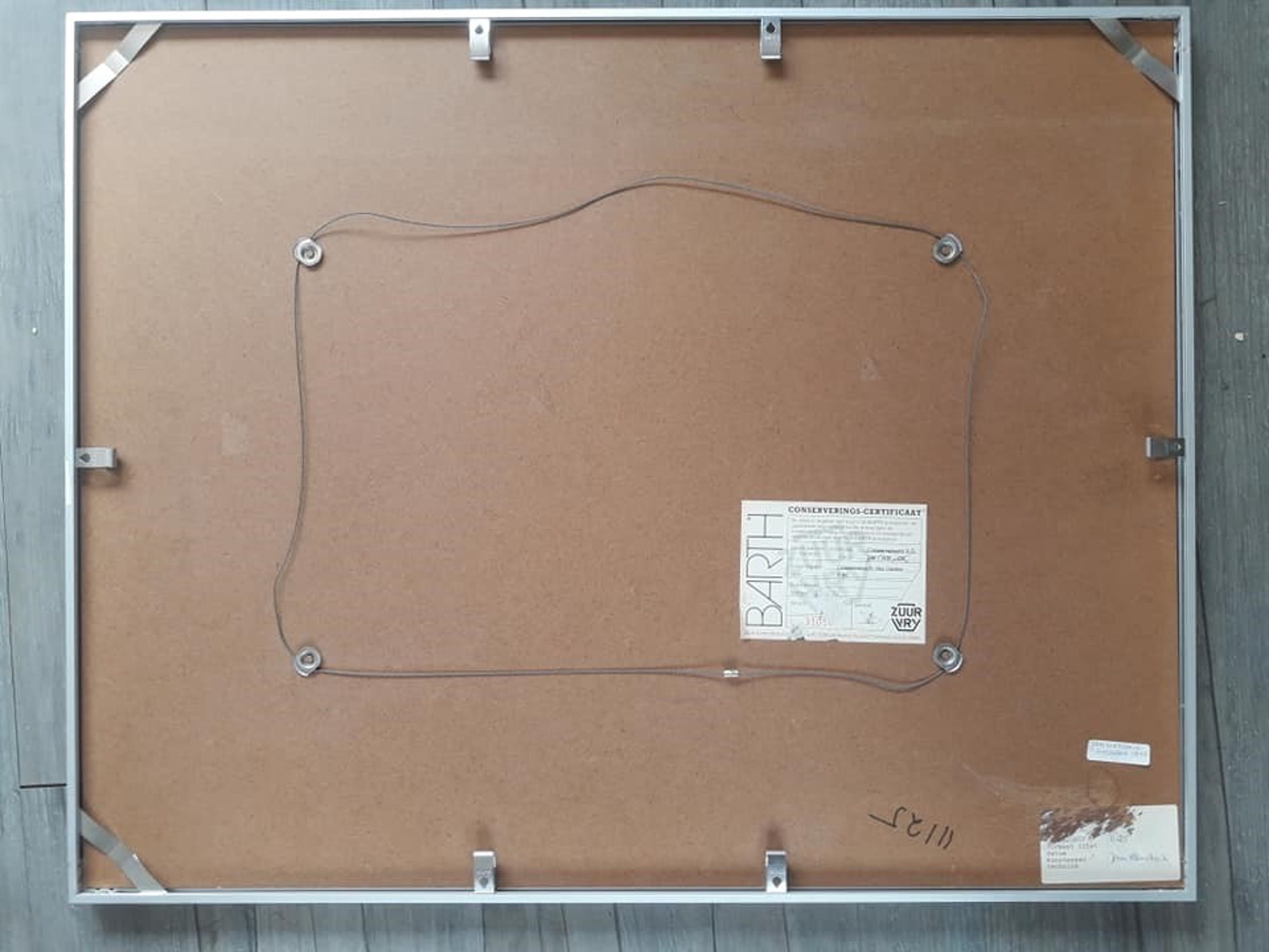 Links onderin is een heel klein stukje glas weg uit de lijst, Zal worden verzonden in een op maat gemaakte kist om beschadiging te voorkomen. Glasbreuk blijft risico koper. Kan ook worden afgehaald.
