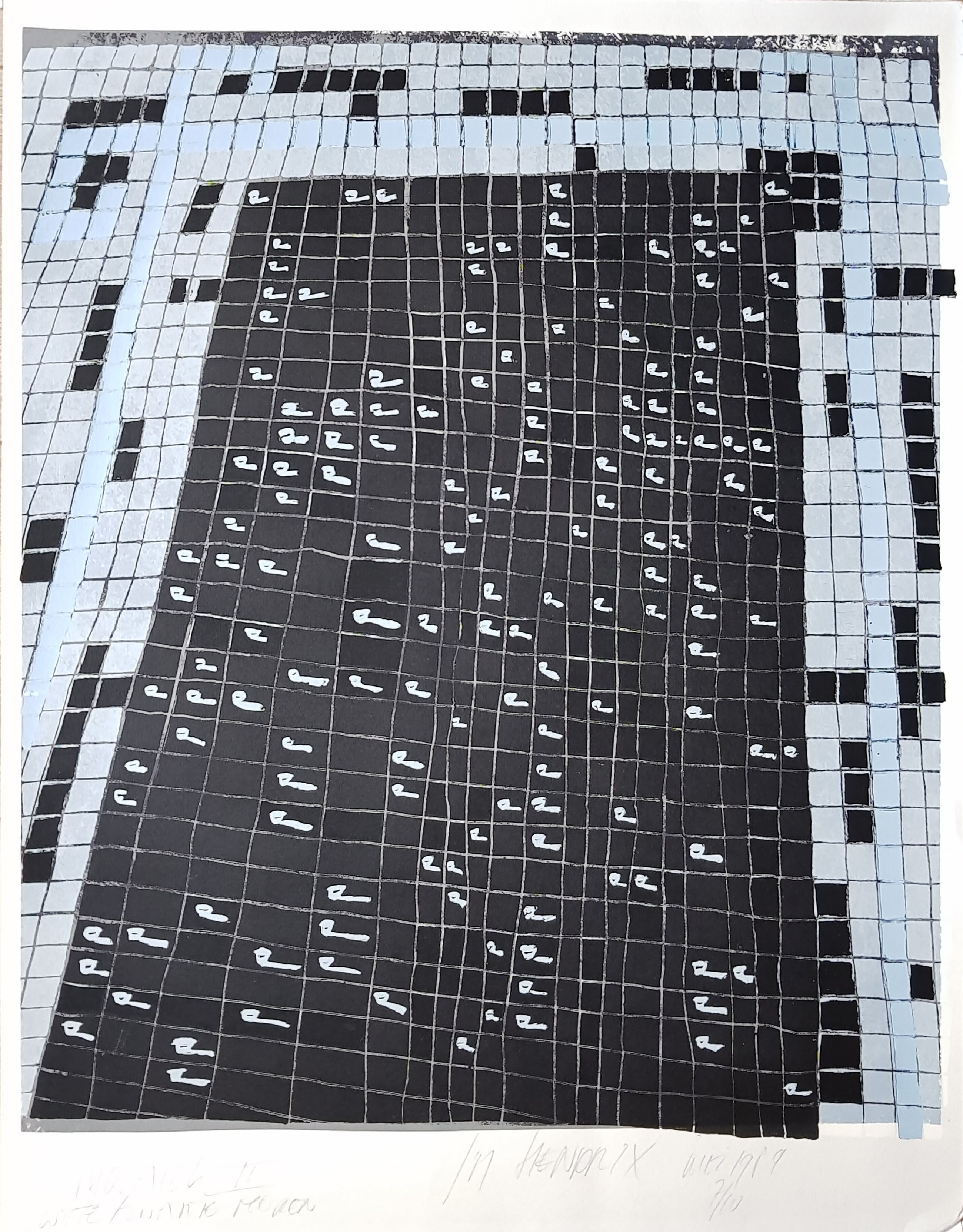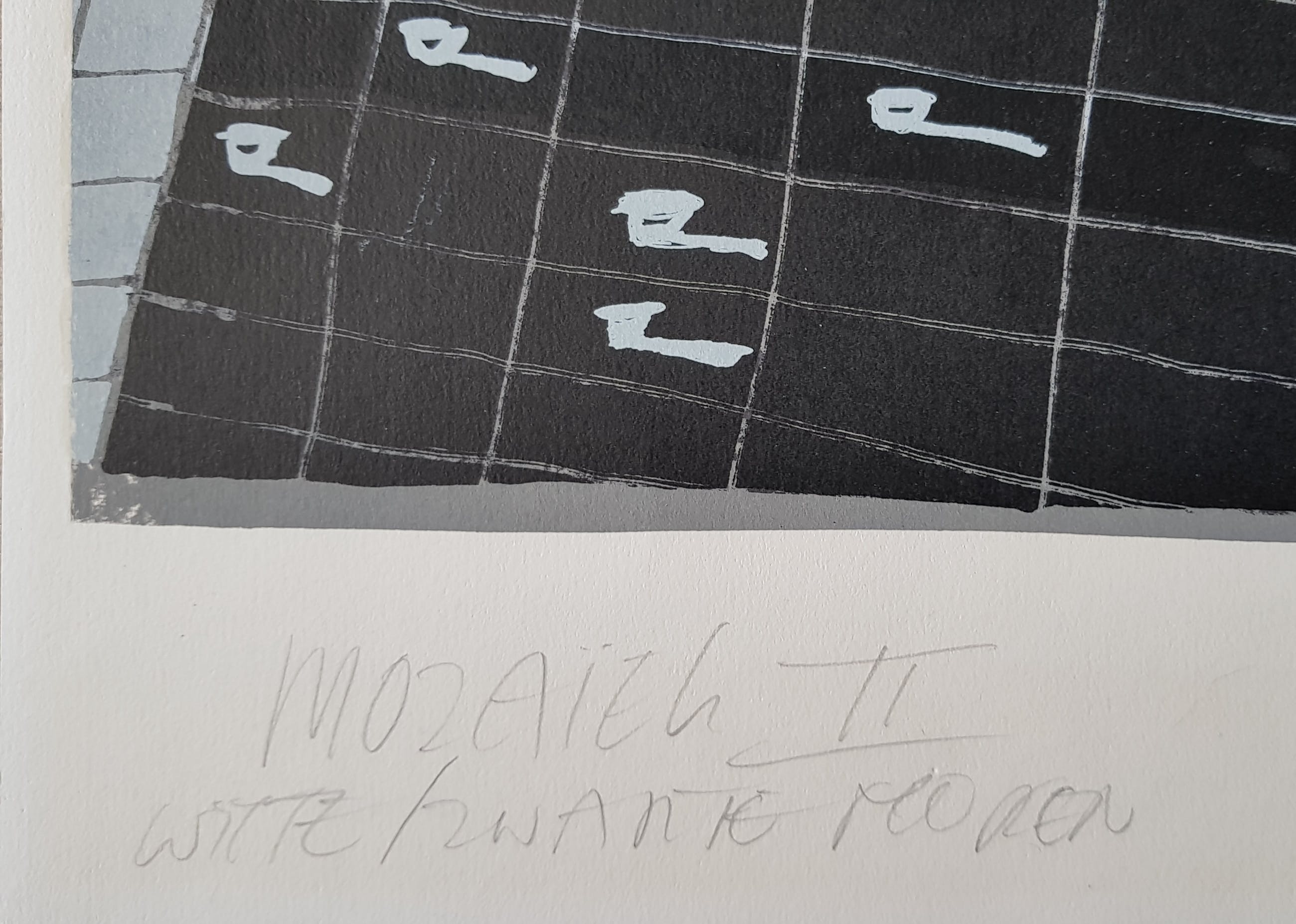Jan HendrixZeefdruk Mozaïek IImei 1989Oplage 7/10R.o. gesigneerd, gedateerd en genummerdL.o getiteldBeeldmaat 48 x 57 cmPapiermaat 50 x 65 cm