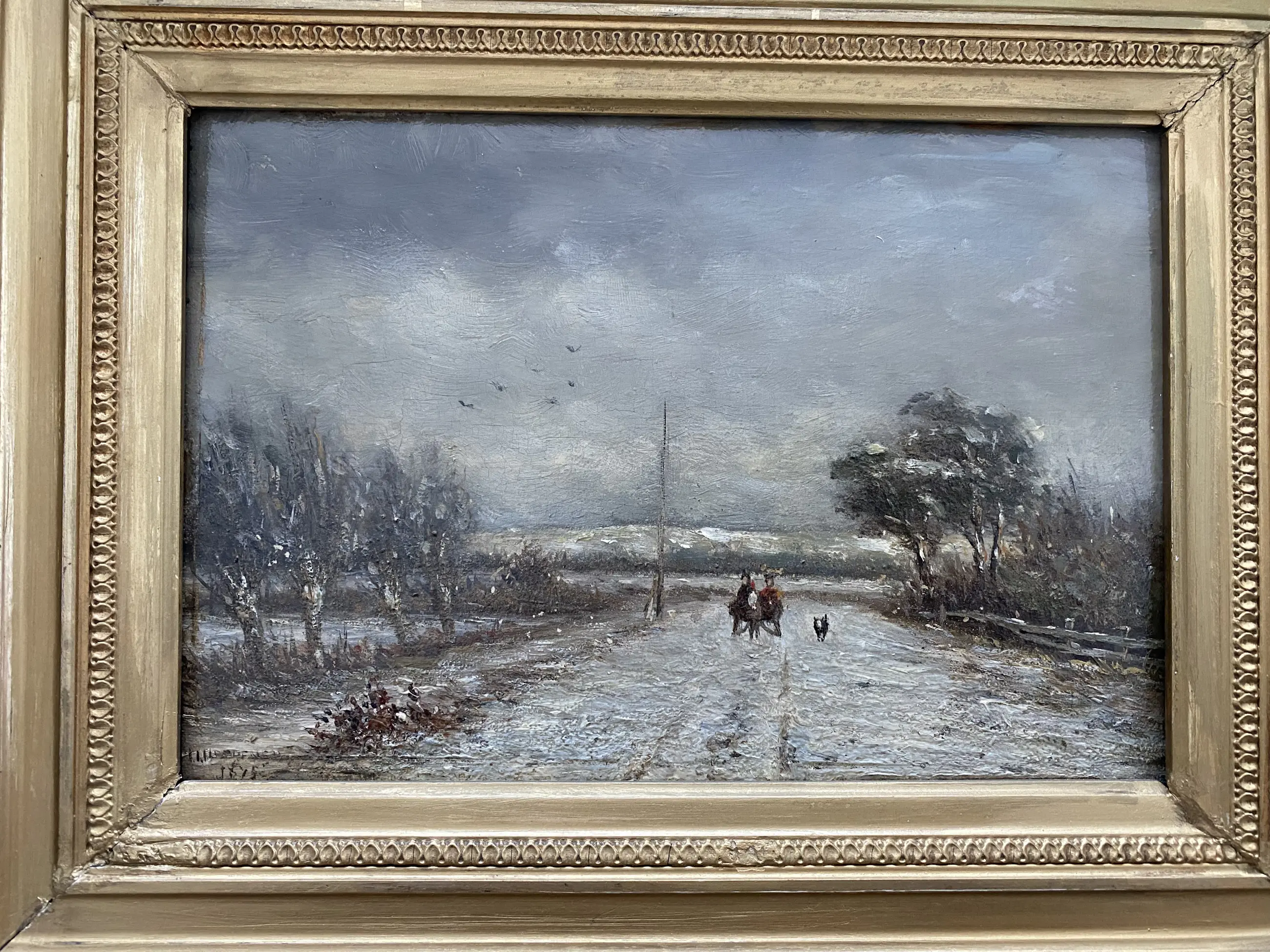Het werk door schilder Jan Heppener, voorstellende een arrenslede in een besneeuwd landschap, is gesigneerd en gedateerd 1875. Het schilderij is al decennia in ons bezit en verkeerd in redelijk goede staat.