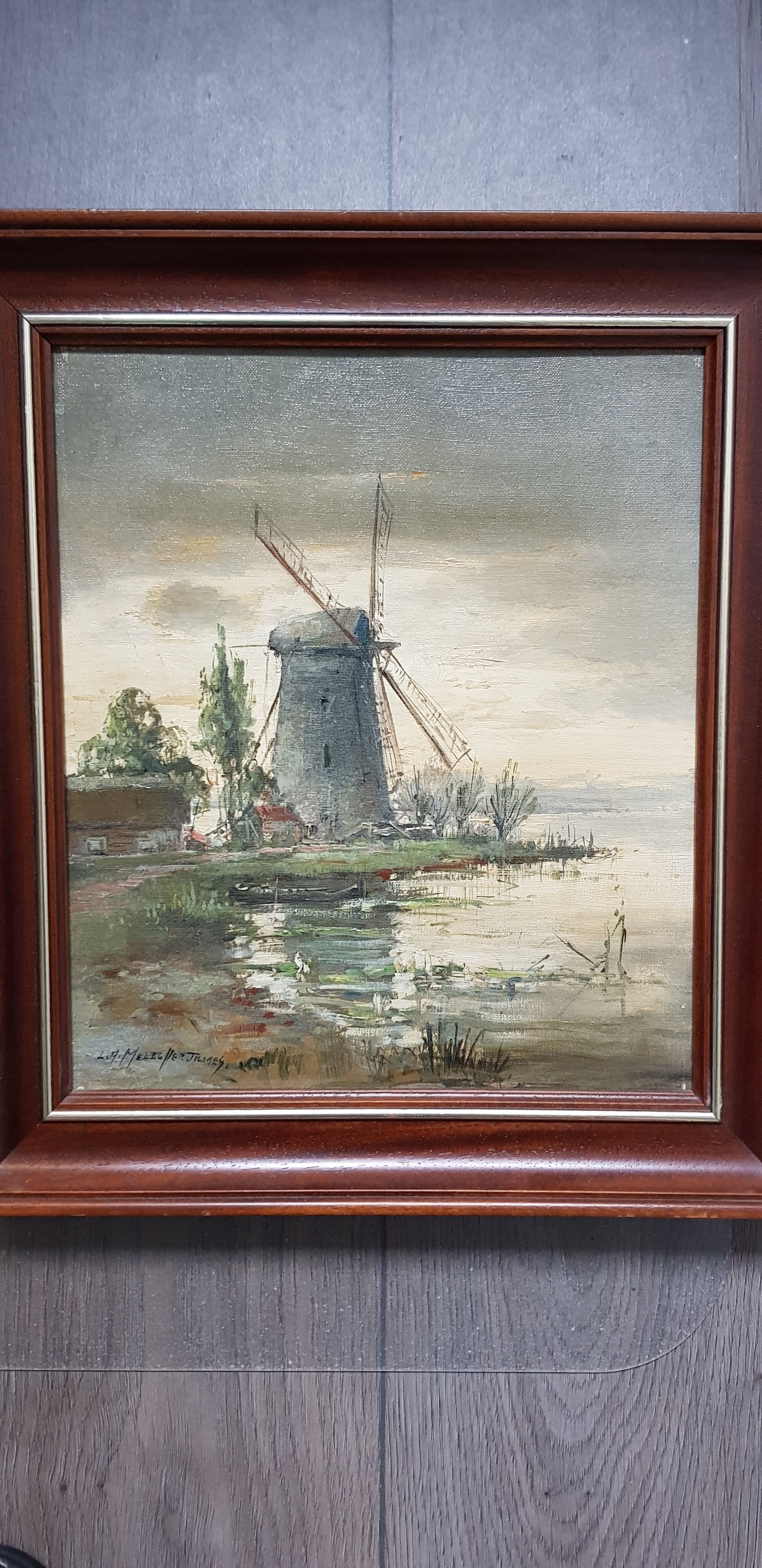 oek van Jan Hermanus Meicher Tilmes - Gezicht op Molen. Hollands tafereel. Handgesigneerd