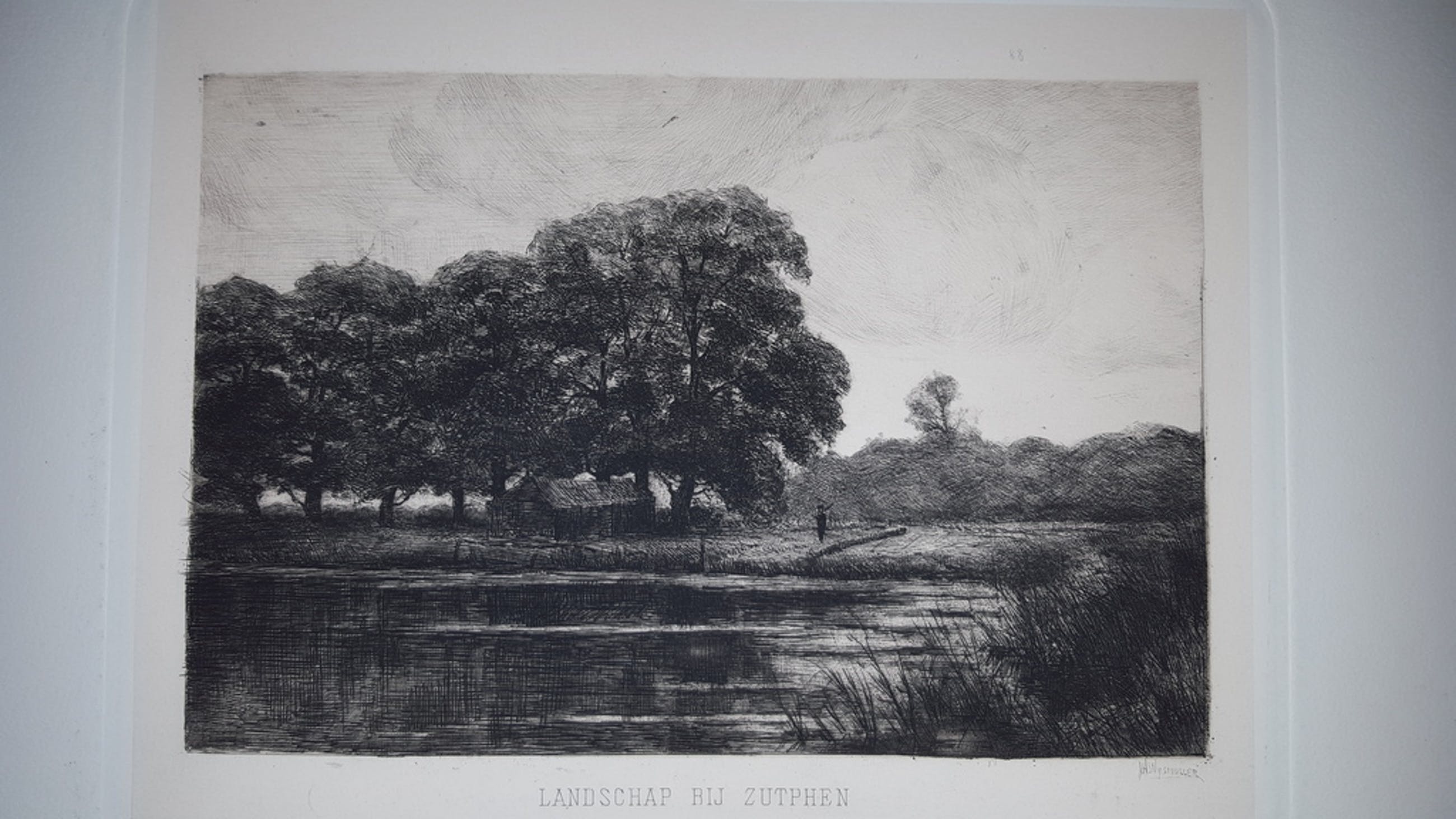 Ets, landschap bij Zutphen, gesigneerd r.o.