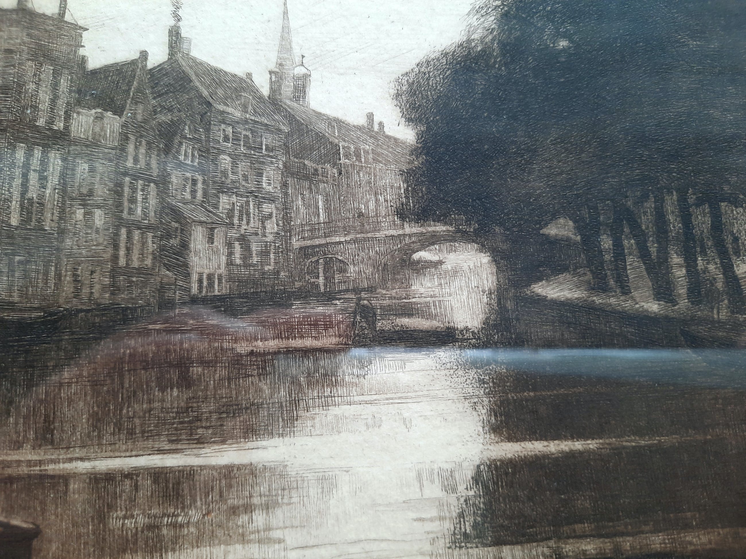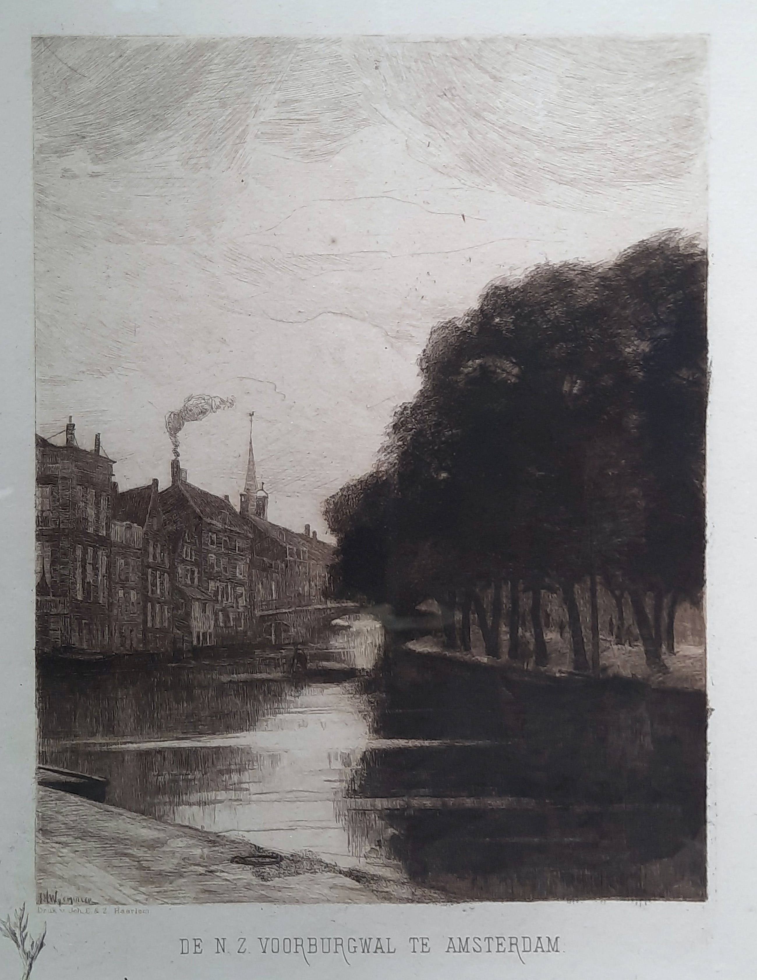 In de plaat gesigneerd met J.H. Wysmuller. Gedrukt door Joh E. & Z. Haarlem. Prachtig helder exemplaar. Moeilijk te fotograferen achter glas. Goed ingelijst, zodat de plaatafdruk in het papier zichtbaar is.
