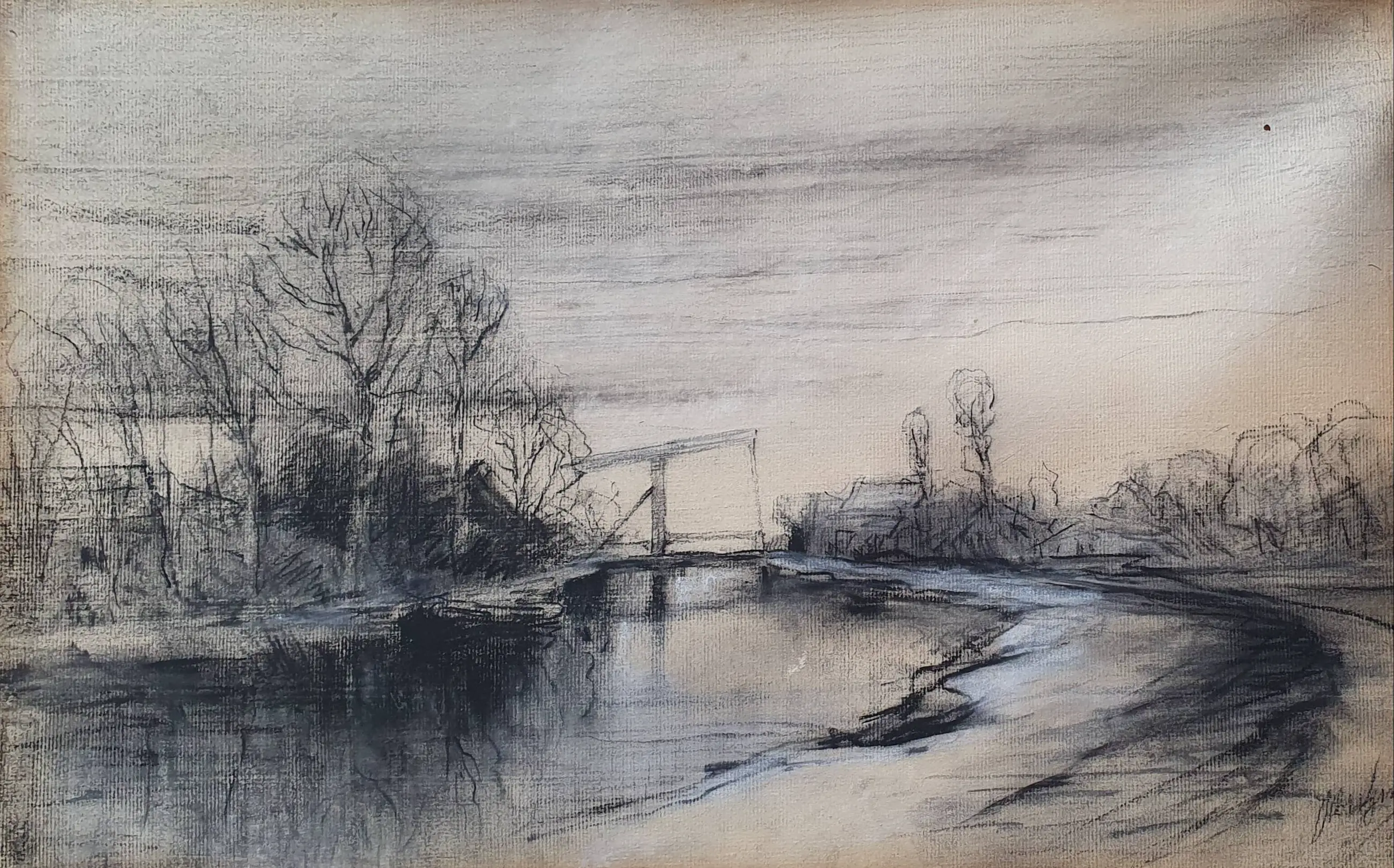Ophaalbruggetje in landschap, ergens in Nederland. Lievelingsprent van mijn ouders.