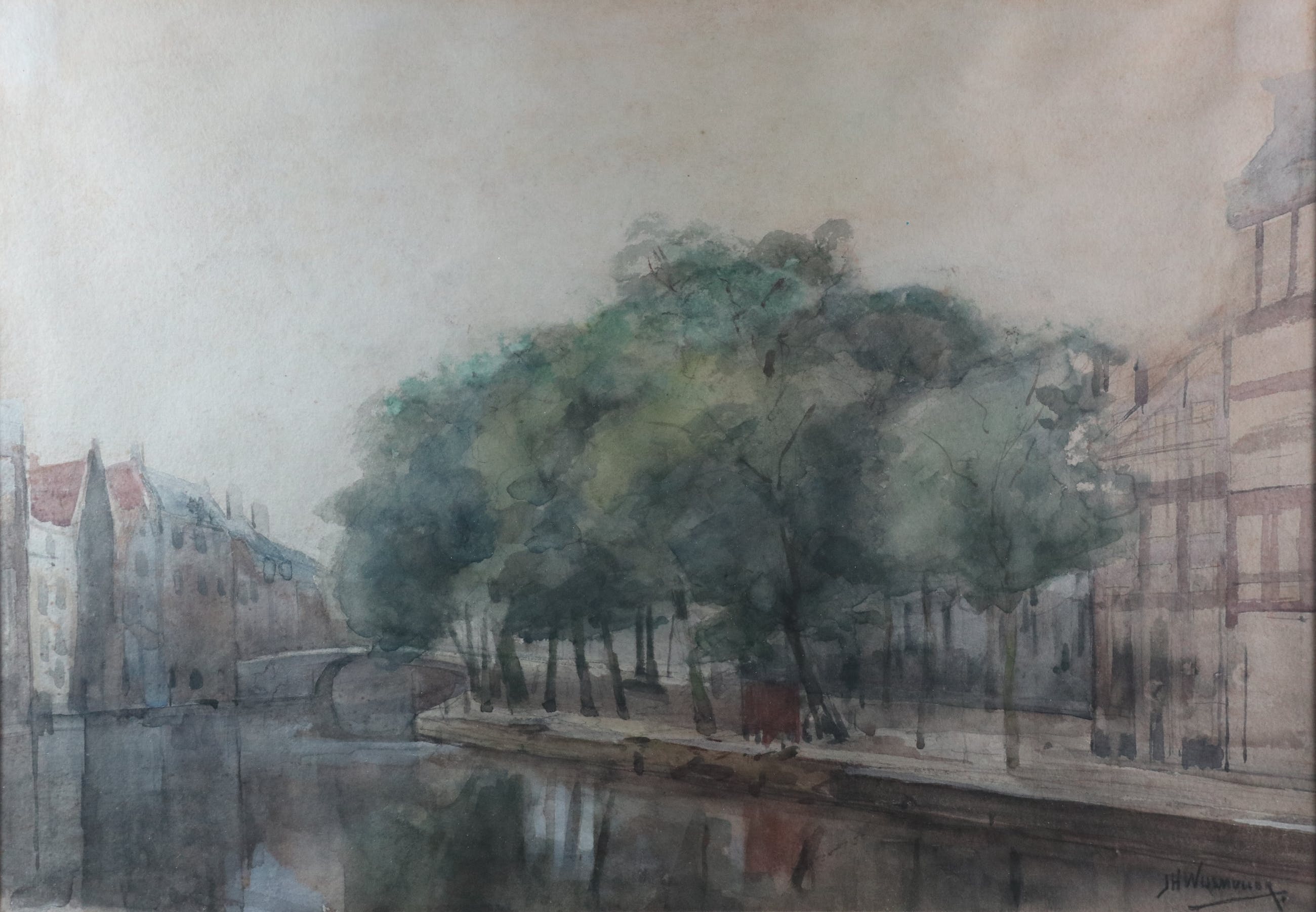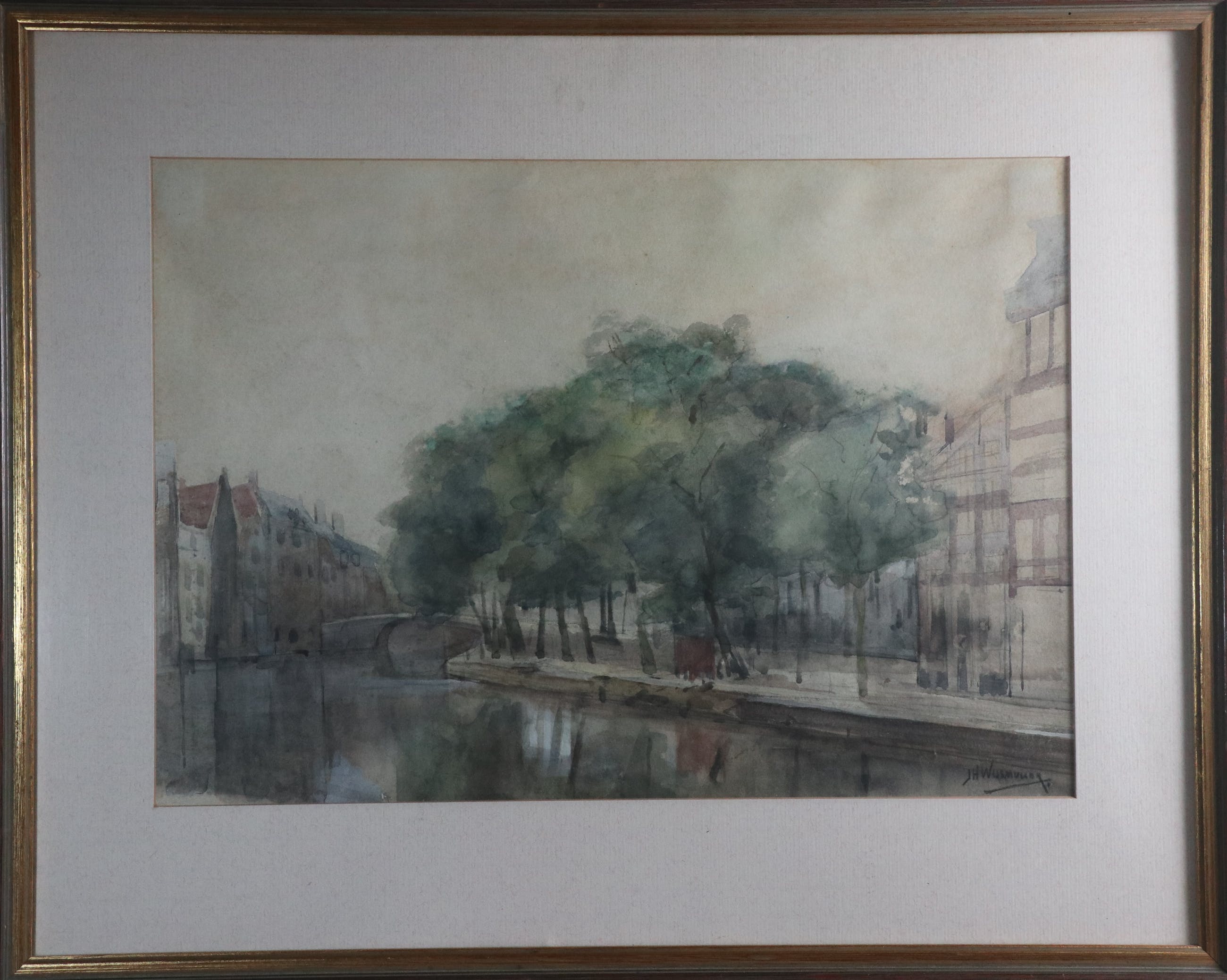 Mooie en netjes ingelijste aquarel van J.H. Wijsmuller.