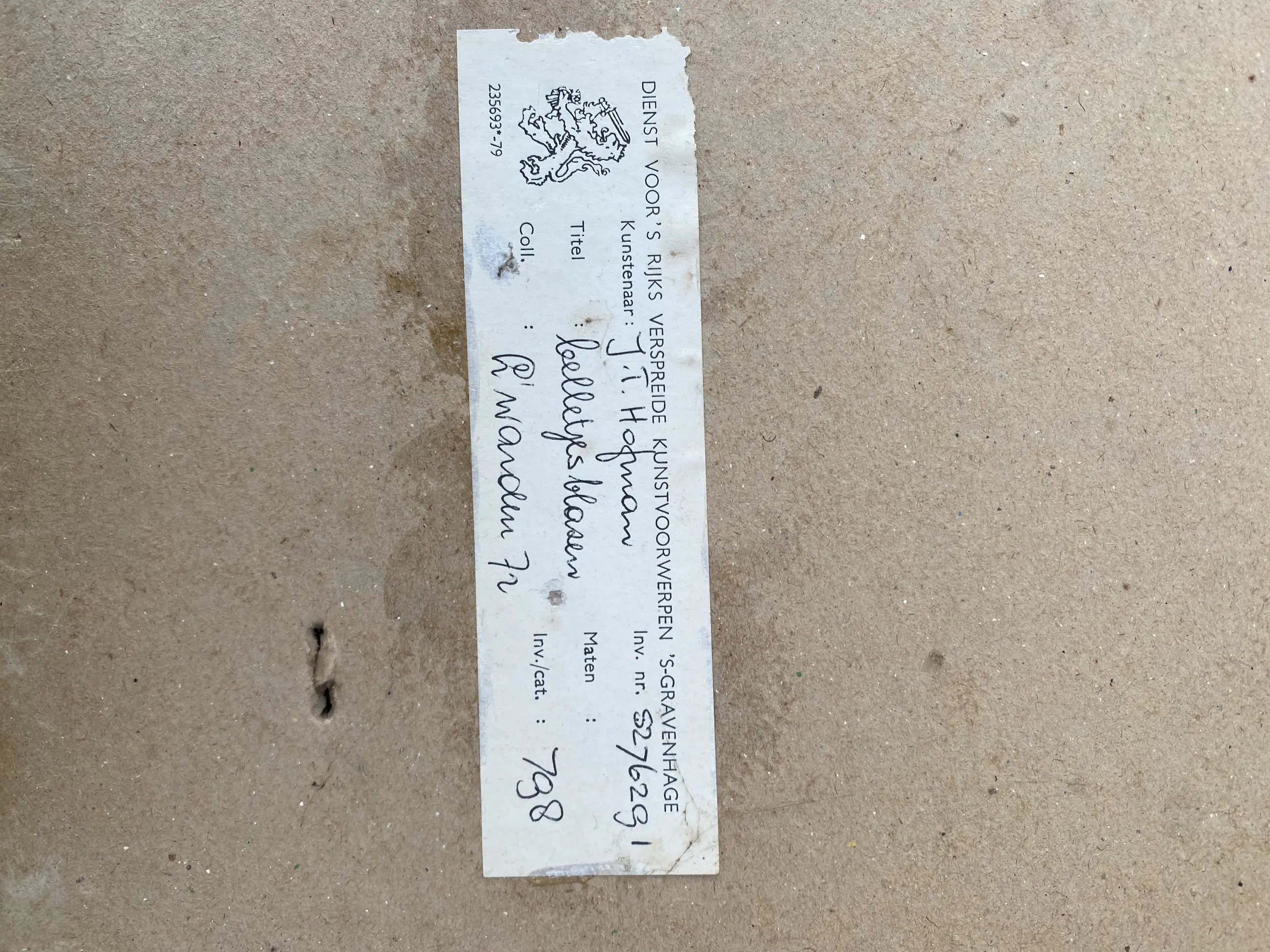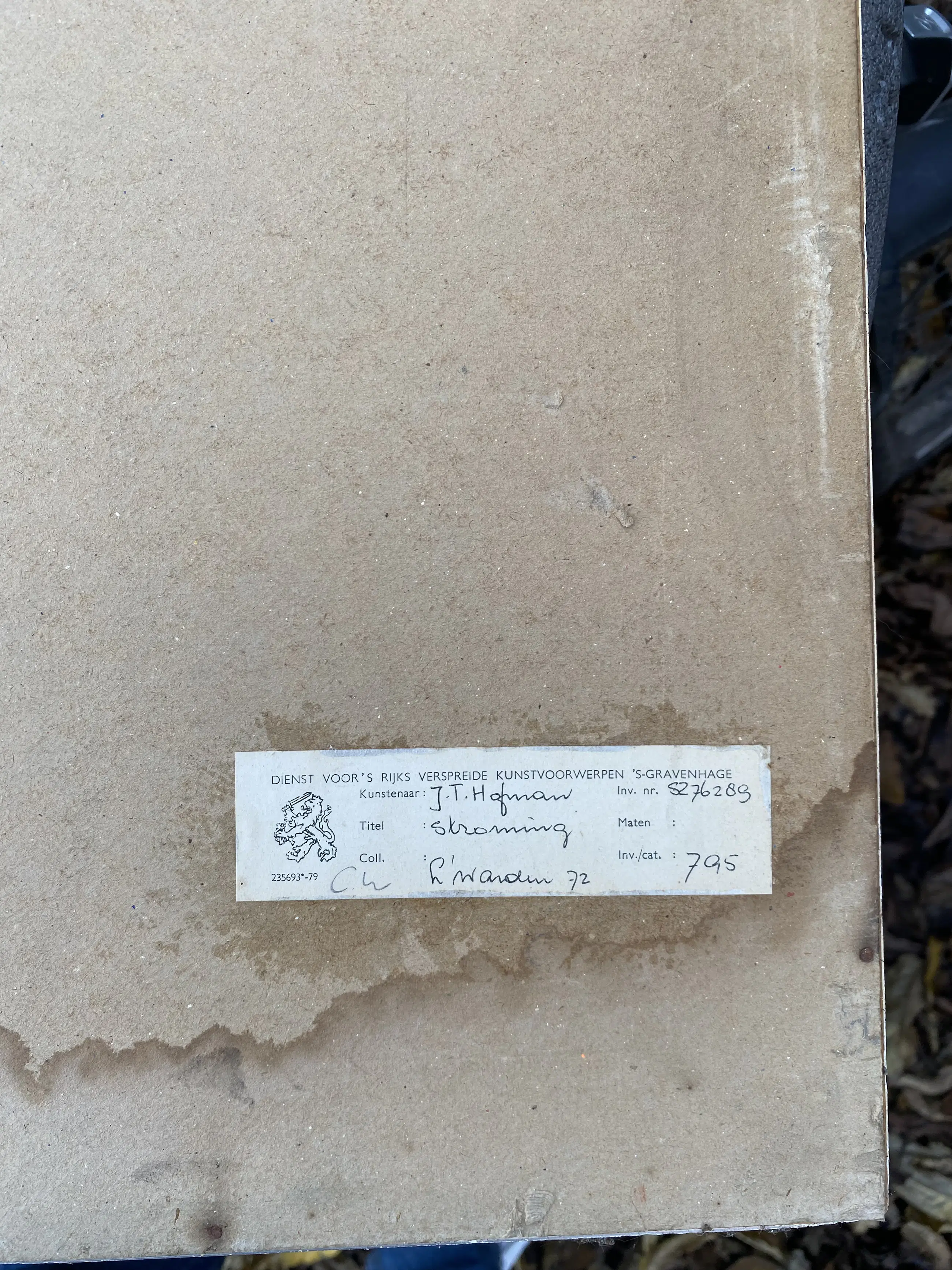 Het werk is af te halen op locatie. Als koper dient u zelf verpakkingsmateriaal mee te nemen. De locatie is: Amsterdam, Nederland