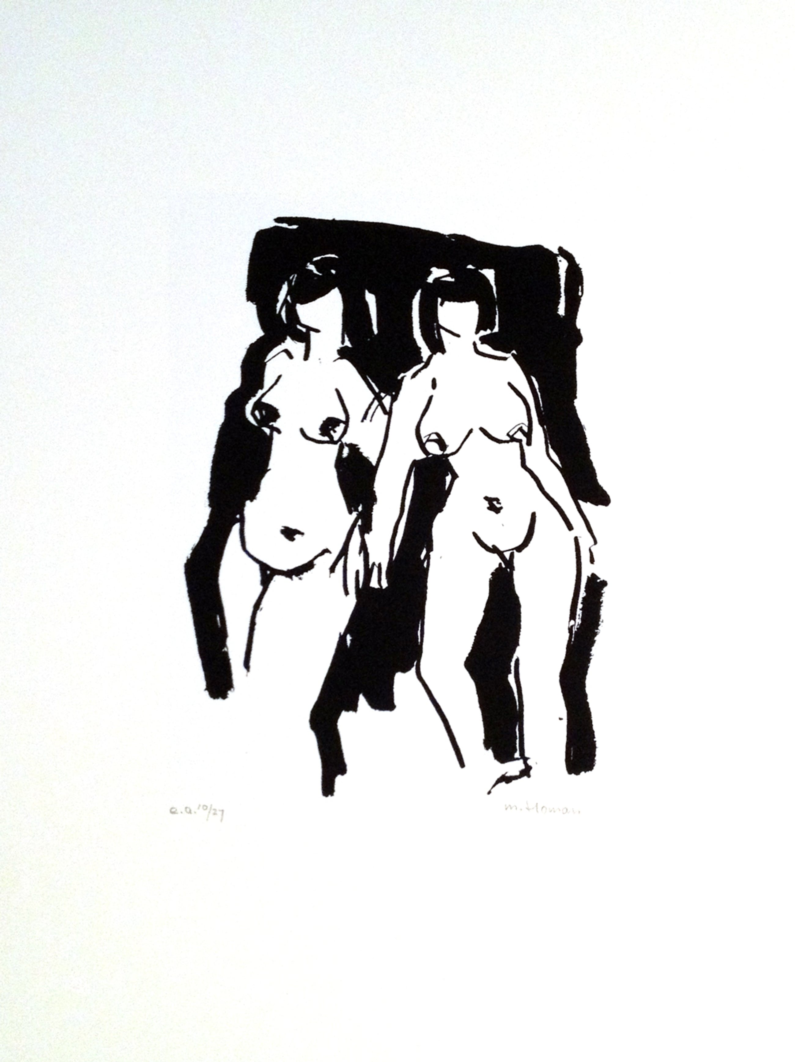 De zeefdruk is met de hand gedrukt op geschept papier.