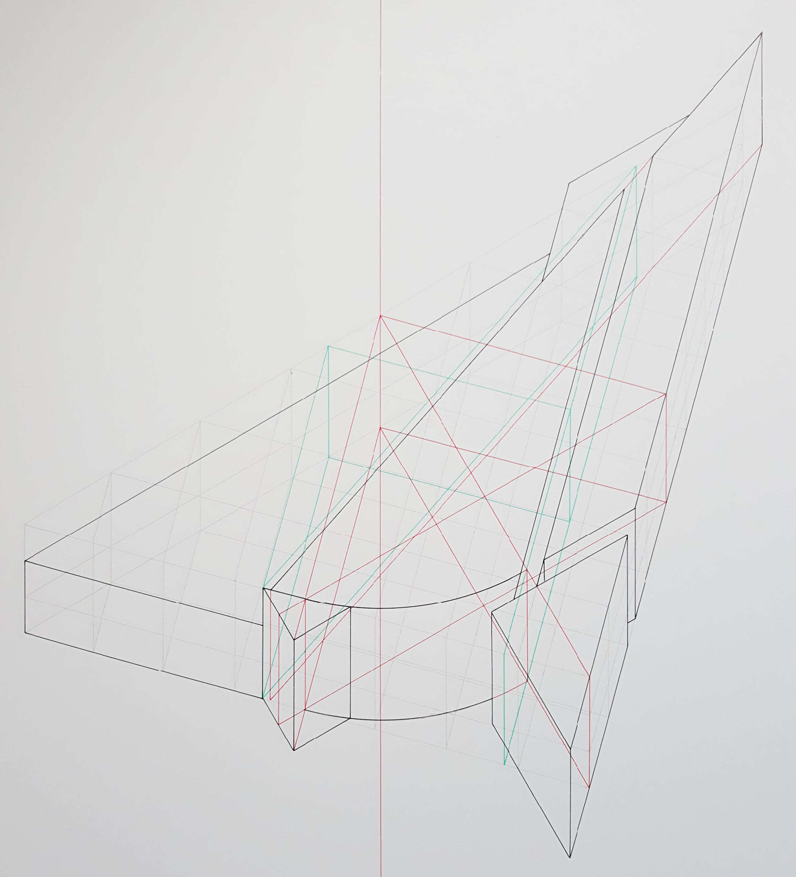 Elegante, ragfijne compositie van de Rotterdamse architect en tekenaar Jan Hoogstad, in de moderne kunst misschien niet heel bekend maar in de wereld van de architectuur beslist een grote naam (stroming: neorationalisme).