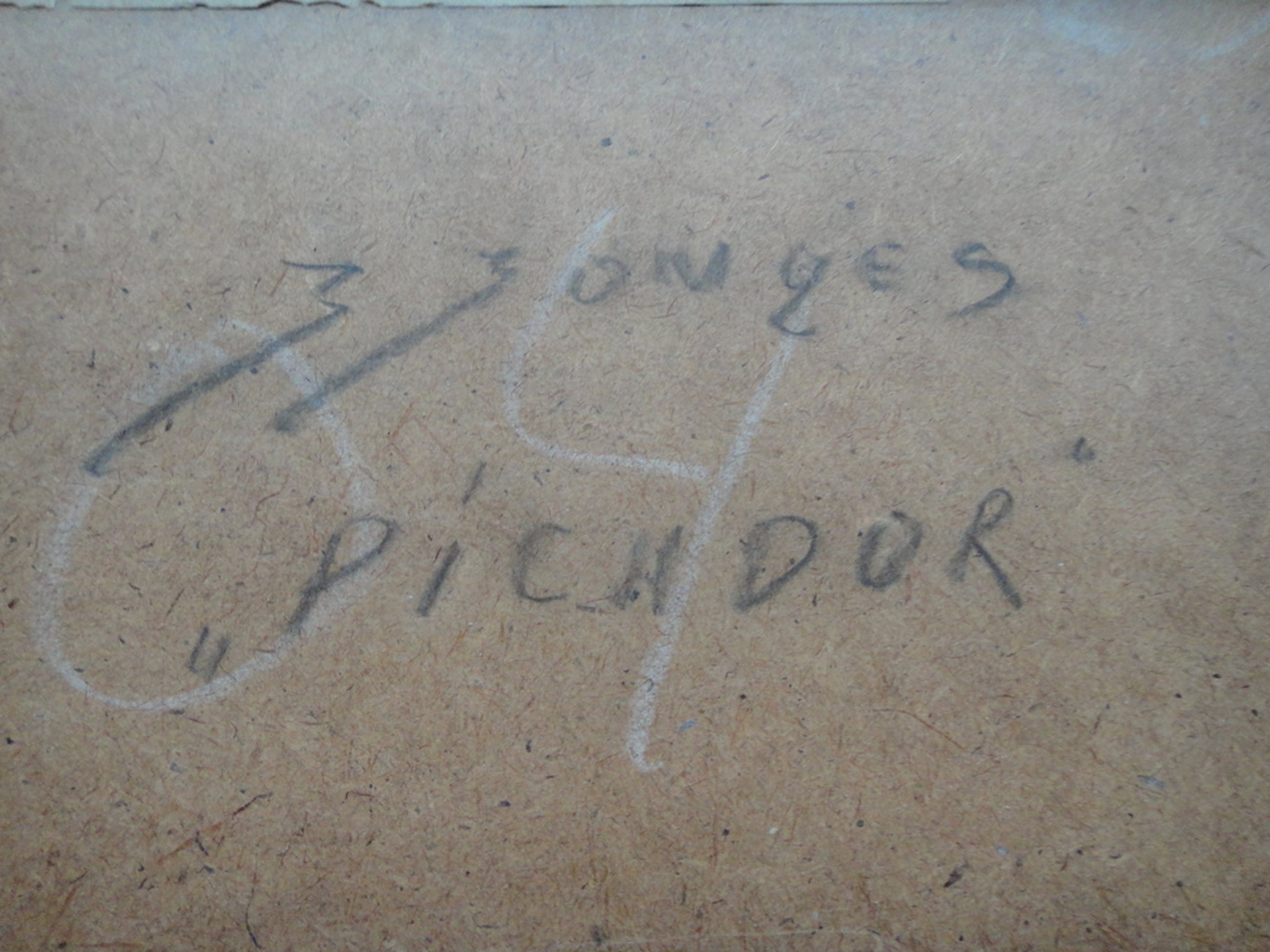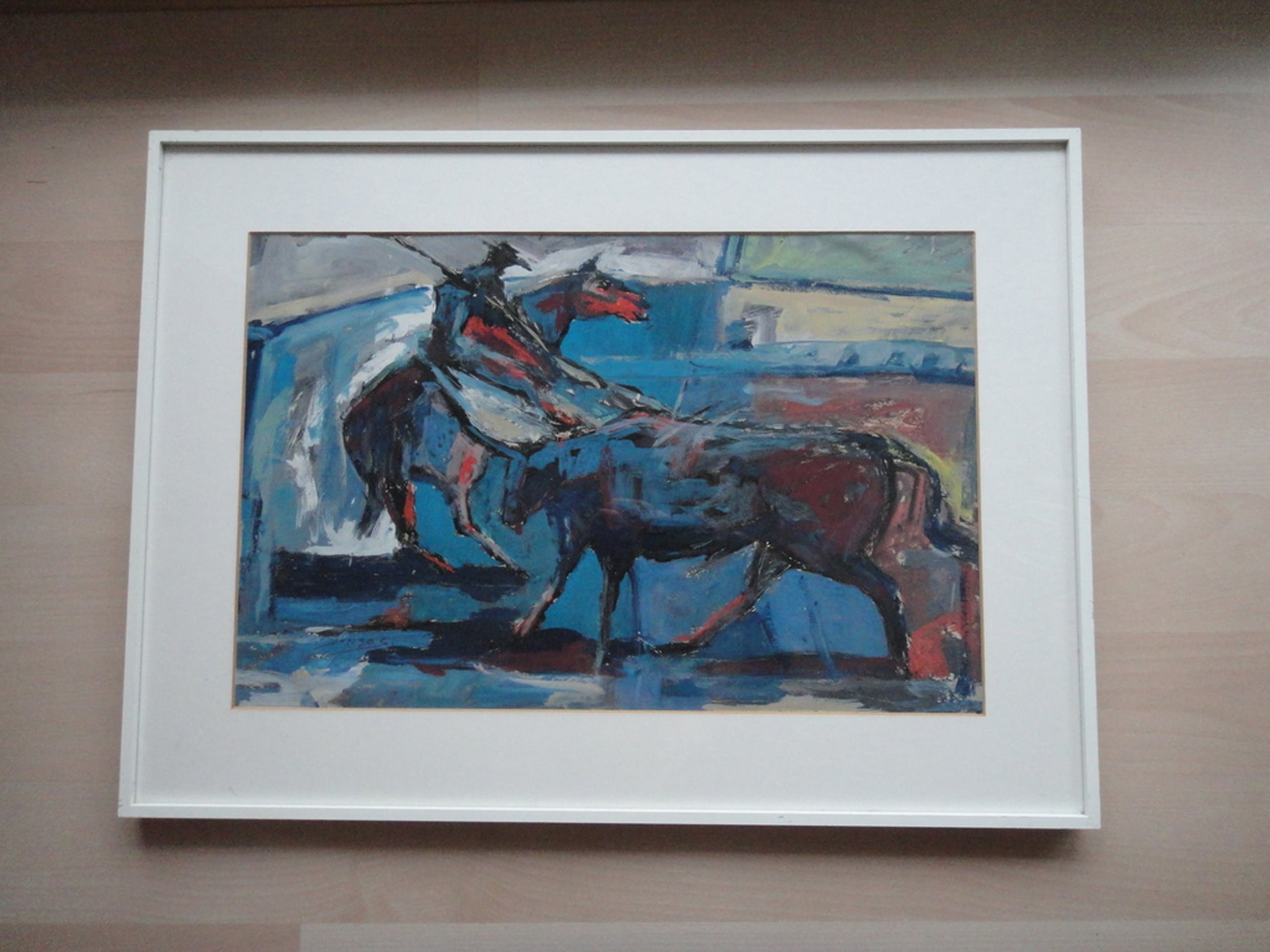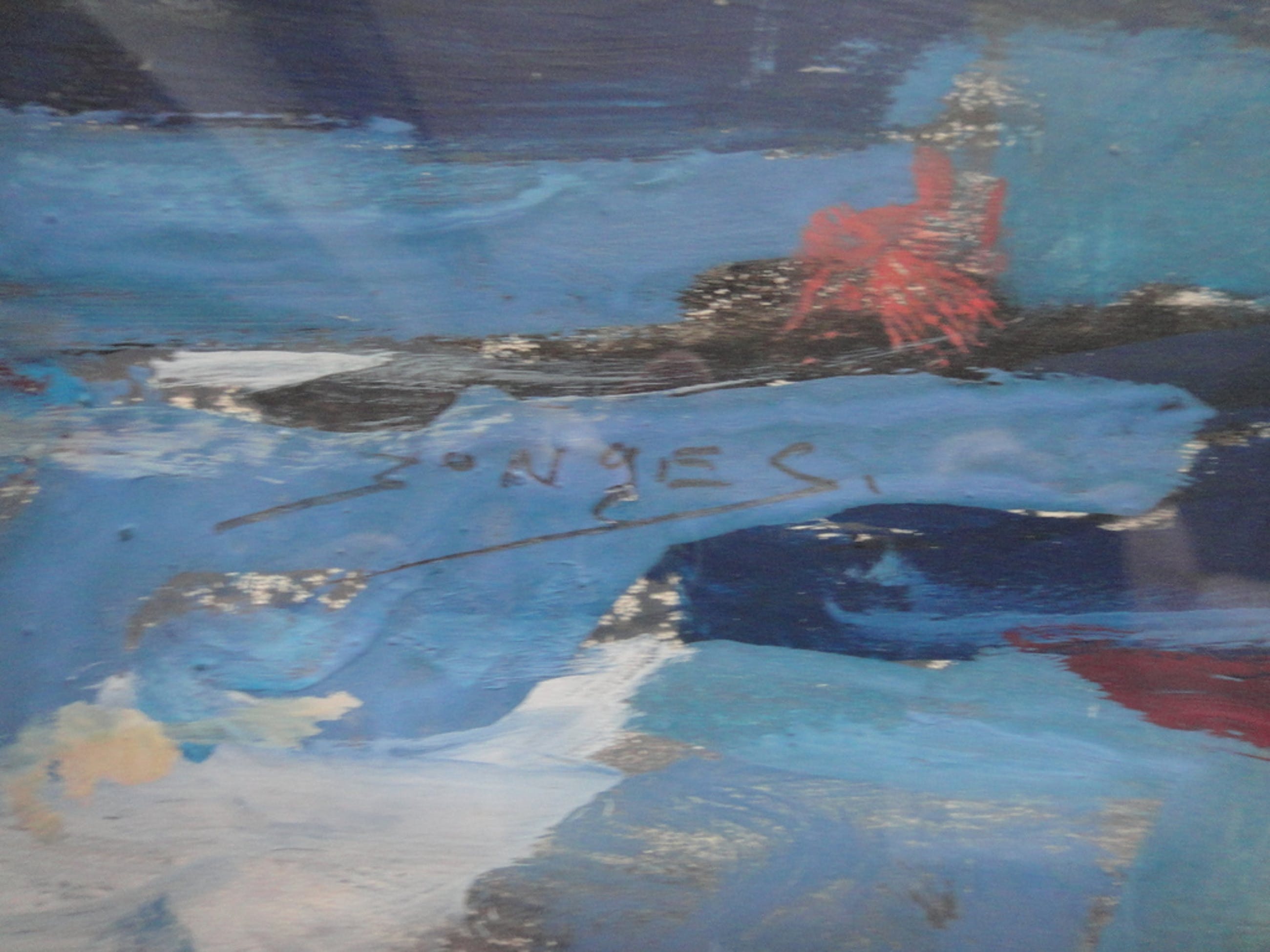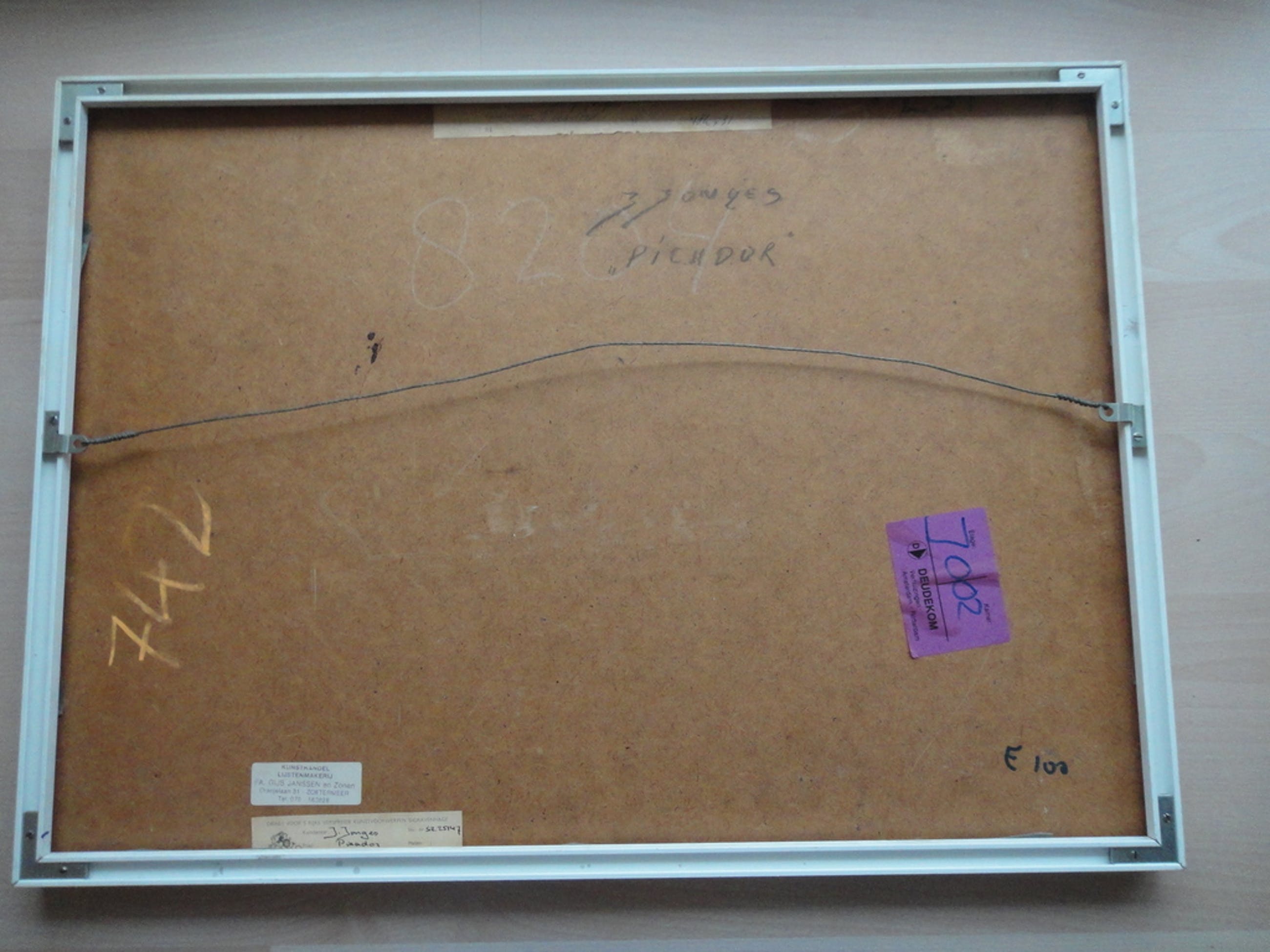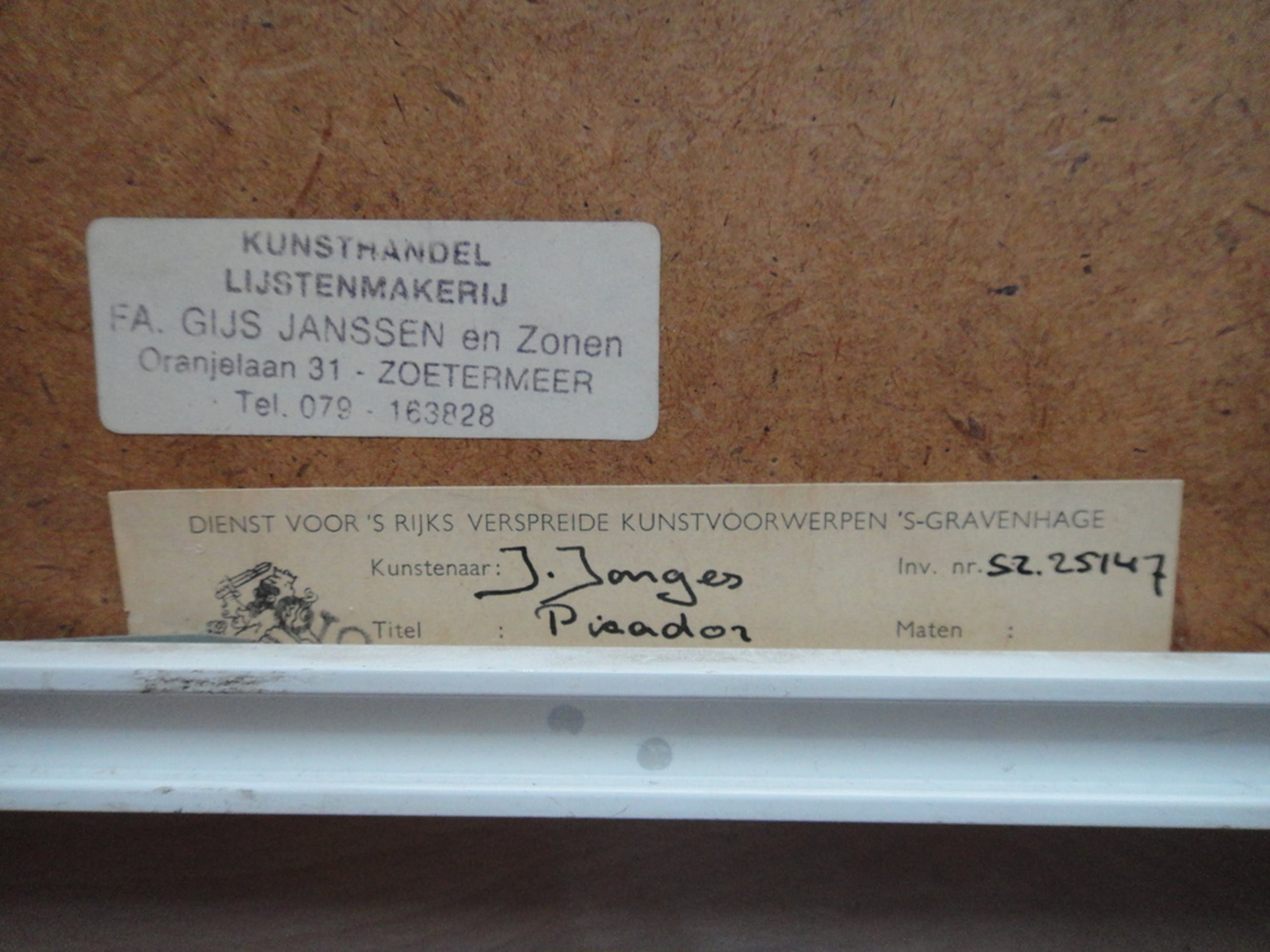 Dit werk van Jan Jonges (olieverf op papier) is afkomstig uit de collectie van het Rijk (zie de foto's). Zichtmaat: 51 bij 33 cm. Afmeting incl. moderne witte galerielijst: 65, 5 bij 49. Signatuur: l.o. (zie foto).