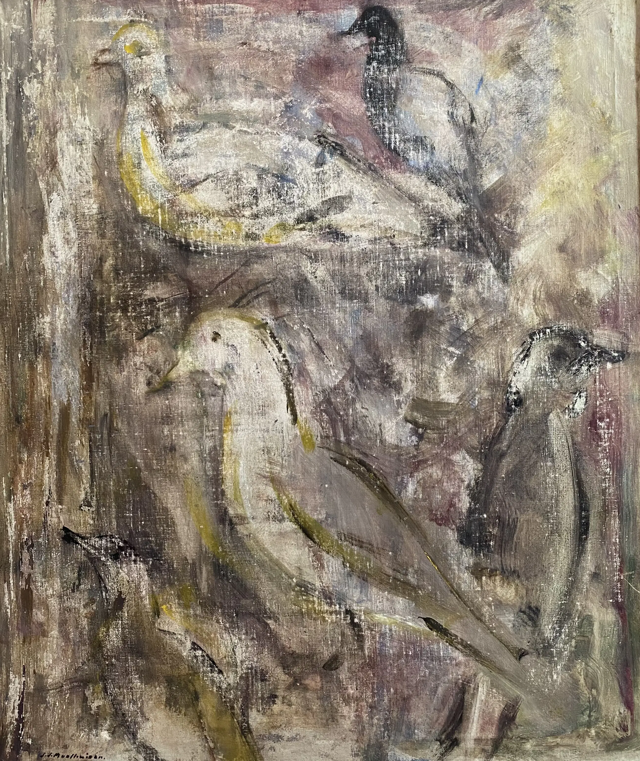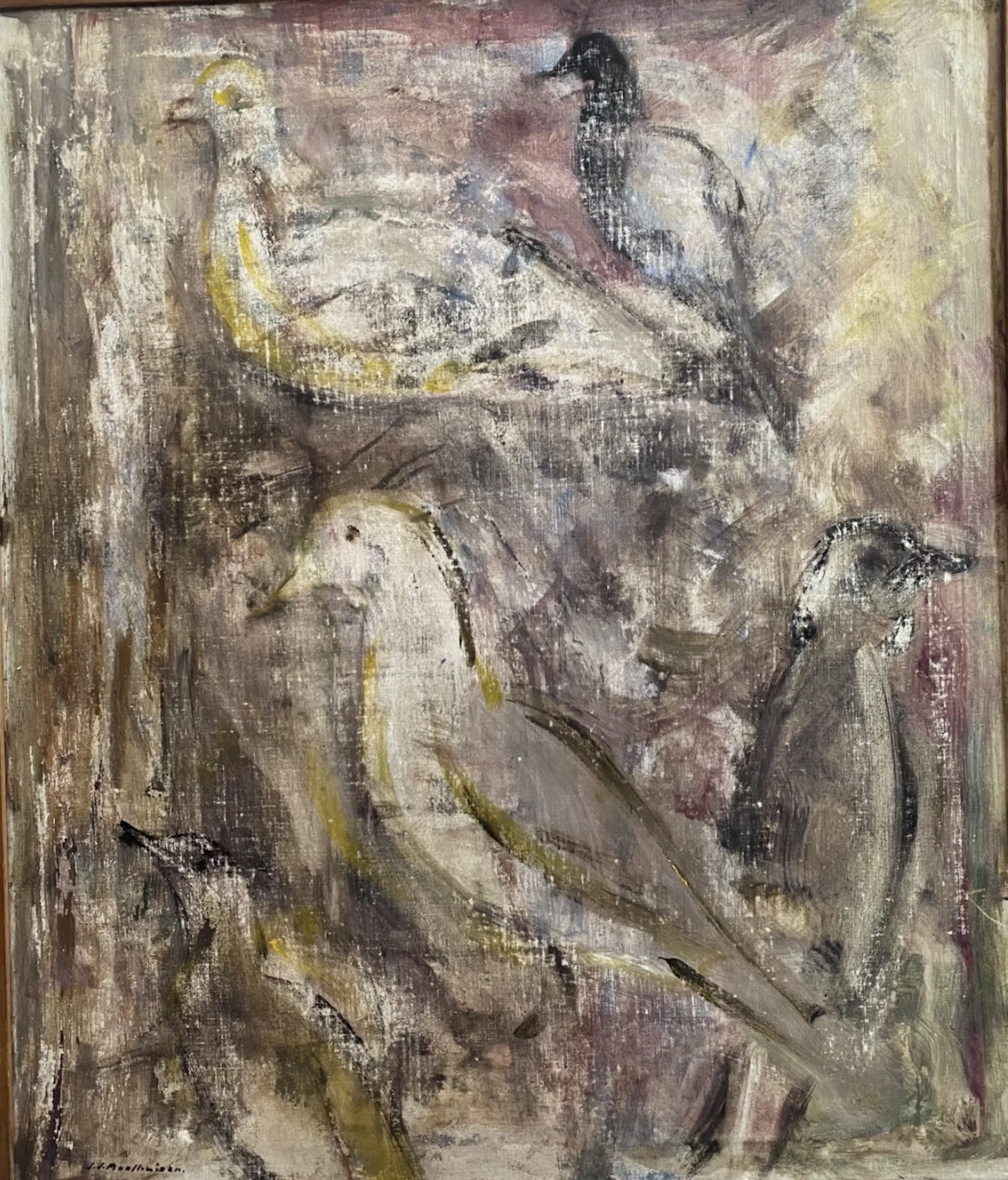 Mooie schilderij met vogels, duiven van de kunstenaar Jan Moolhuizen.