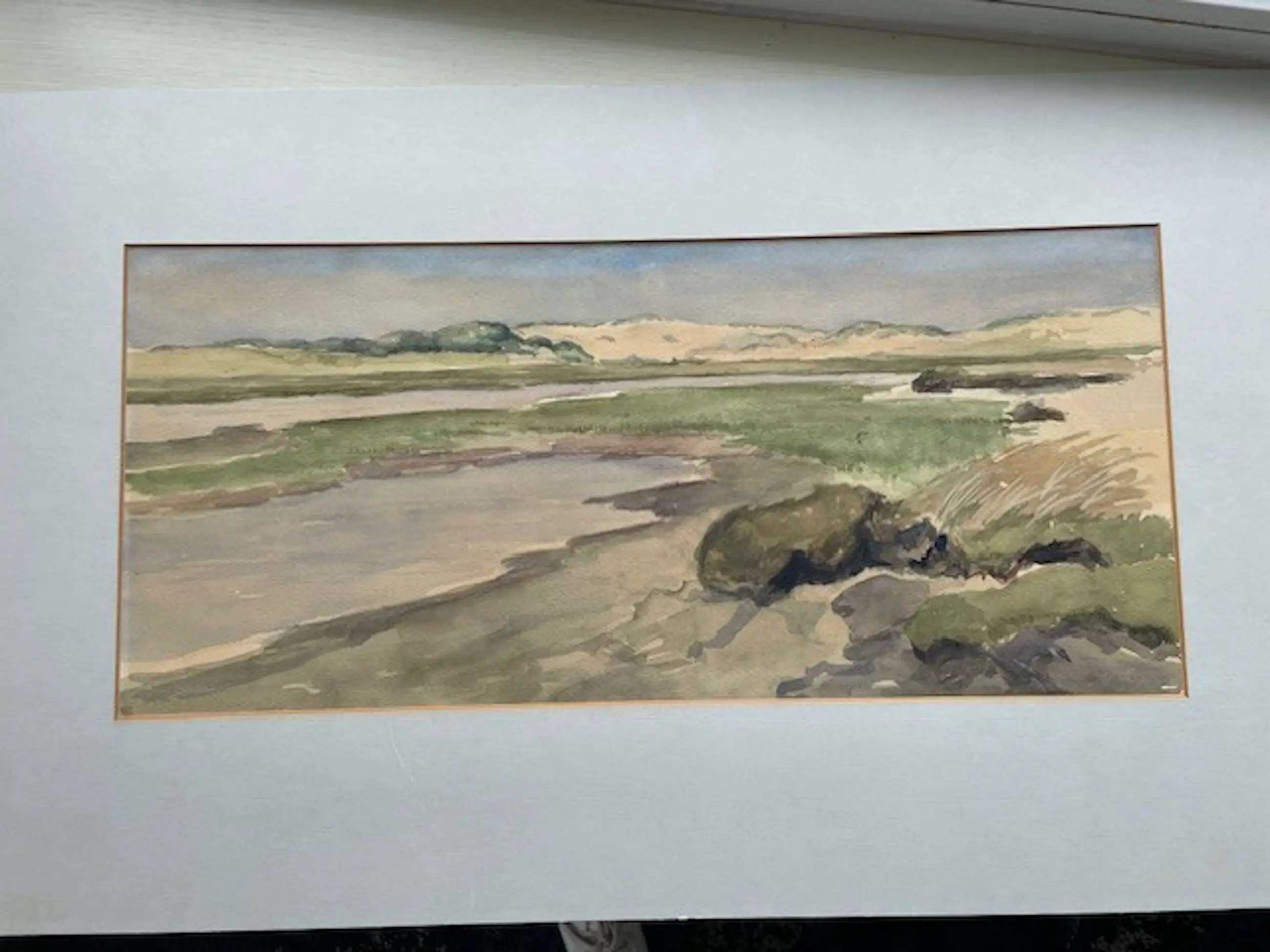 Aquarel van de Slufter. Het werk is zonder lijst, maar met passe partout. De passe partout mag vervangen worden.
