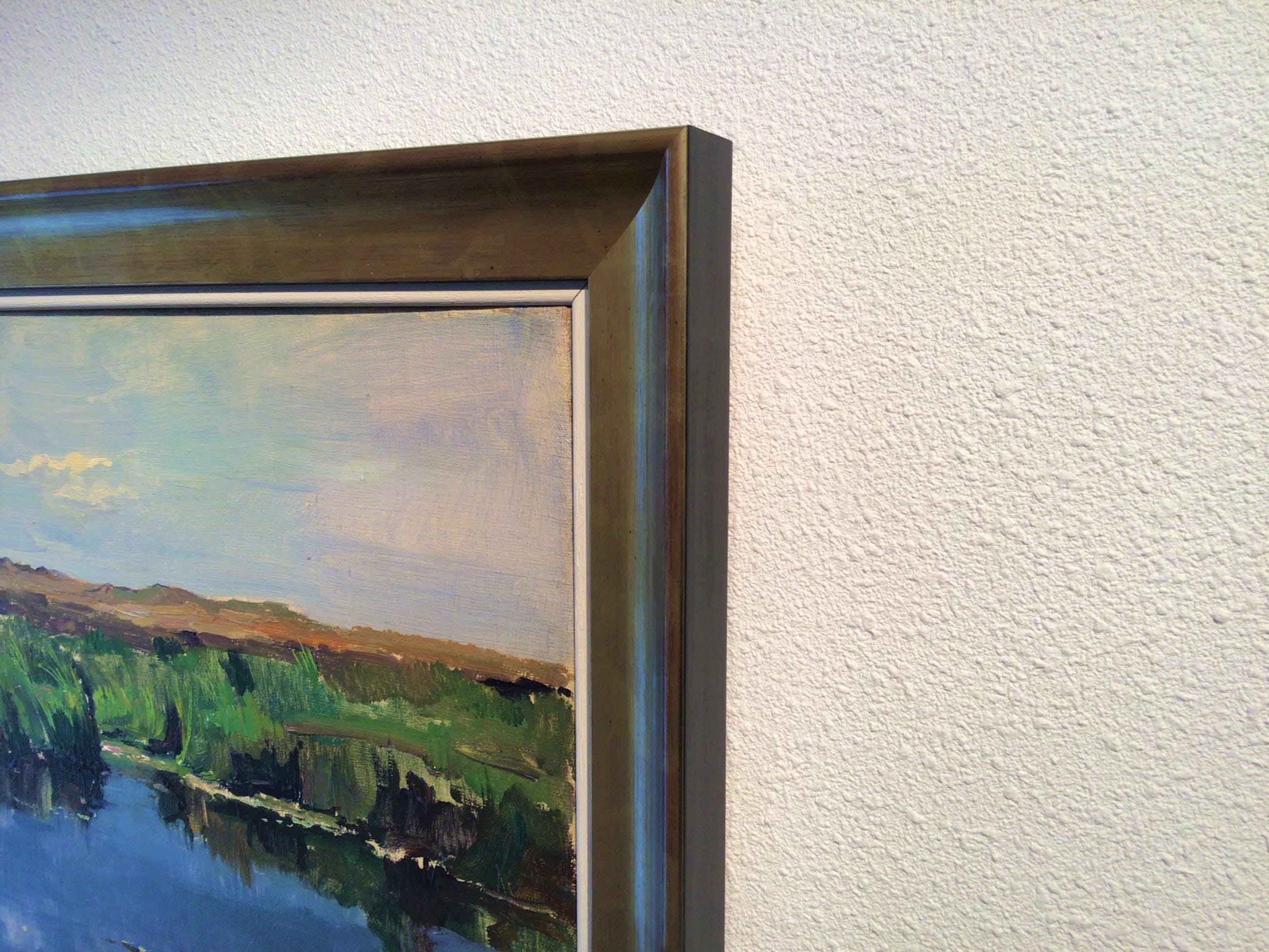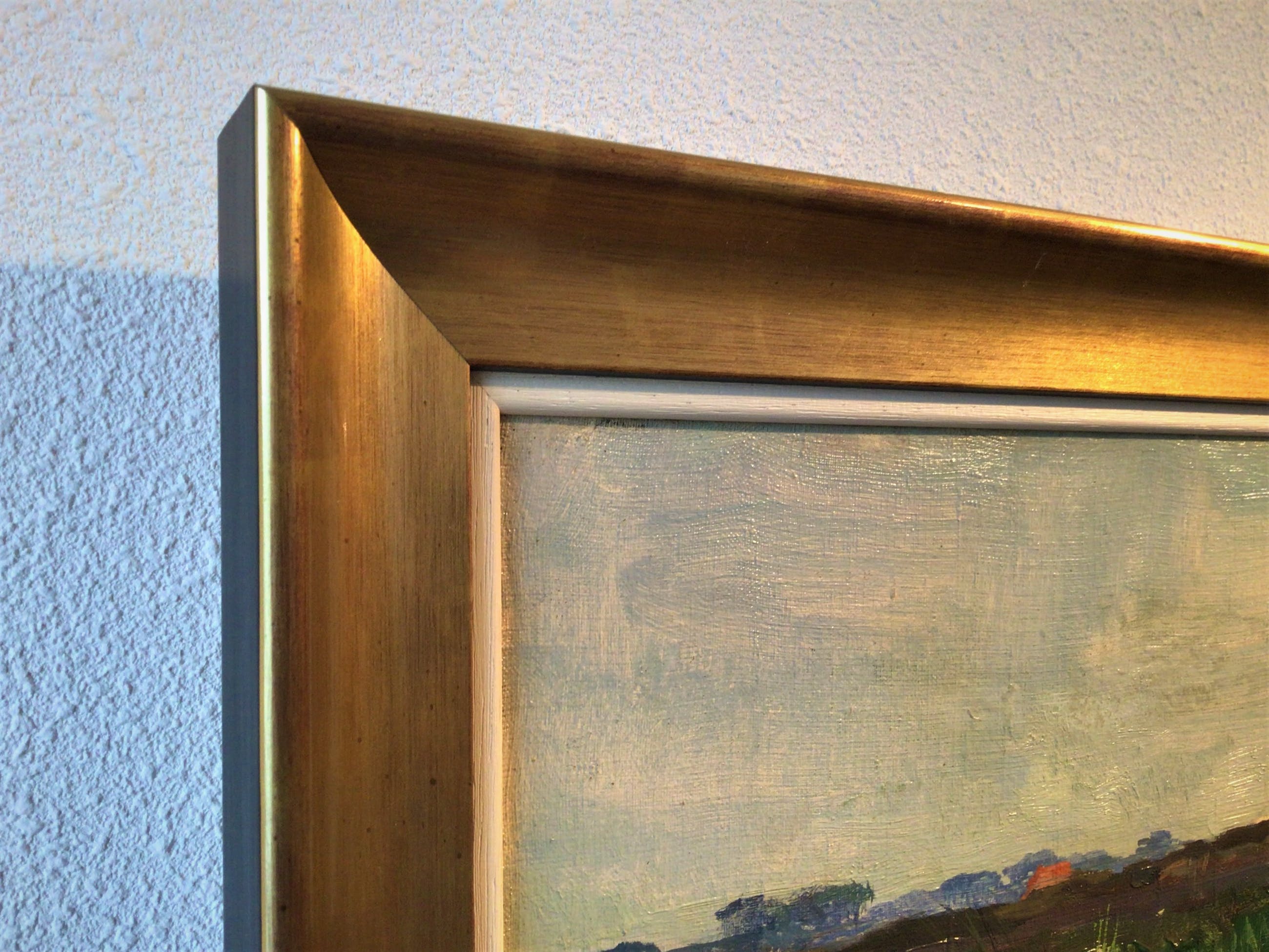 Geheel professioneel schoongemaakt en nieuwe vernislaag (2021).Nieuwe Italiaanse houten lijst, goud en zwart (2021).