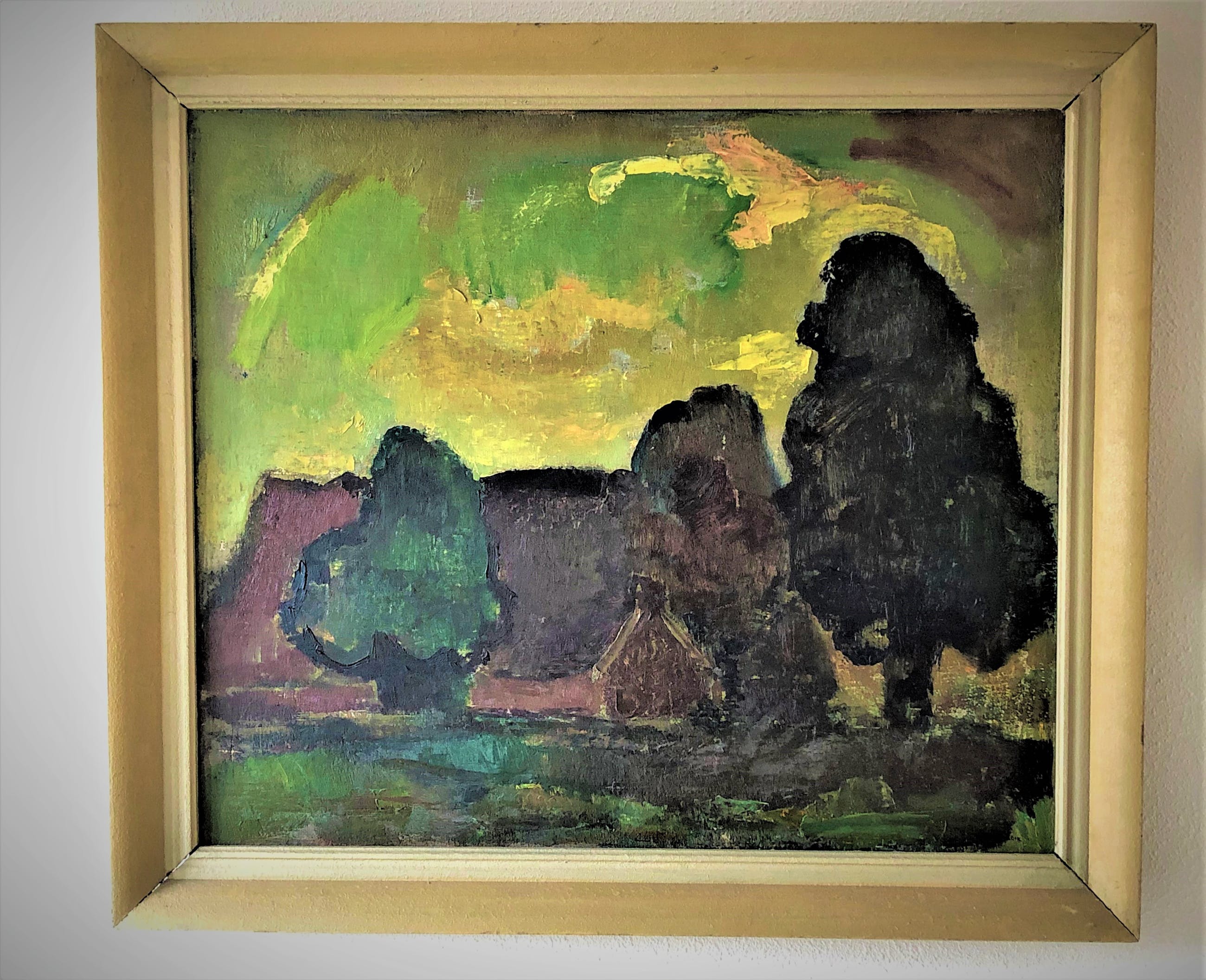 Conditie schilderij is goed, kwaliteit van de lijst redelijk. Gezien de jaren (ca. 1940)