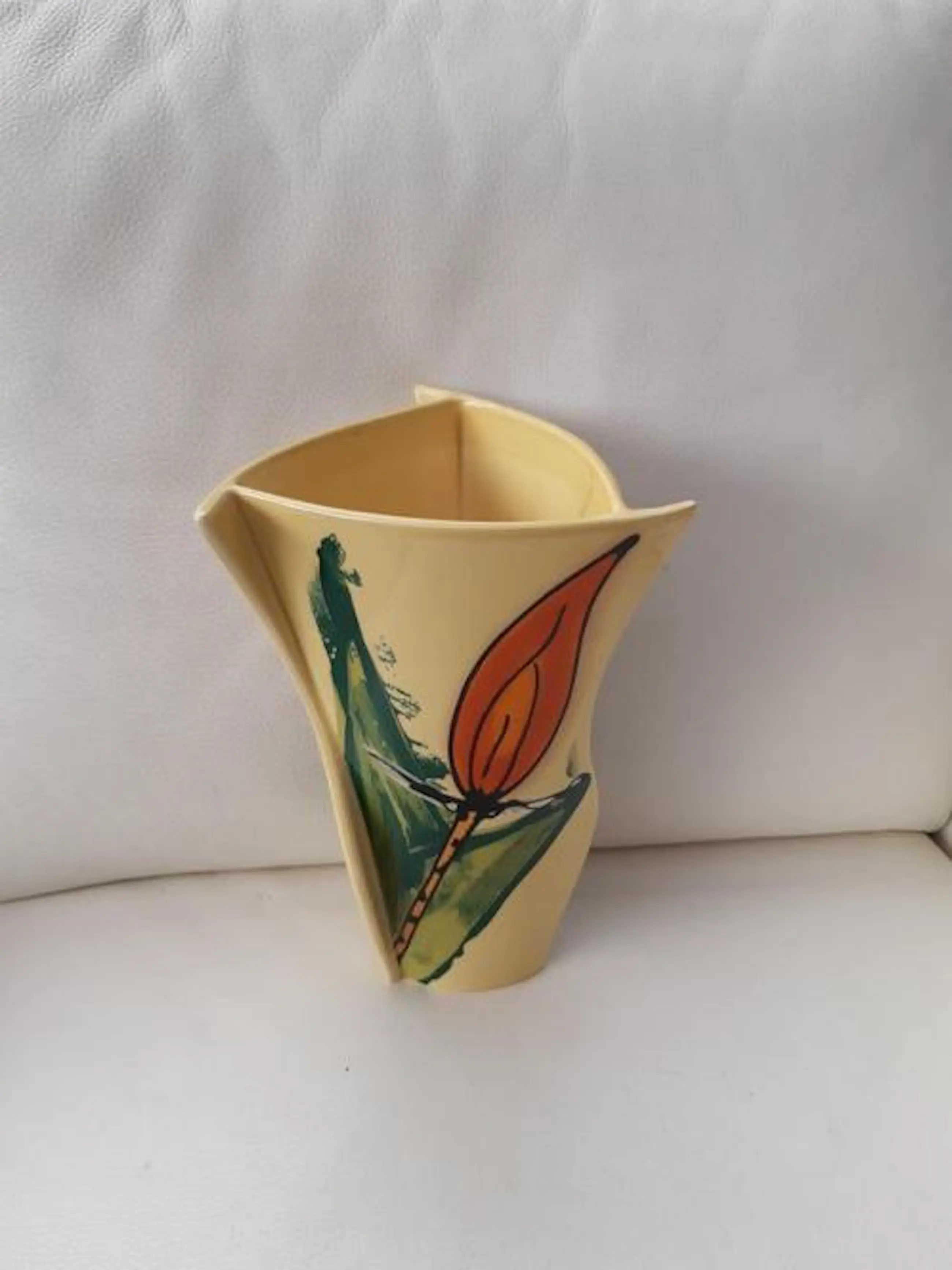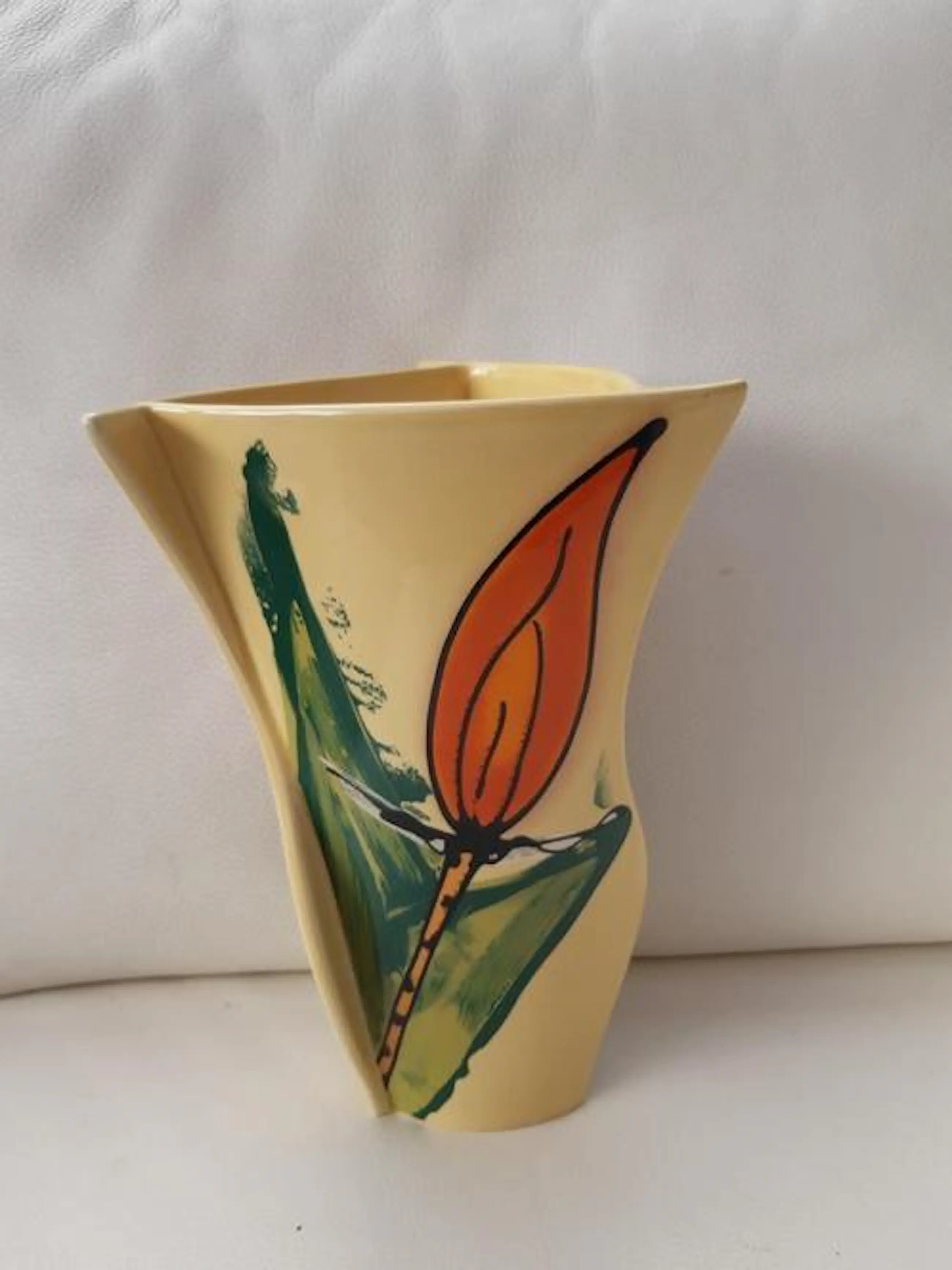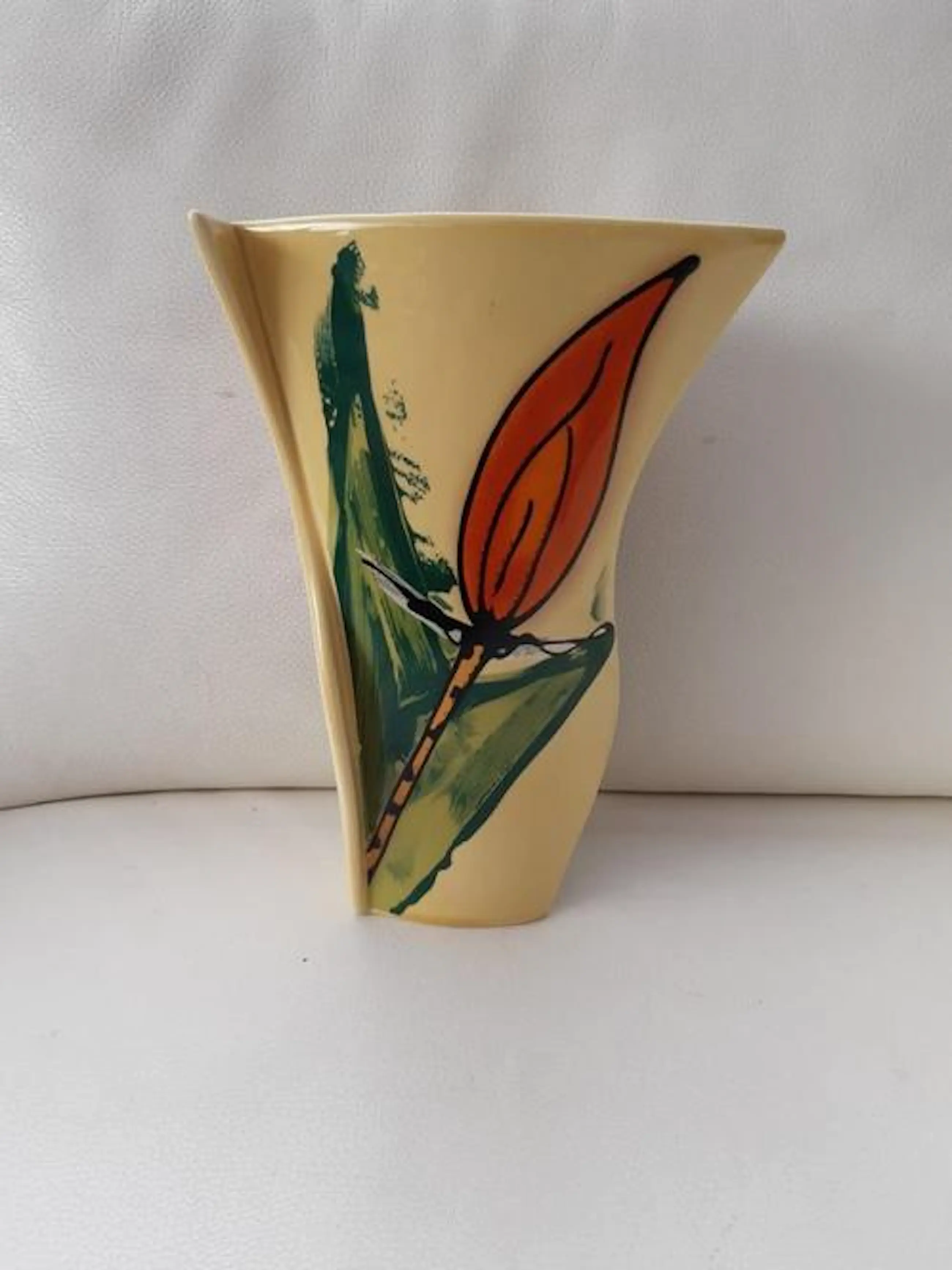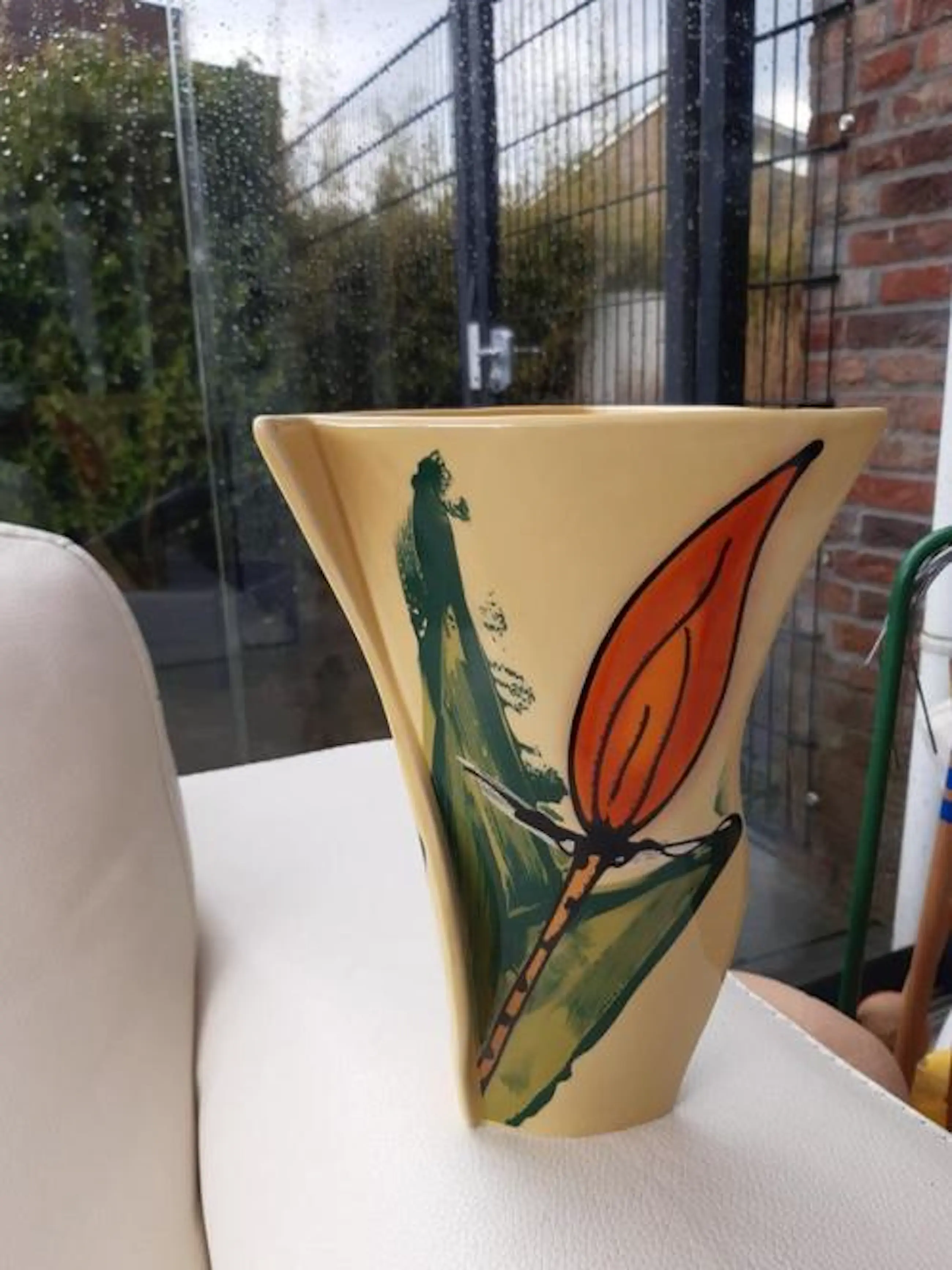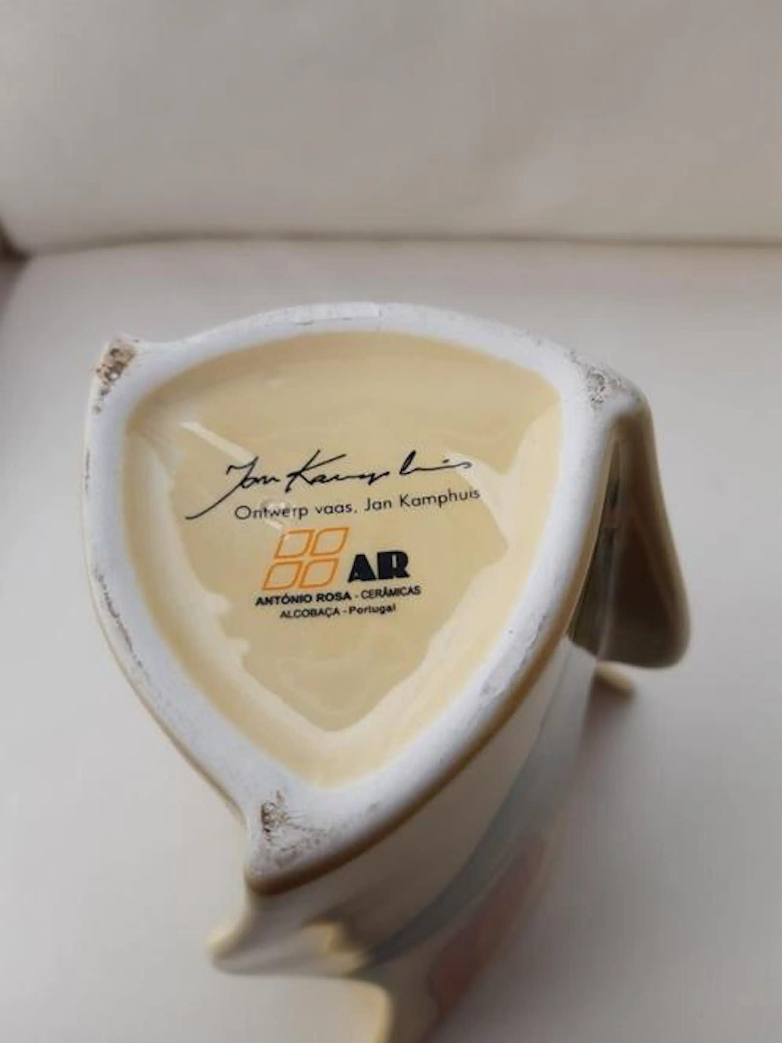 Mooie vaas van Jan Kamphuis (Deventer 1955). De vaas is een ontwerp van Jan Kamphuis en uitgevoerd door AR Ceramics (Antonio Rosa). Afmetingen : 27 cm hoog en van hoek naar hoek 18 breed