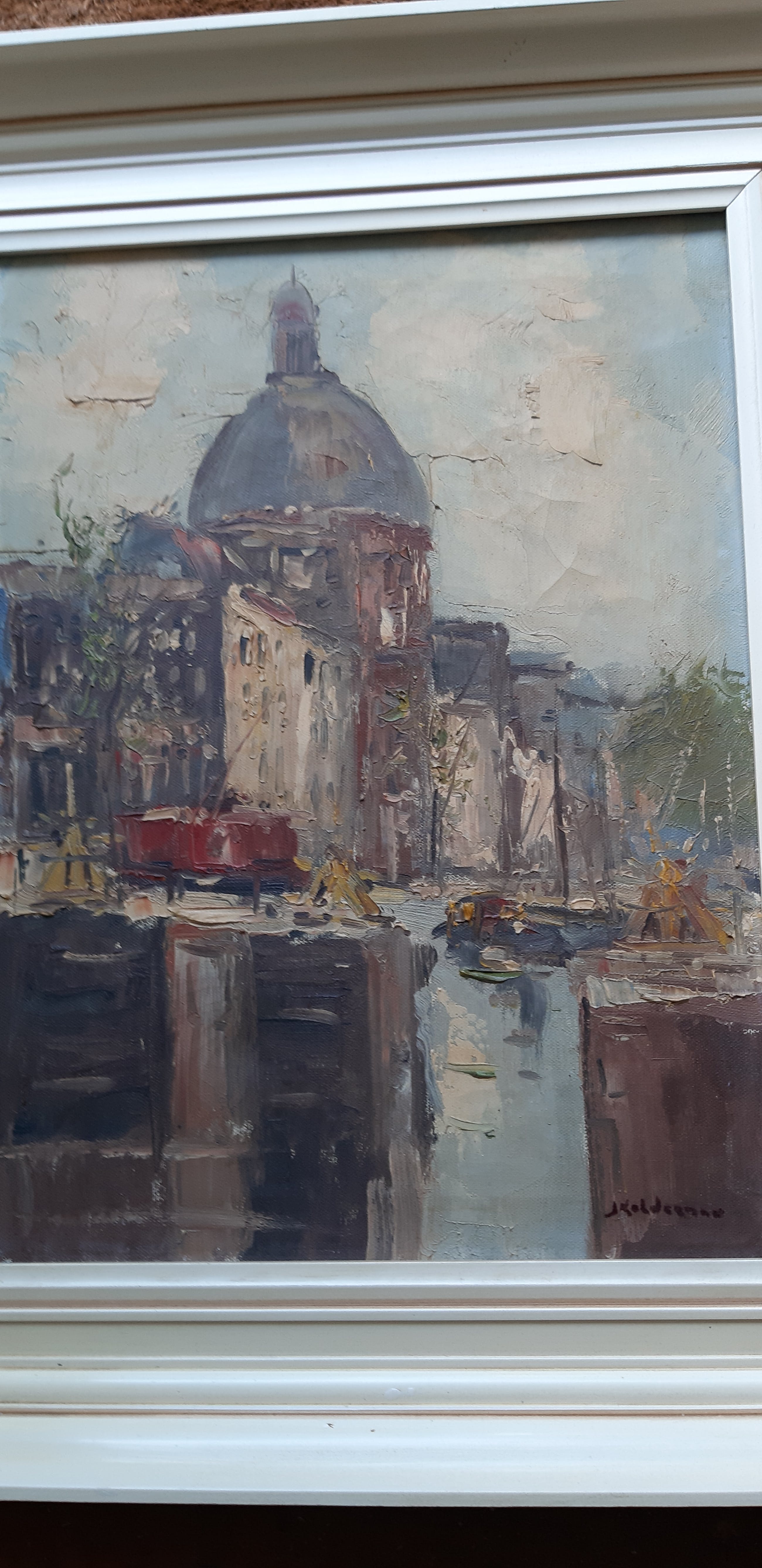 Schilderij uit de jaren 50 met prachtige lijst Het werk is royaal opgezet met paletmes en schilderskwast in goede staat Olie verf op linnen Doekmaat 40 x 30 cm Jan Kelderman 1914-1990 Op zijn geheel eigen impressionistische wijze geschilderd Ophalen in Ede of i o Hoorn kan ook Veel plezier met bieden