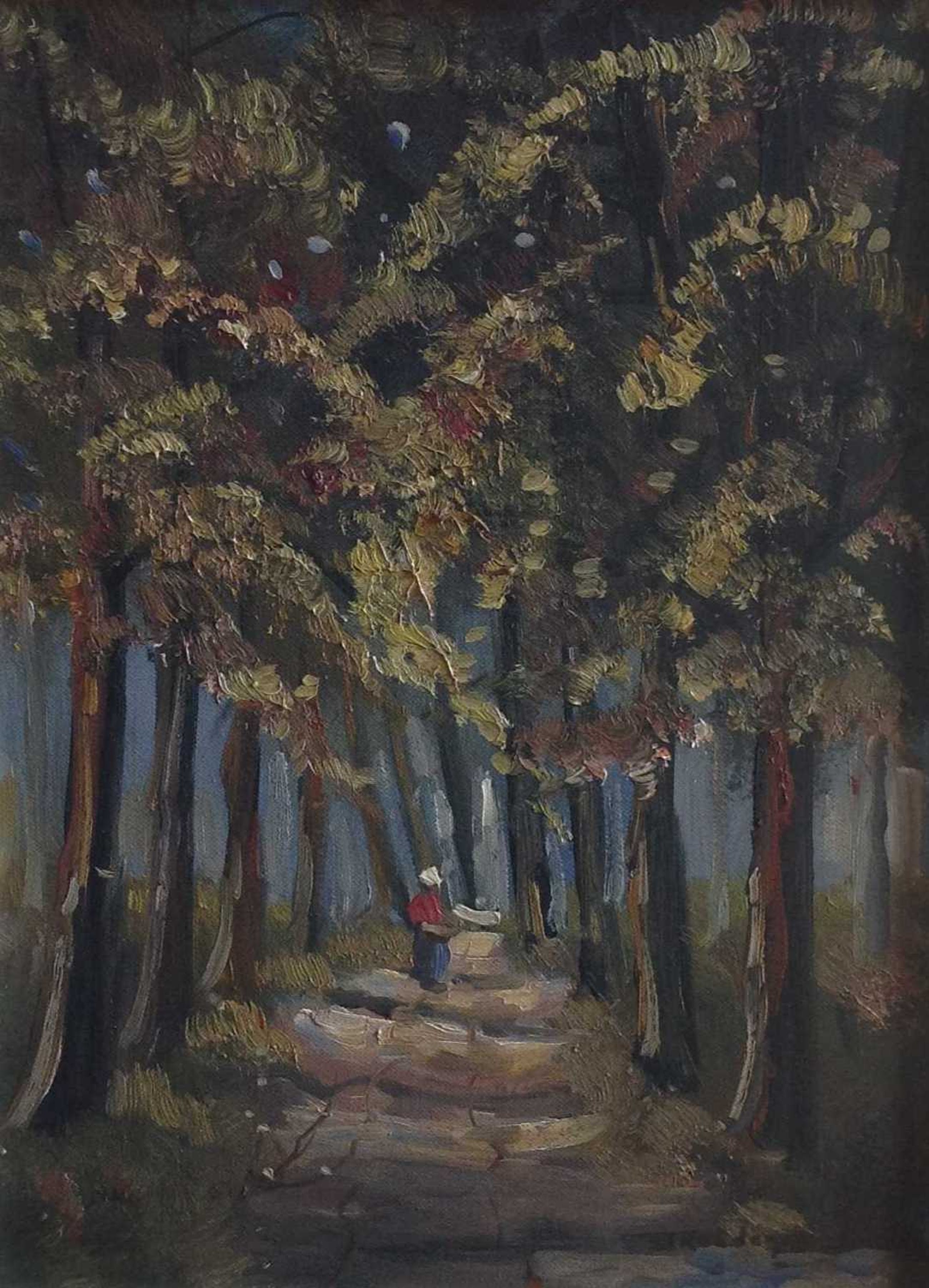 Jan Kelderman, bosgezicht, olie op doek, r.o. gesigneerd, doekmaat 30x40, lijstmaat 40x50.