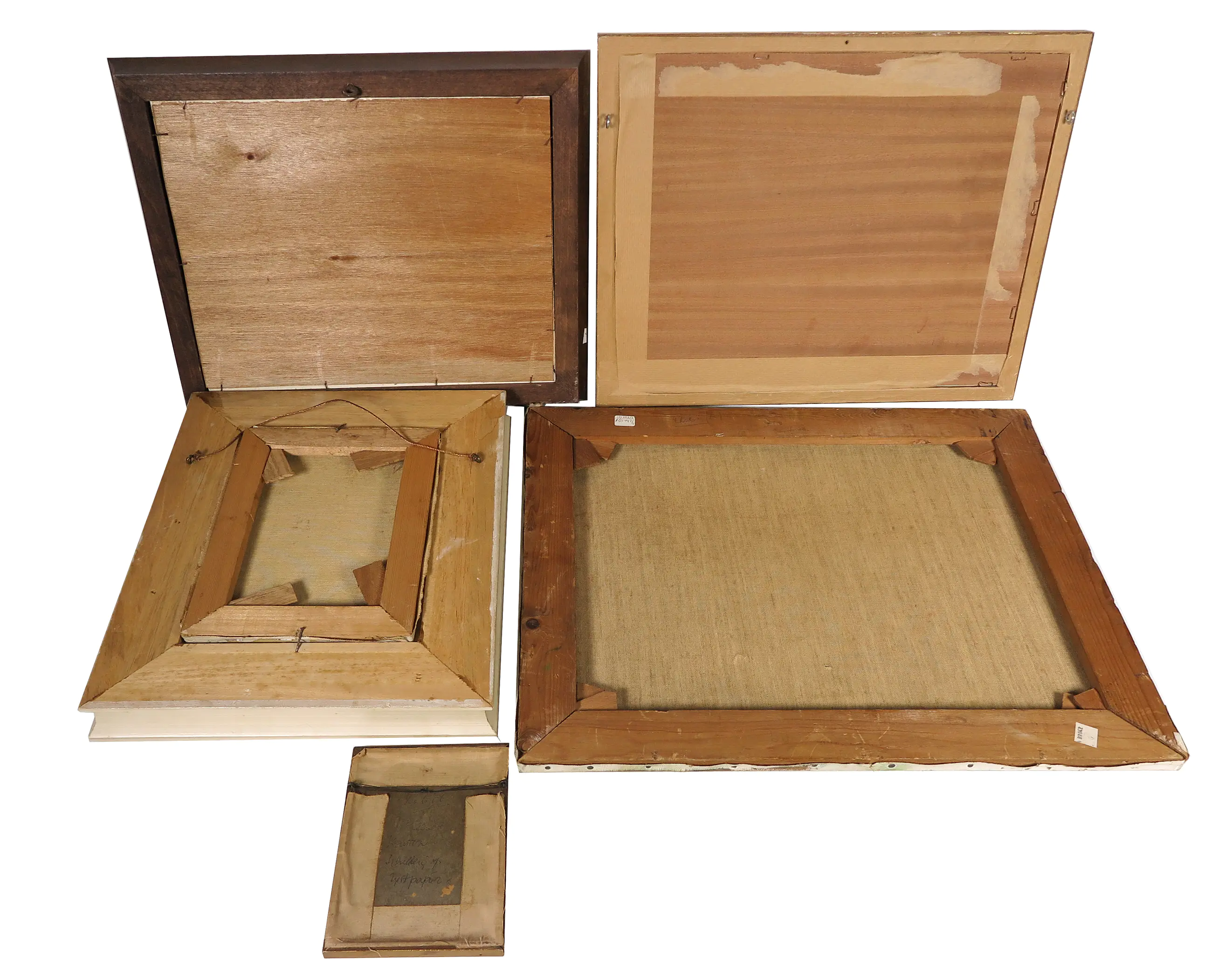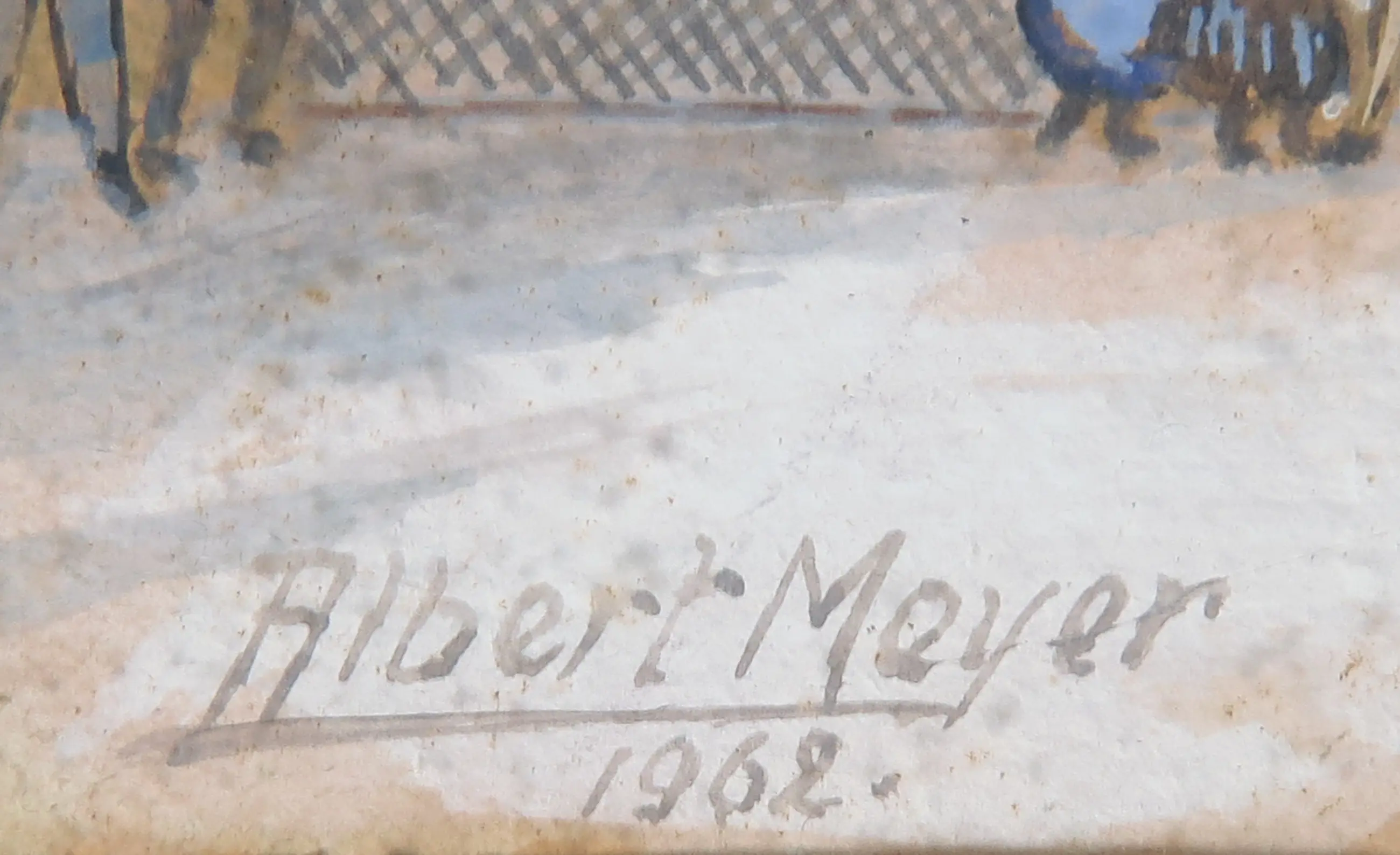 | De werken in dit lot verschillen van conditie. Over het algemeen wat vuil of beschadiging aan de lijsten. Het niet-ingelijste werk heeft een beschadiging (zie foto). Het stadsgezicht achter glas heeft sterke foxing en vergeling in het passe-partout en roestvlekjes op het glas. Het landschap achter glas heeft een vlek in de voorstelling. De lijst van het kleinste werkje is ontwricht en het papier is aan de rand beschadigd. | |