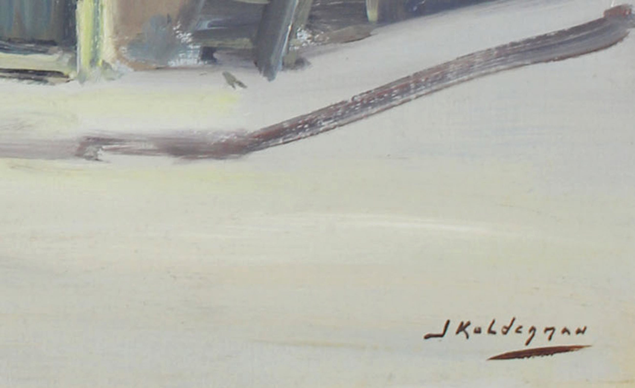 schilderij, olieverf op doek, van Jan Kelderman (Edam 1914 - Amsterdam 1990) - ca. 1960 gesigneerd rechtsonder, met originele lijst afmetingen: doekmaat 50 x 40 cm., met lijst 60 x 50 cm. conditie: in goede staat
