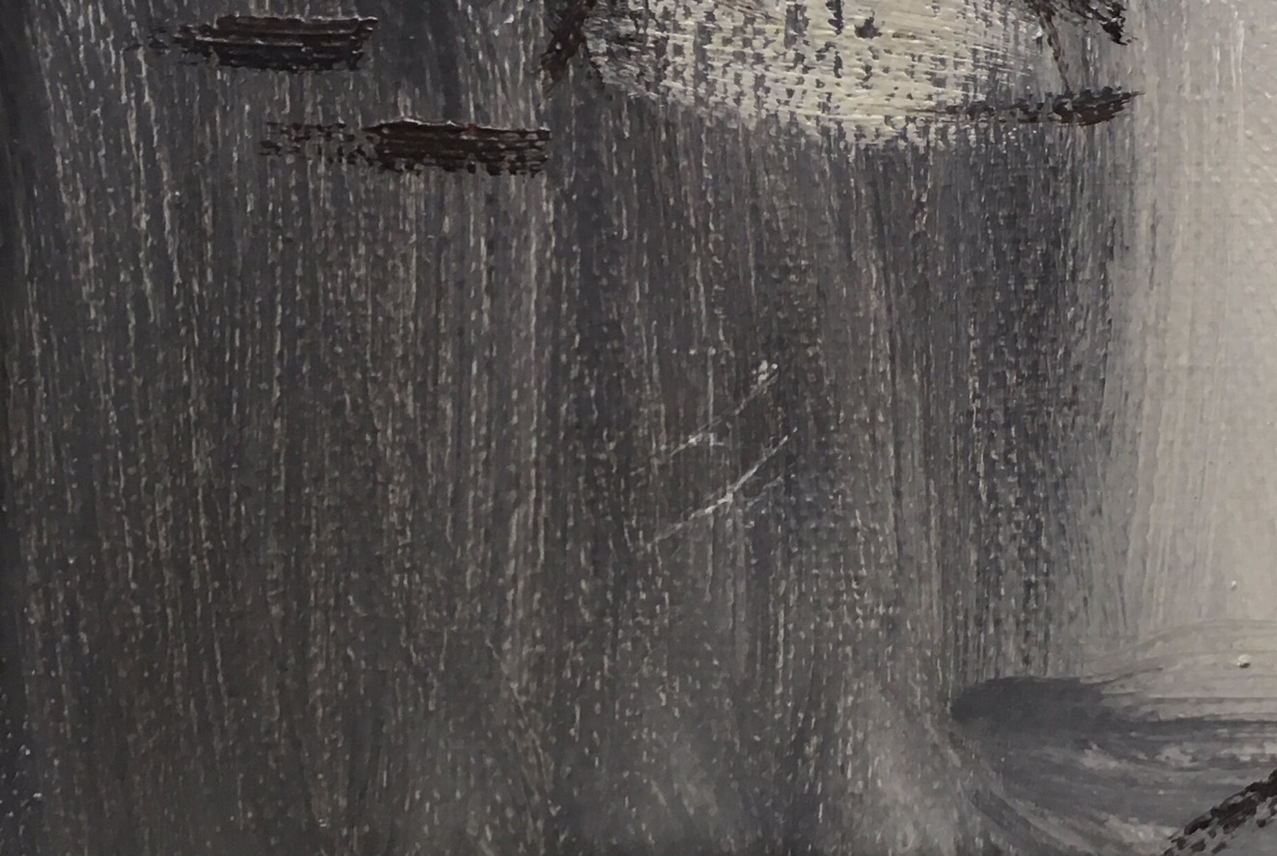 | Het doek heeft op een aantal plekken wat lichte craquelévorming (geen verfverlies). In de hoek linksonder zit een klein, licht deukje in het canvas. | |