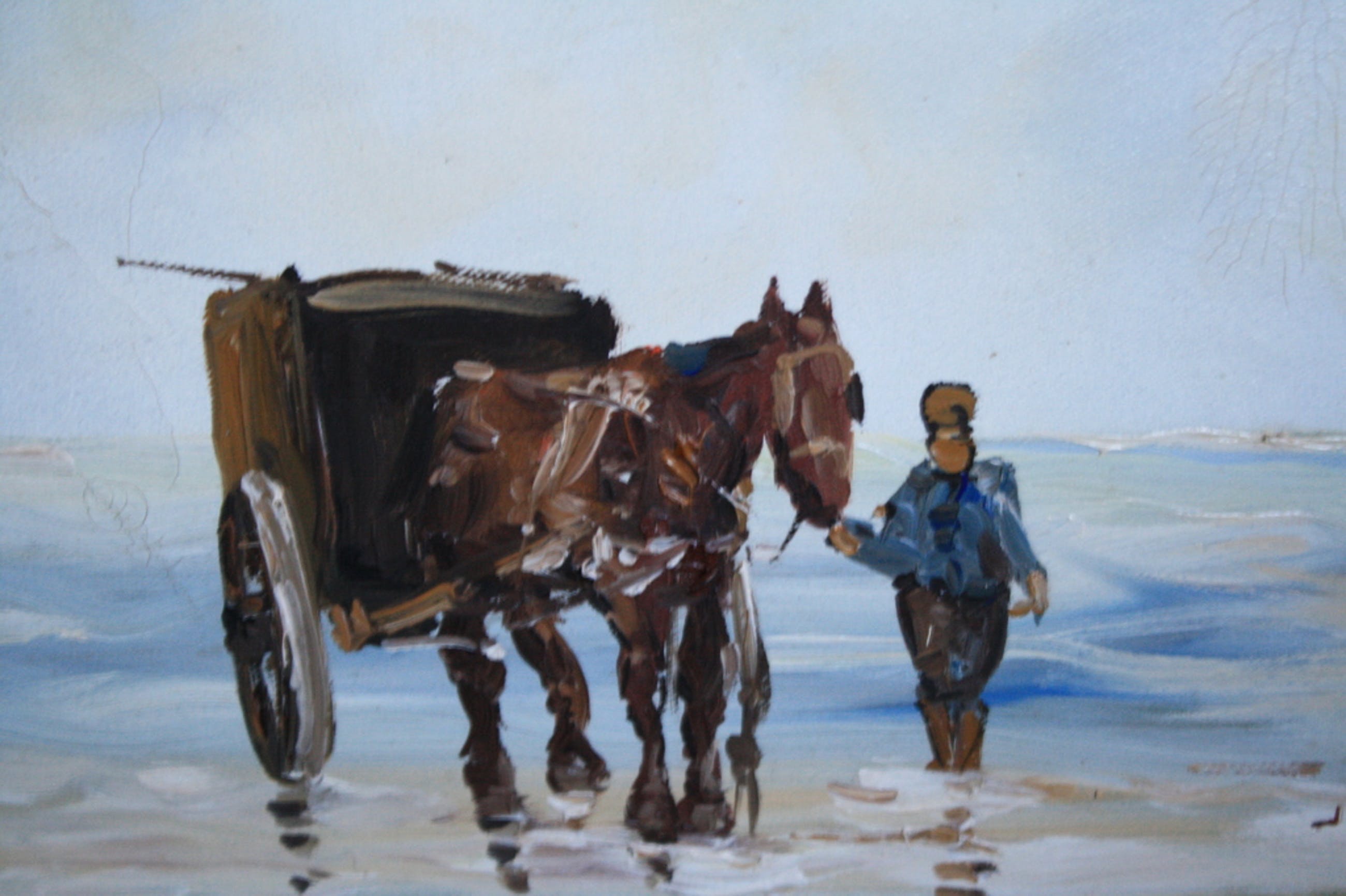 SCHELPENVISSER MET PAARD OP STRAND