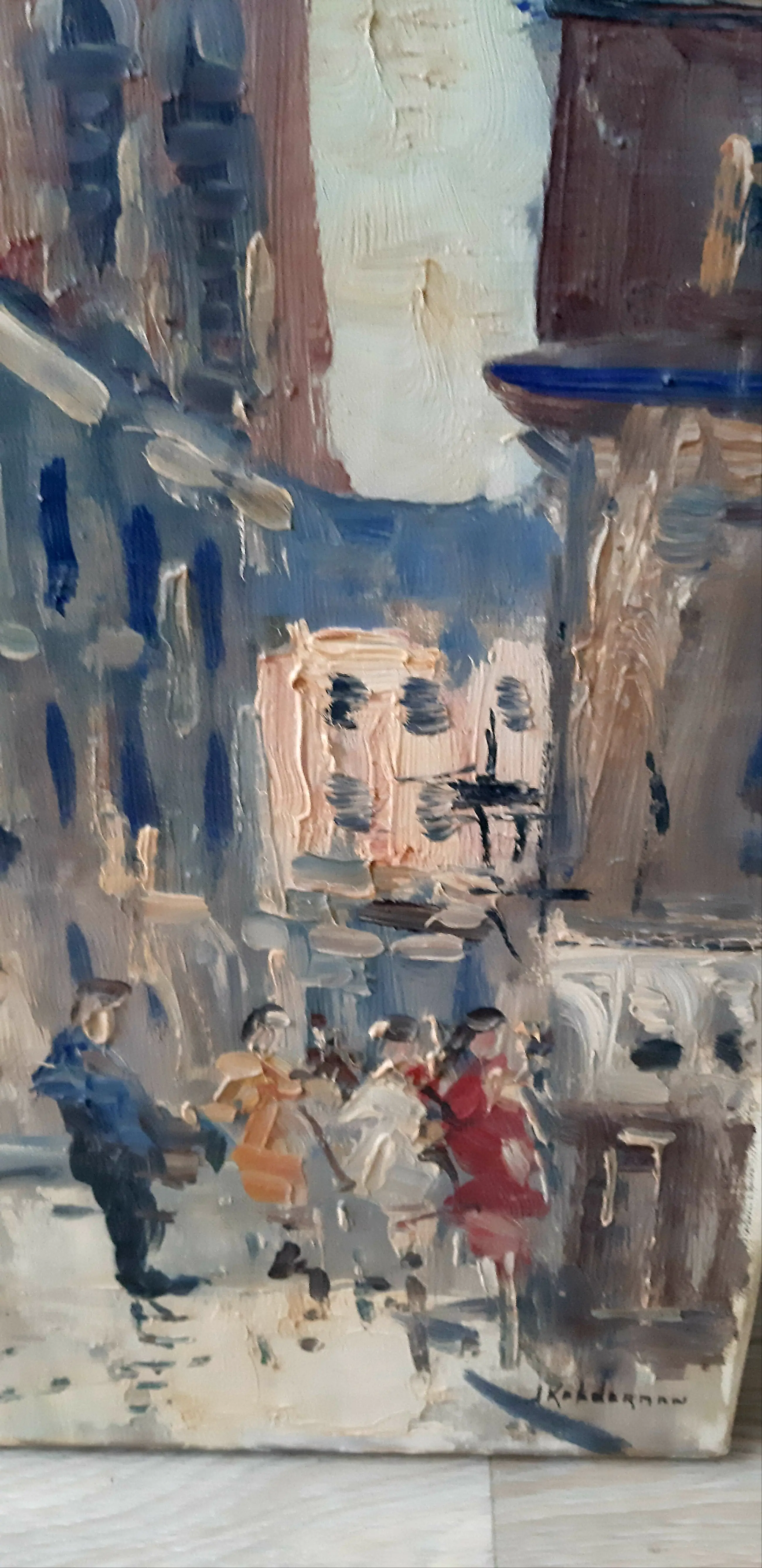 Een prachtig werk van Jan Kelderman geboren in Edam en overleden in Amsterdam Was handelaar en kunstschilder en staat vermeld in de scheen de bijbel voor de kunstenaars Hij heeft stillevens en zee gezichten geschilderd en vele stadsgezichten op zijn geheel eigen impressionistische wijze Hij had een voorliefde voor Frankrijk waar dit werk een mooi voorbeeld van is Royaal opgezet met een rake en vlotte toets zo kenmerkend voor deze schilder zie de foto's bij dit kavel en overtuig u zelf Het werk wordt goed verpakt bij verzending met track en tracé Veel plezier met bieden