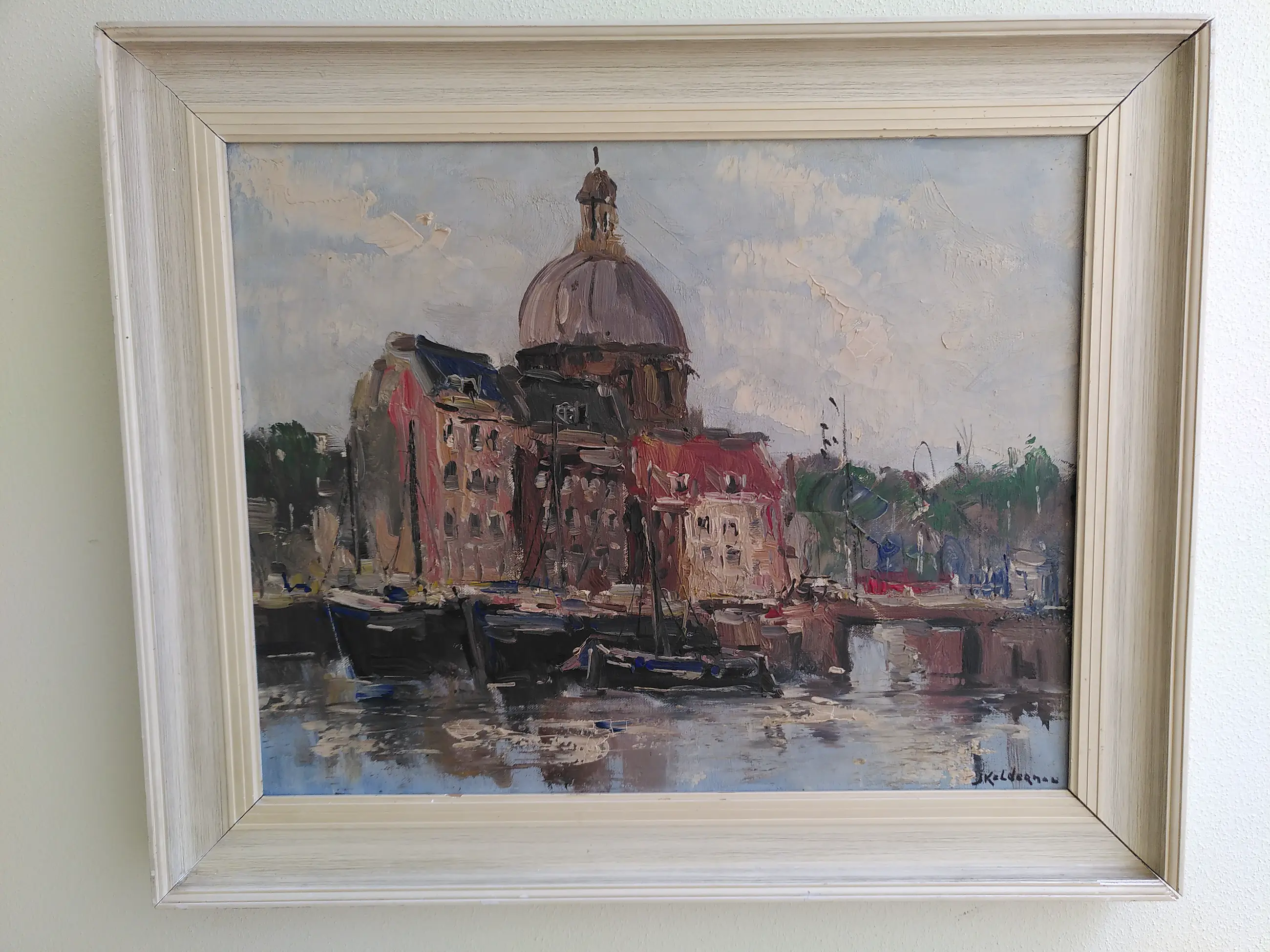 Impressionistisch olieverfschilderij van Jan Kelderman. Zicht op Amsterdam.