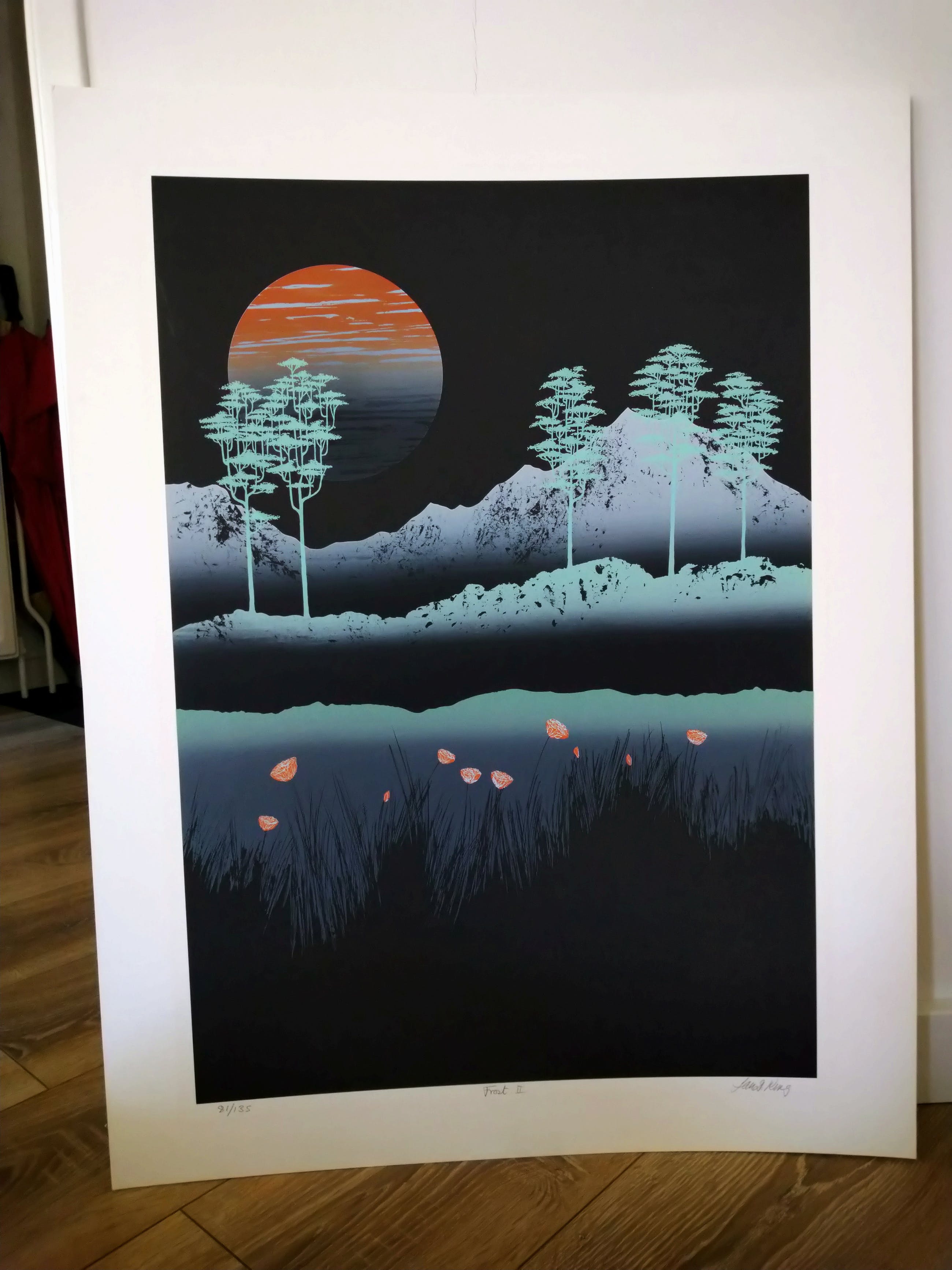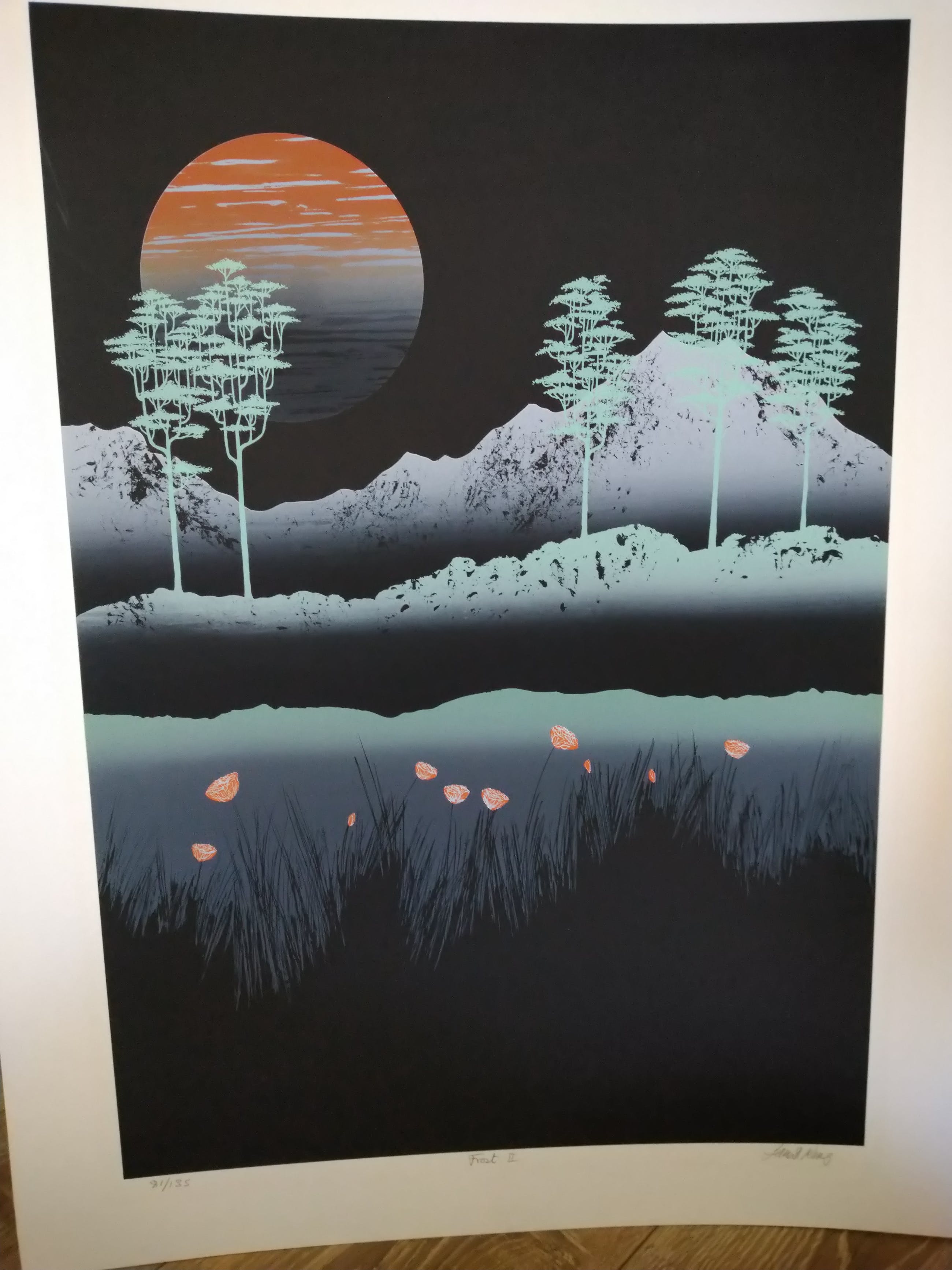 Mooie kleuren, lichte verkleuring waar passe-partout heeft gezeten