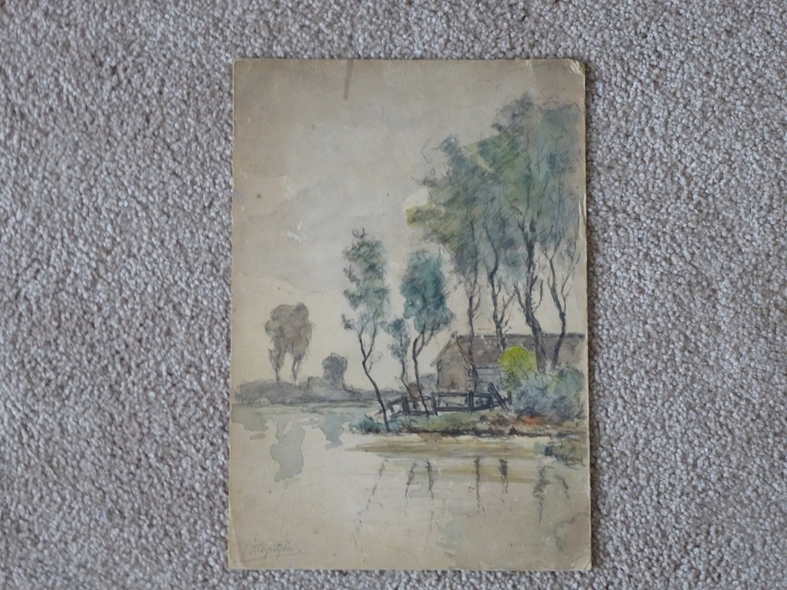 Opmerking: Op de achterzijde van deze tekening staat een uitnodiging voor een tentoonstelling van aquarellen en schilderijen in Pension Minerva te Haarlem.