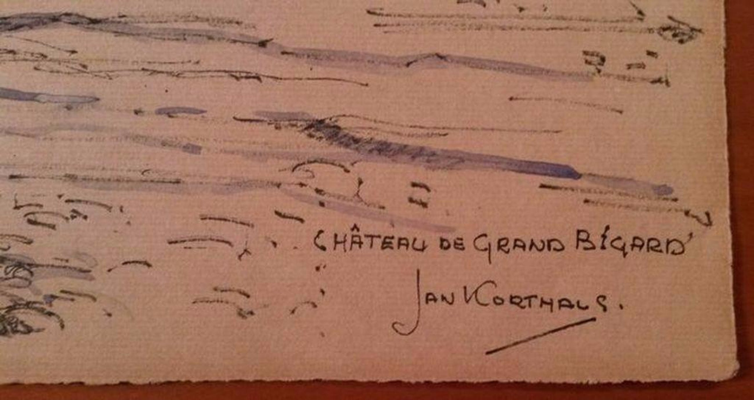 Mooie gemengde techniek op papier van het Château de Grand-Bigard aan de rand van Brussel.