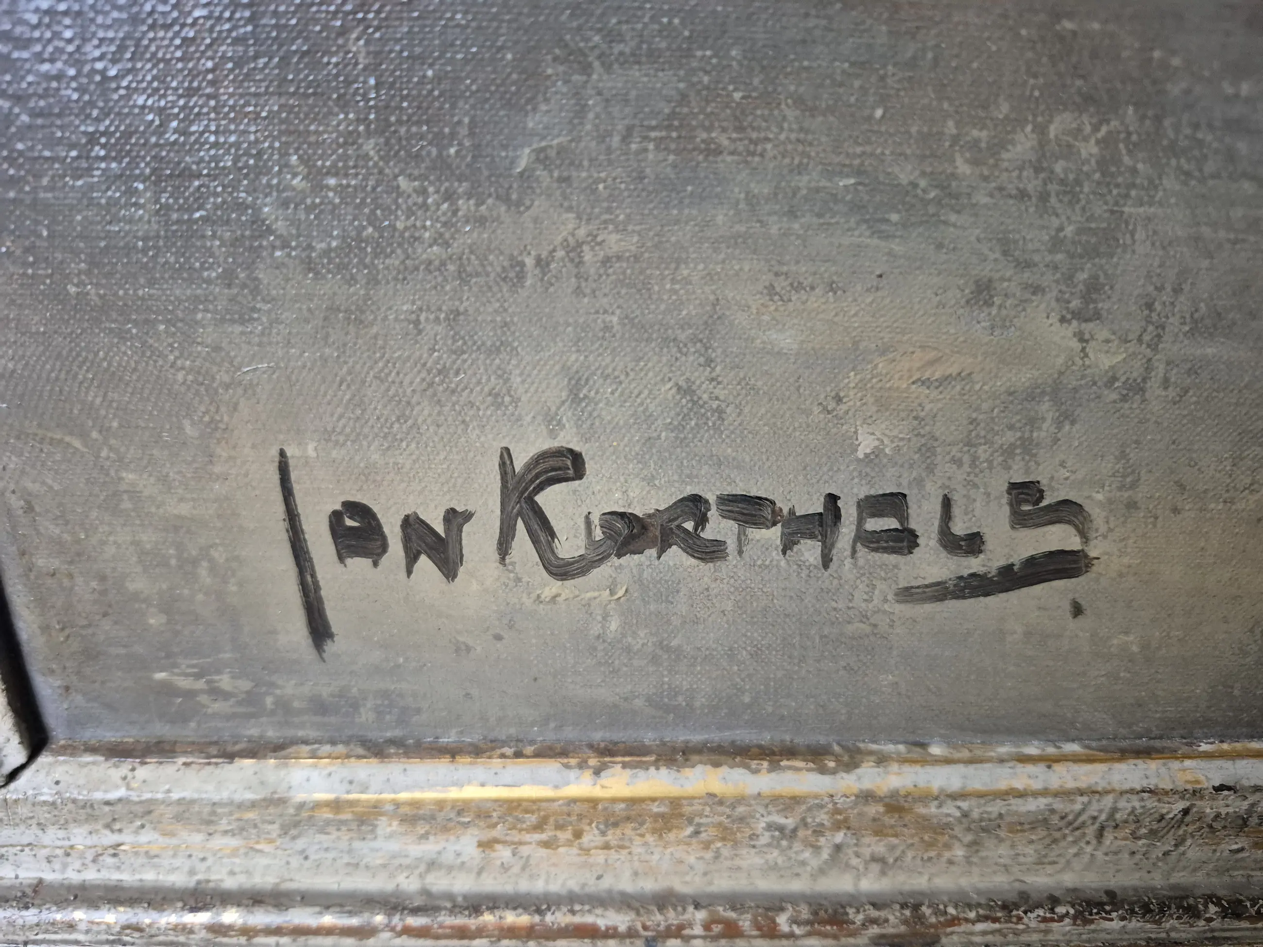 Jan Korthals, geboren op 1 mei 1916 te Amsterdam, groeide op in een gezin van 5 kinderen. Het kunstenaarsschap zat er al vroeg in. Reeds op de kleuterschool trokken zijn tekeningen de aandacht. Maar zijn ouders zagen niets in dat kunstenaarsgedoe. Zekerheid van een vaste baan moest je hebben. Dus moest Jan na de 3-jarige HBS solliciteren. Een reclame-bureau nam Jan aan. Hier zou hij vast zijn artistieke vaardigheden kwijt kunnen. Helaas, het werk beperkte zich tot het ophangen van reclamelichtbakken aan gevels. Na een baan bij de Hollandsche Sociëteit van Levensverzekeringen werd hij klerk op het hoofdbureau van politie te Amsterdam. Tekenen en schilderen was en bleef toch zijn passie. 's Avonds, als hij geacht werd te studeren voor zijn boekhouddiploma, zat Jan in zijn schetsboek te tekenen. Ook werd in deze periode voorzichtig begonnen met olieverf. Zijn eerste schilderijtjes verkocht hij voor fl. 2,50 aan zijn zus Co. Van dit geld kon Jan weer nieuw teken- en schildermateriaal kopen. Reeds op 19-jarige leeftijd werd Jan, na ballotage, lid van de Amsterdamse kunstenaarsvereniging St. Lucas.