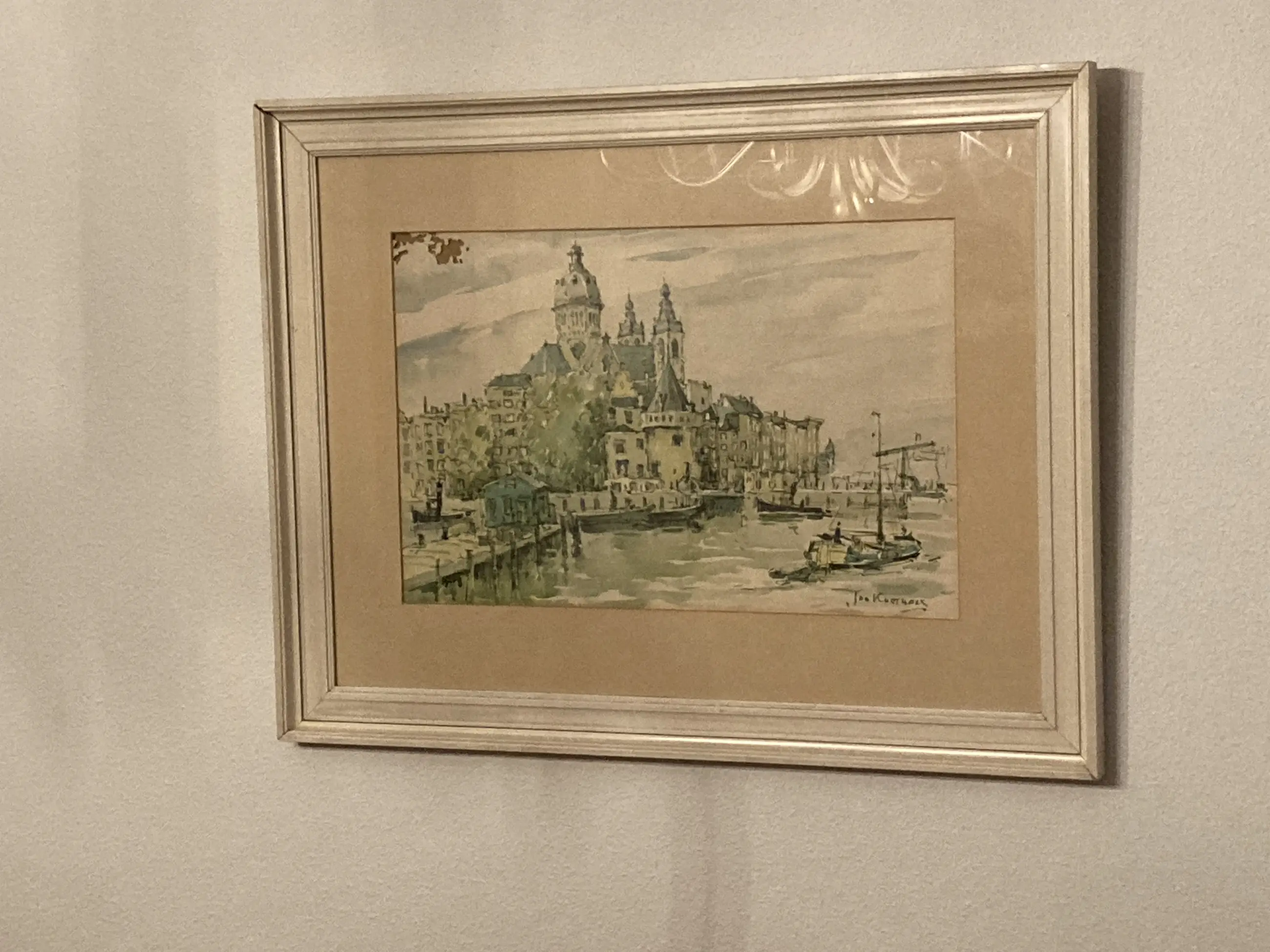 Werk van de Amsterdamse kunstschilder Jan Korthals. Helaas links bovenin zijn er gaatjes in het papier. Hierdoor bied ik het werk tegen een aantrekkelijke prijs te koop aan