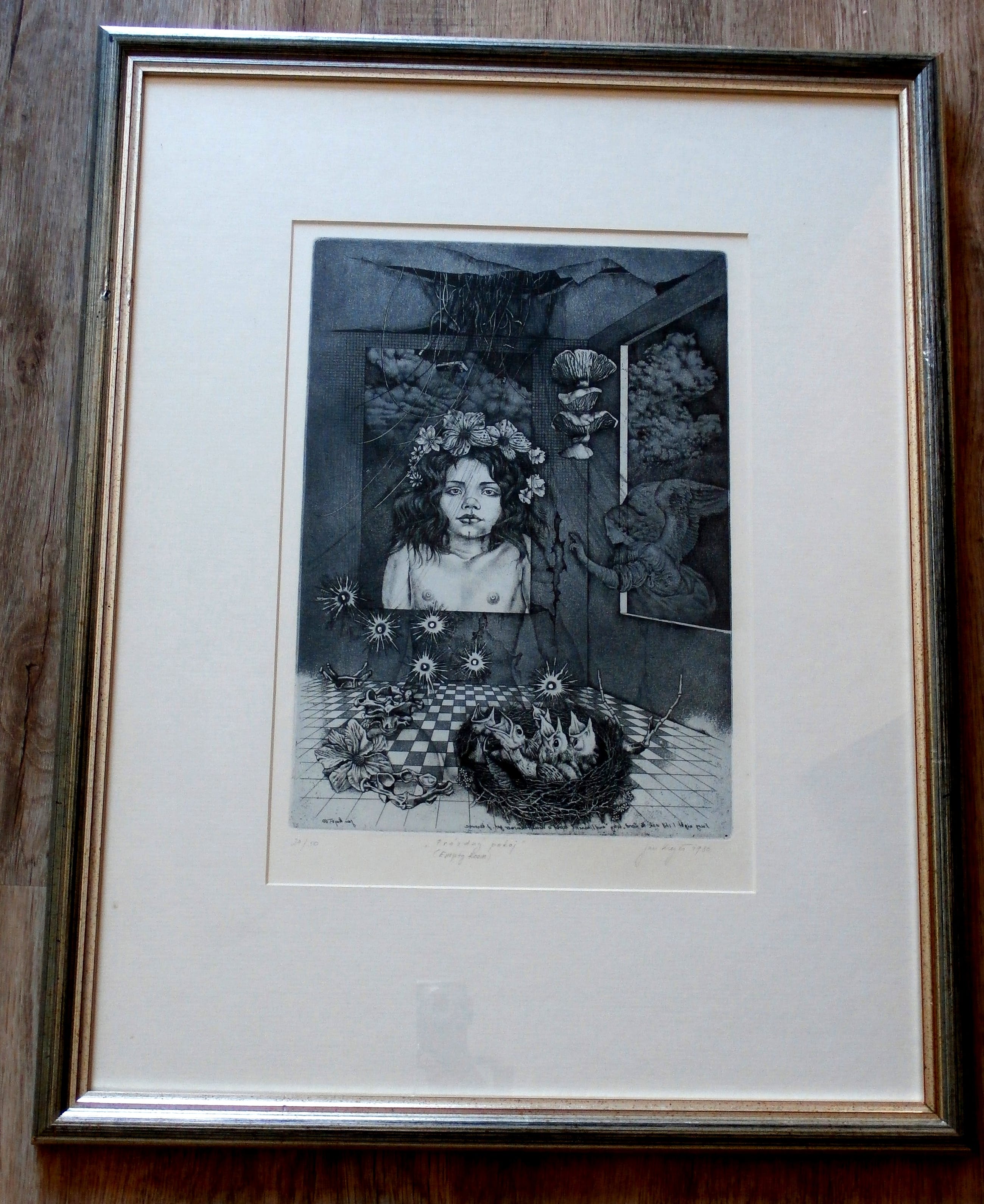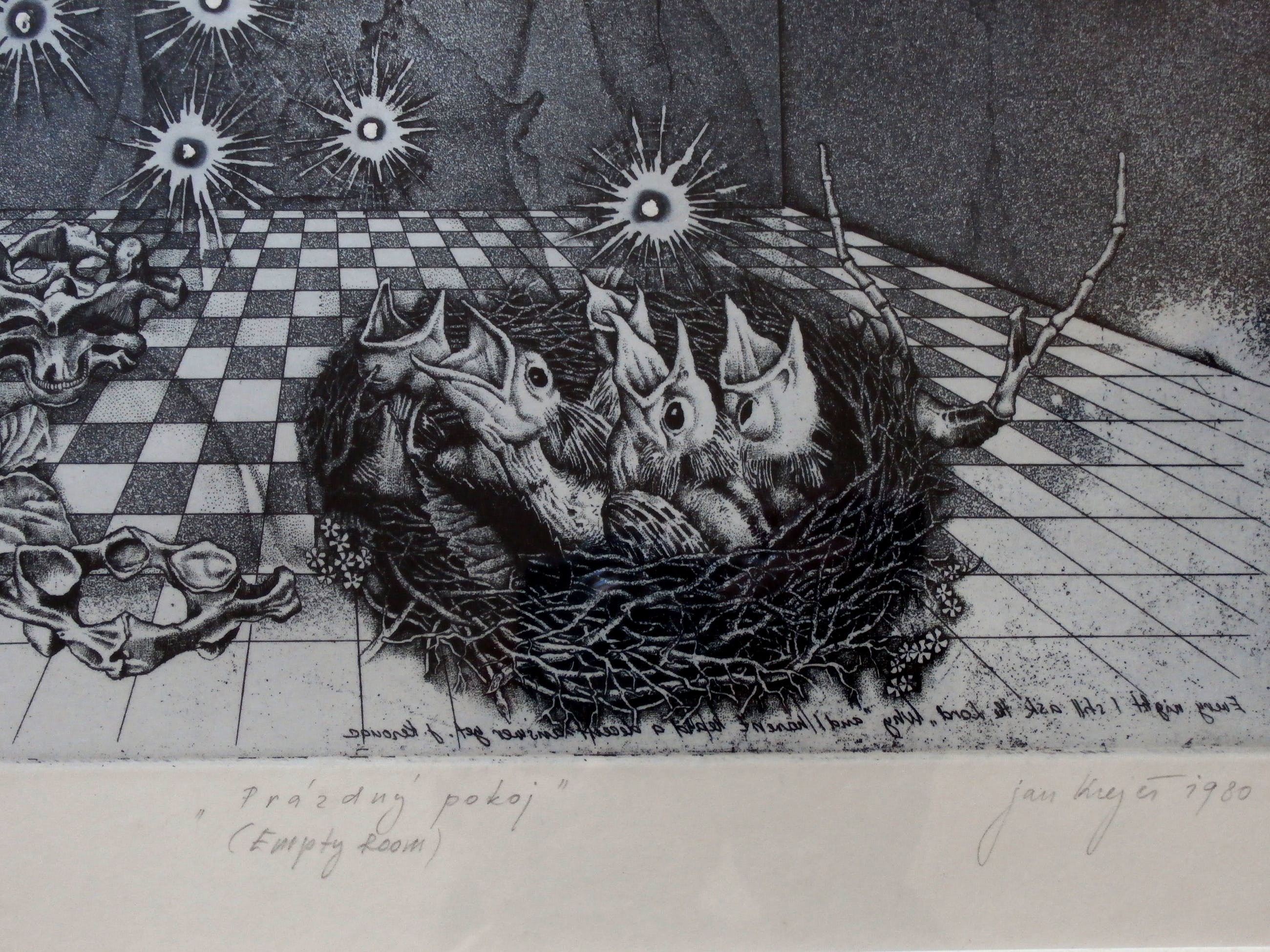 Ingelijste ets van Jan Krejci uit 1987. Titel: Empty Room. Nummer: 22/60. Afmetingen incl. lijst: 70 x b55 cm, afmetingen voorstelling: H40 x b30 cm. Het werk is rechtsonder gesigneerd door de kunstenaar. De authenticiteit van het aangeboden werk wordt voor 100% gegarandeerd.Een certificaat van echtheid kan, op aanvraag, worden gemaild.