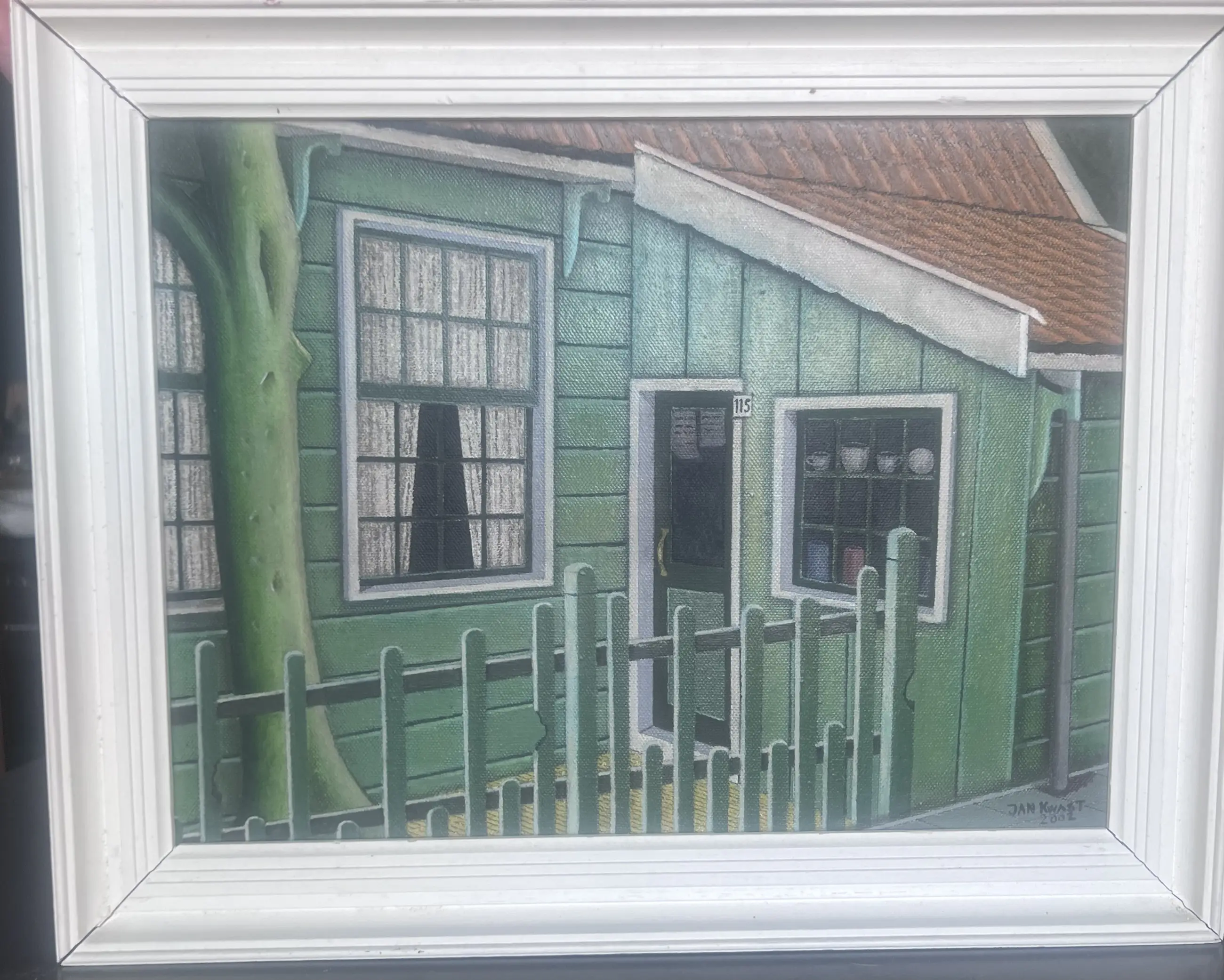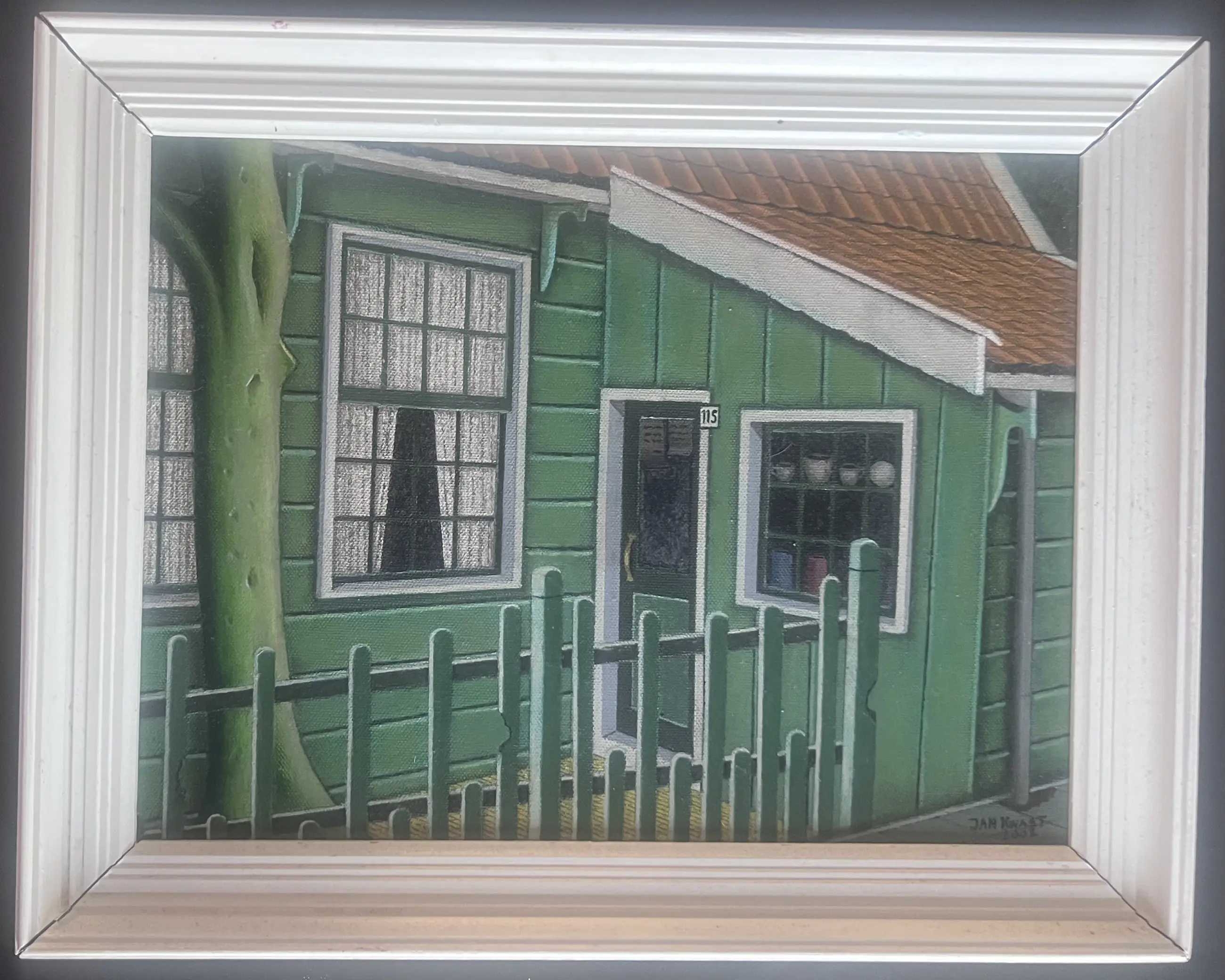 Jan Kwast is een Nederlandse kunstenaar die vooral bekend is om zijn gedetailleerde, sfeervolle schilderijen van Hollandse huisjes, straten en landschappen, vaak met een vleugje nostalgie en een eigenzinnige twist. Zijn werken tonen vaak: